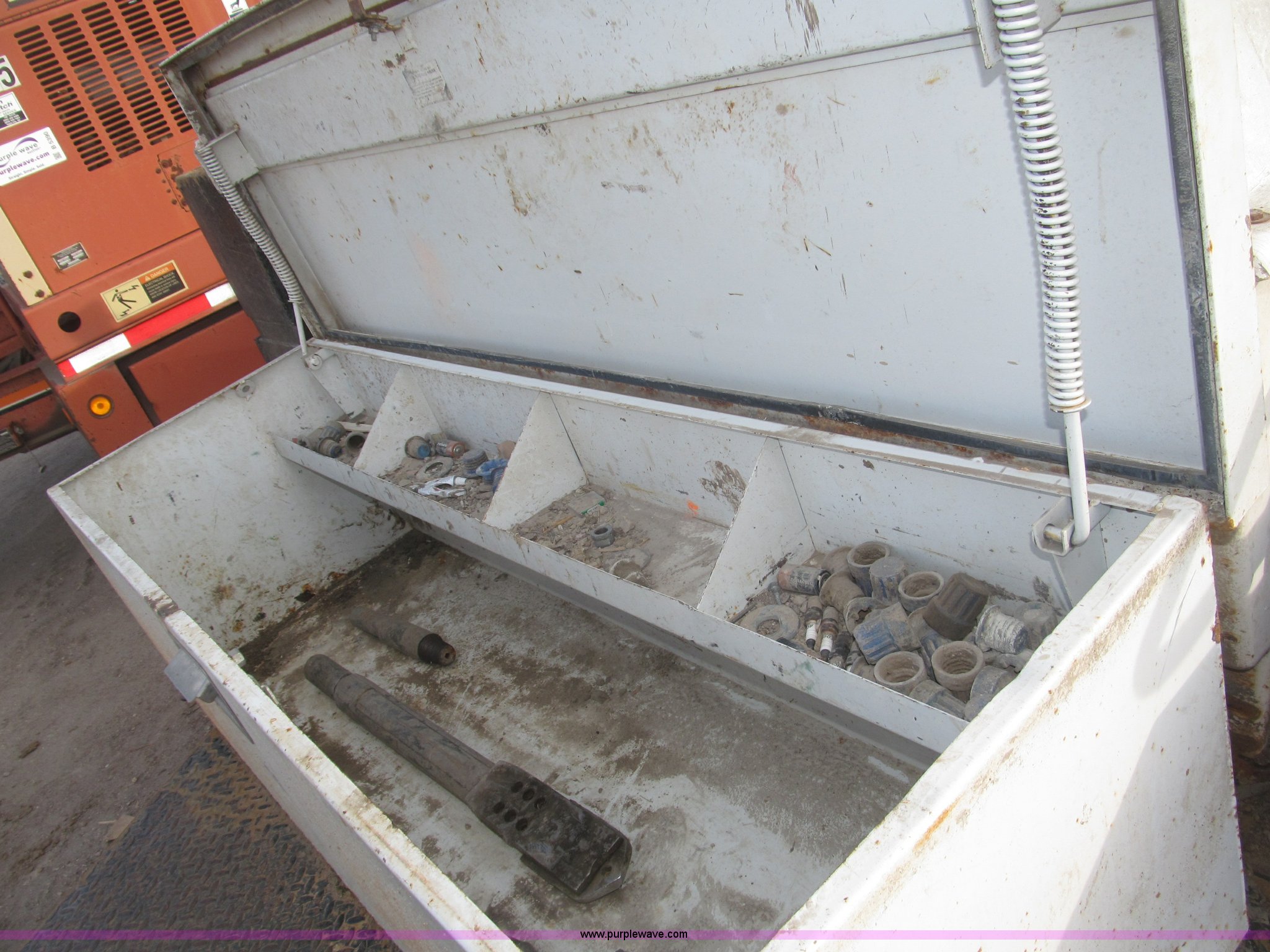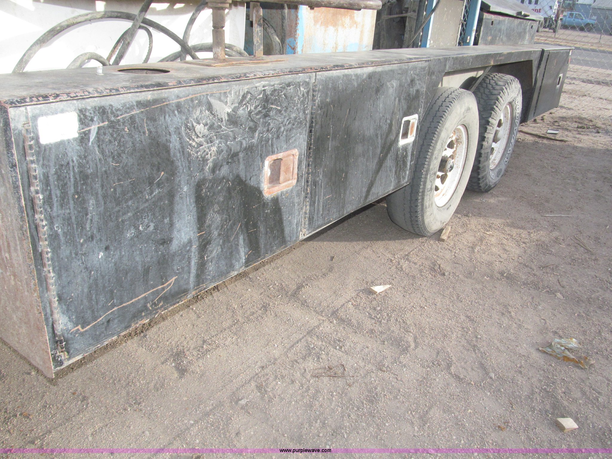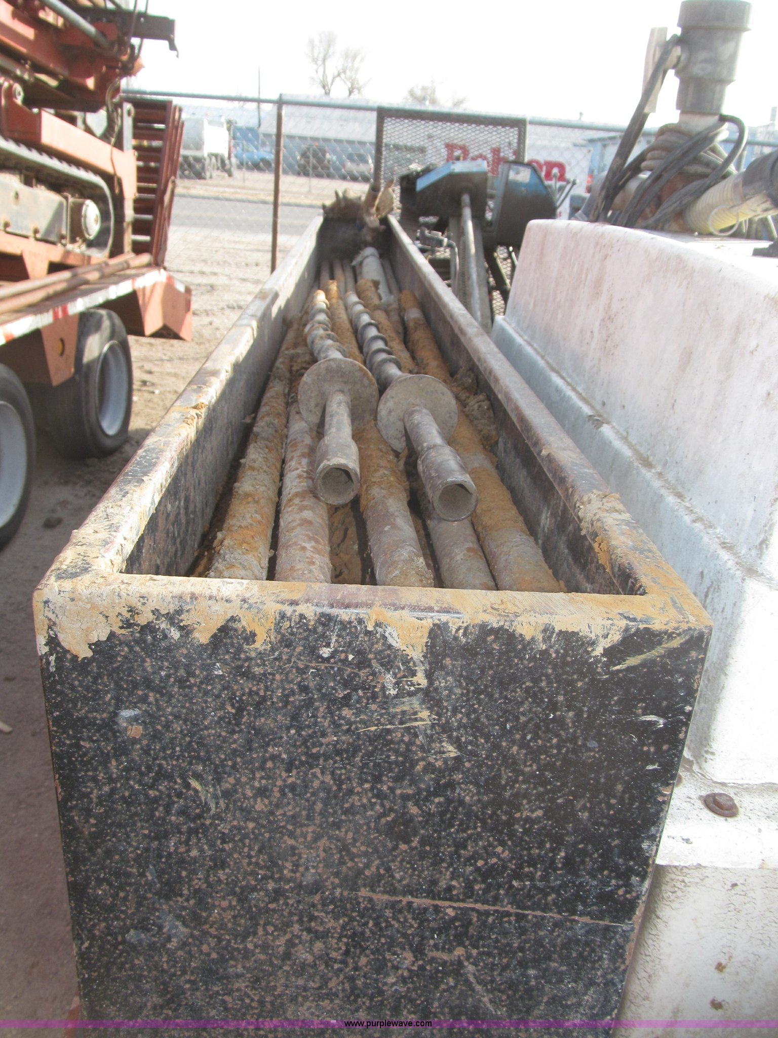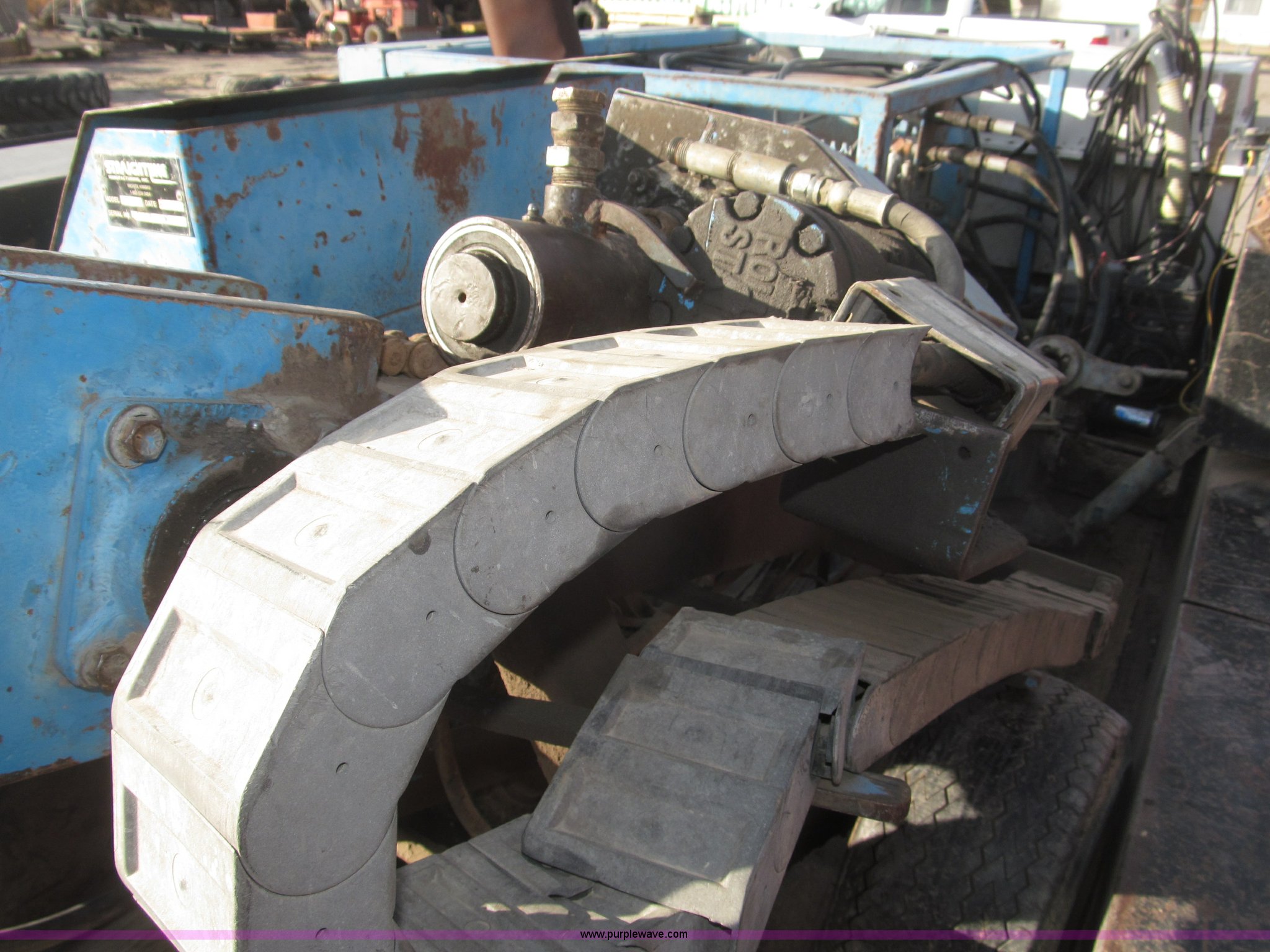 Purple Wave is selling a used Directional Boring Unit in Nebraska. This item is a 1991 Straightline Directline DL805 directional trenchless drilling system with the following: Ford four cylinder gas engine, Hydraulic power unit, 300 gallon tank, 50' of hydraulic hose, Power unit frame contains fuel tank, FMC 608 hydraulic pump, Leaks, 115'L x 1.5" diameter drill stem, 5'L sections, 9" and 12" back reamers, 3.5" boring bit, 1 1/2" to 1 3/4" adapter, Pull back, 300 gallon water tank, Seam leaks, Shop built tandem axle trailer, Rawson Koenig front mounted saddle box, Side storage compartments, Top storage compartment, LT235/85R16 tires, Operator's manual available, Serial 01087, EIN 130