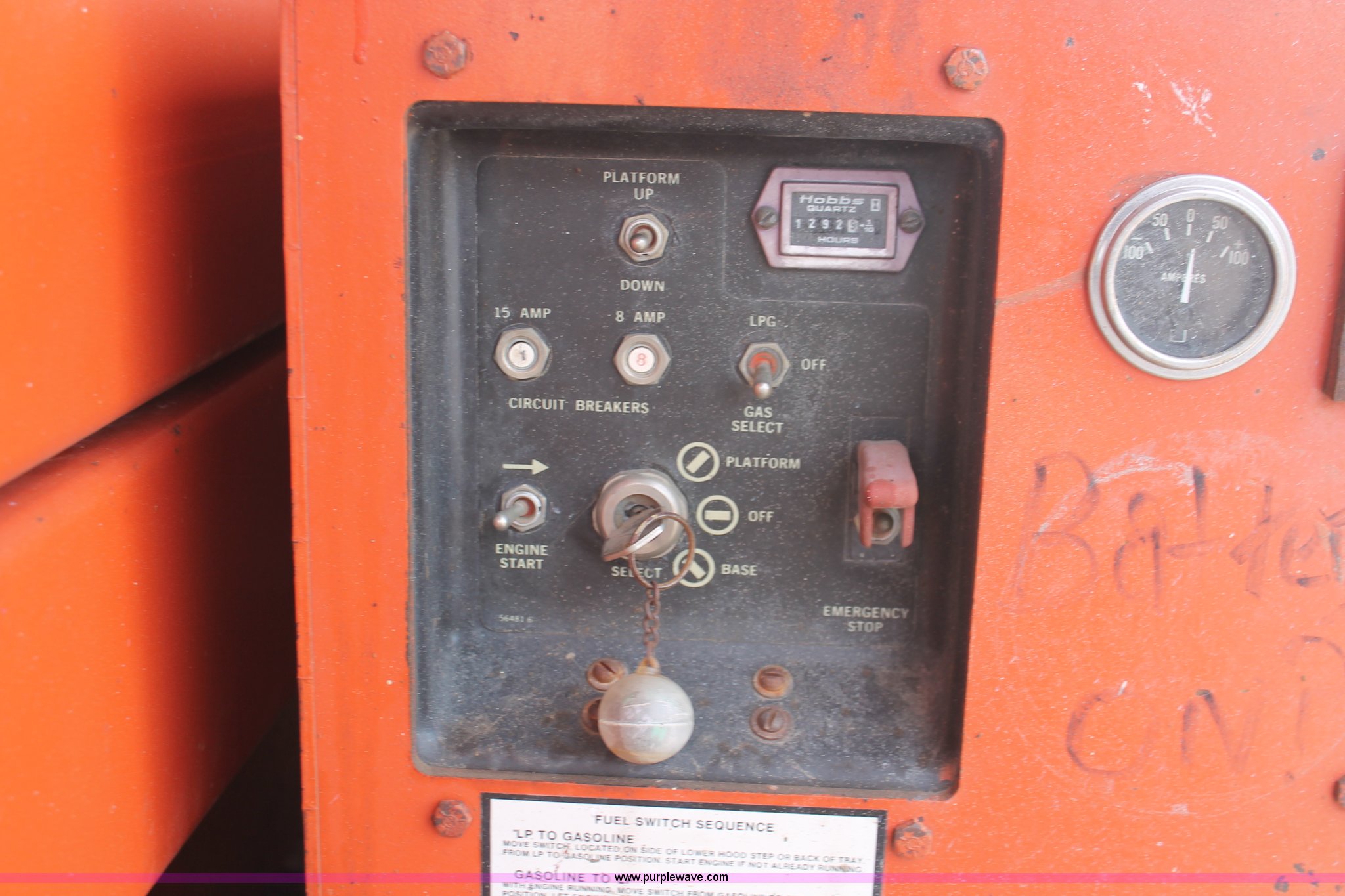 Purple Wave is selling a used Scissor or Vertical Lift in Kansas. This item is a Snorkel 3284 scissor lift with the following: 1,292 hours on meter, Honda V-twin 20 HP gas engine, Base and platform controls, 1,250 lbs capacity, 32' maximum lift height, 25 x 12.00-12 NHS tires, Serial 9601110596