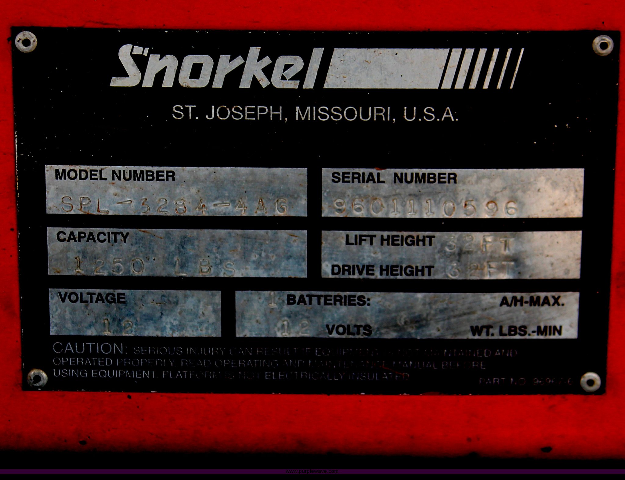 Take a look at this used Snorkel 3284 scissor lift being sold on March 28th, 2013 in the SOLD! March 28 Construction Equipment Auction made by Snorkel. Take a look at all of the item information below or take a look at similar auctions for Aerial Lifts.