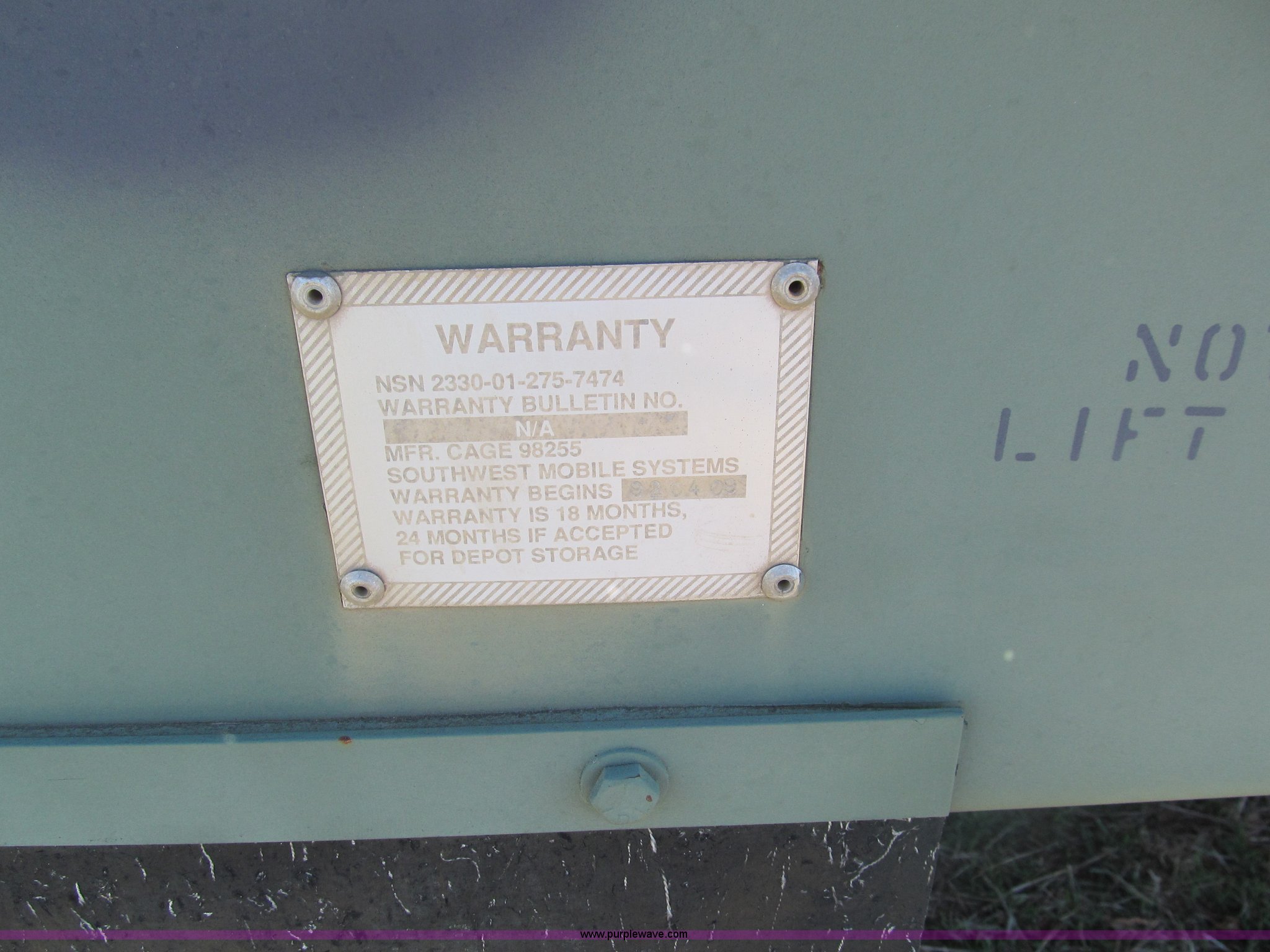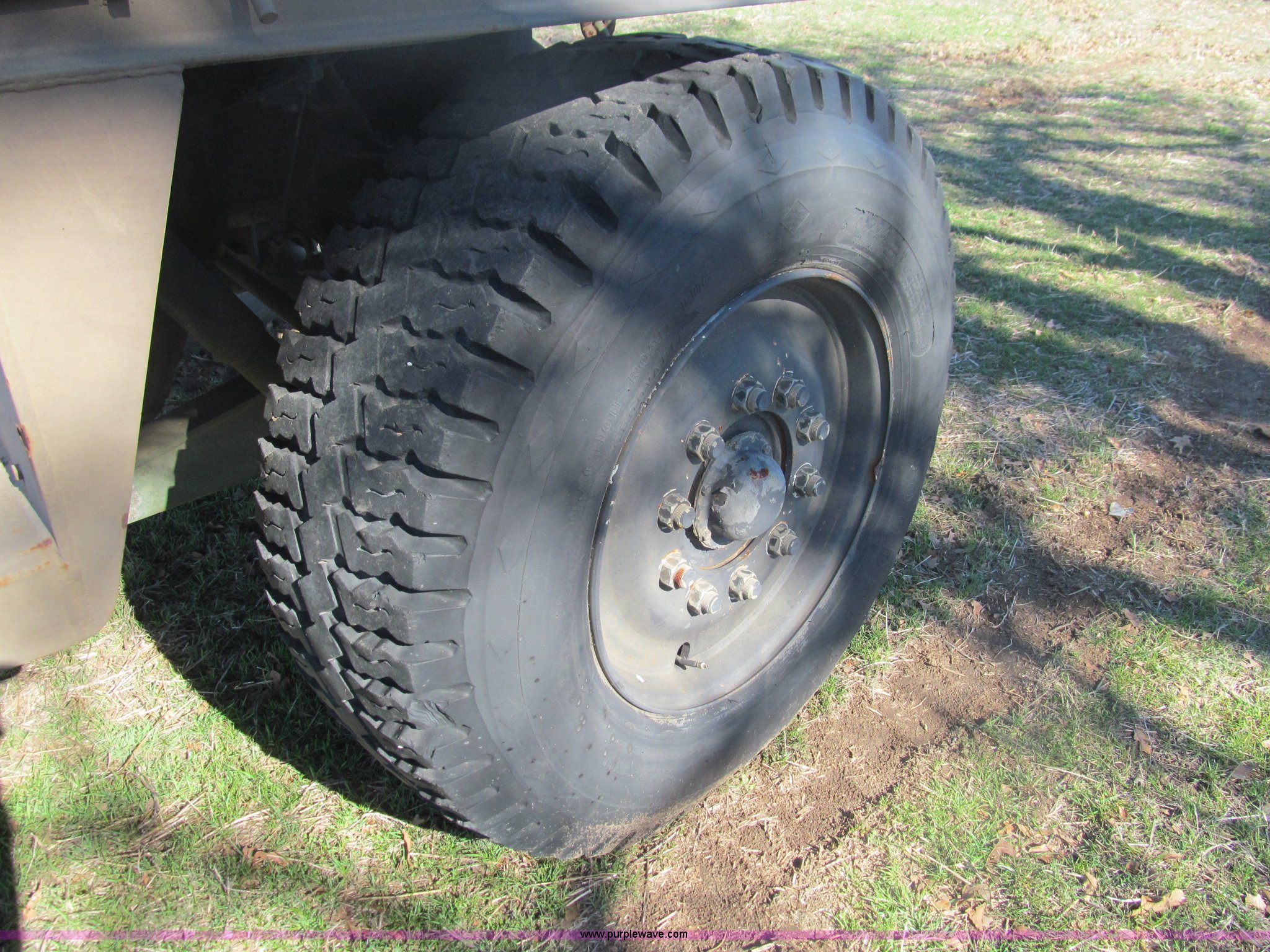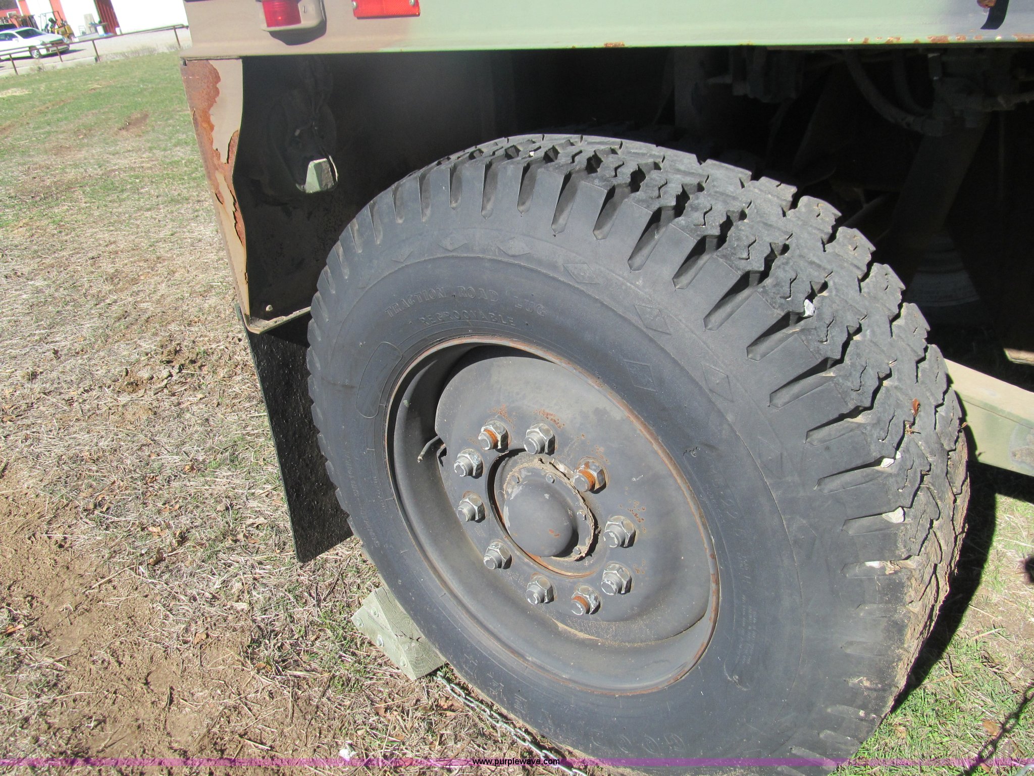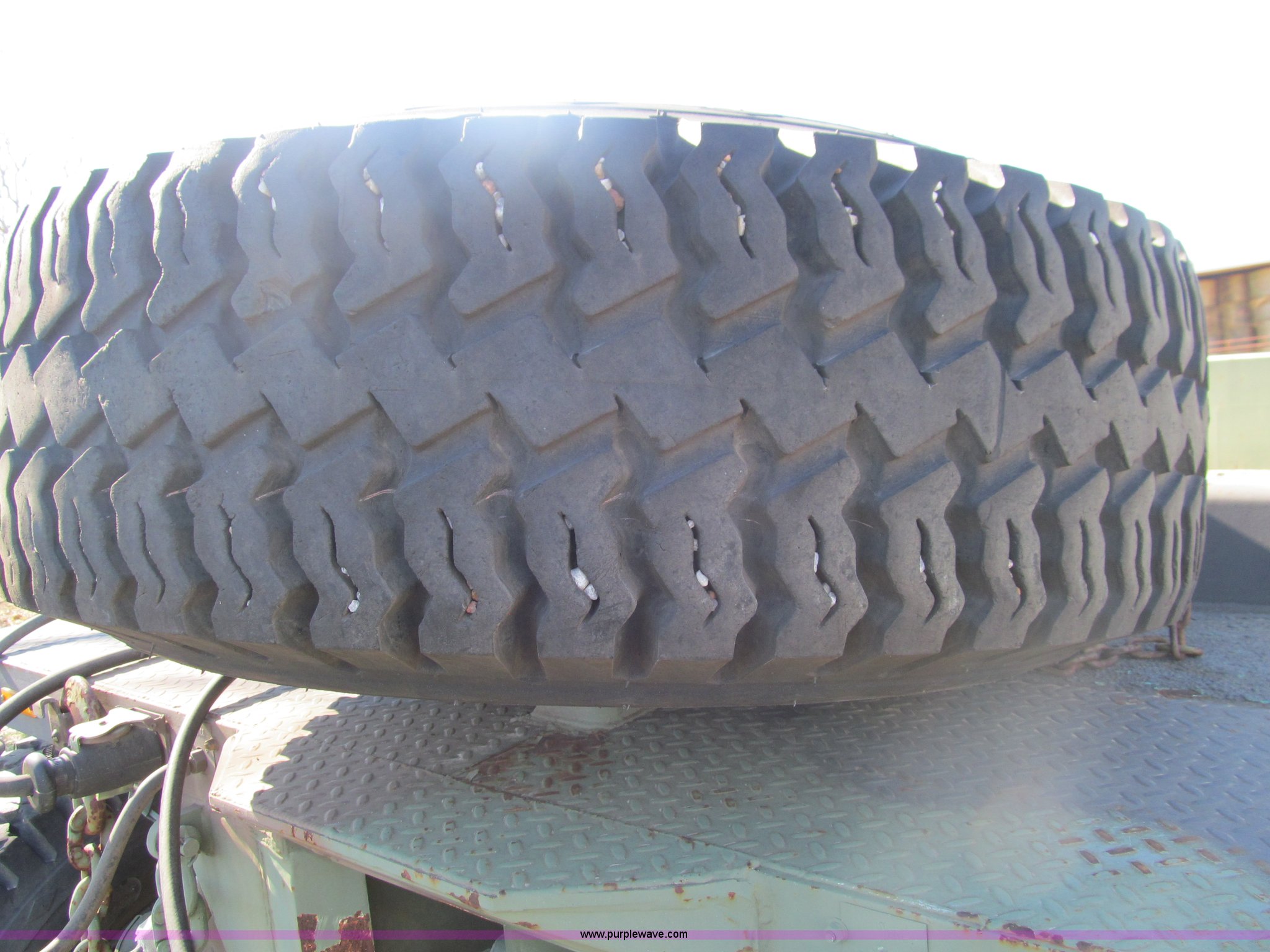 Purple Wave is selling a used Car or Utility Trailer in Oklahoma. This item is a 2002 Hemat M989A1 trailer with the following: 22'L x 8'W, Pintle hitch, Removable sides fold down, 14.9' inside wooden bed, Tie downs, Tarp hooks, Air bag lift, Air brakes, 15-22 tires, Serial 98255