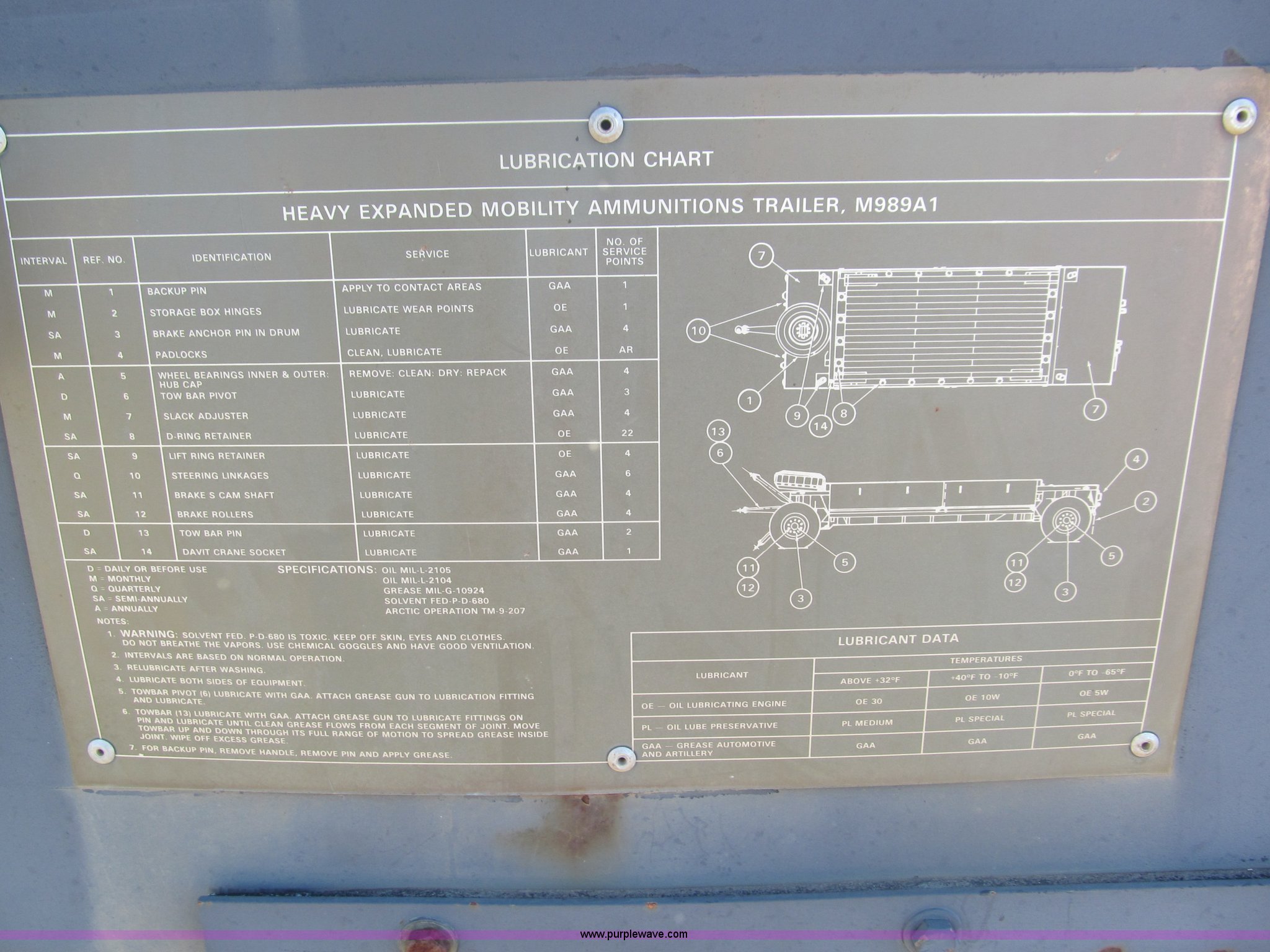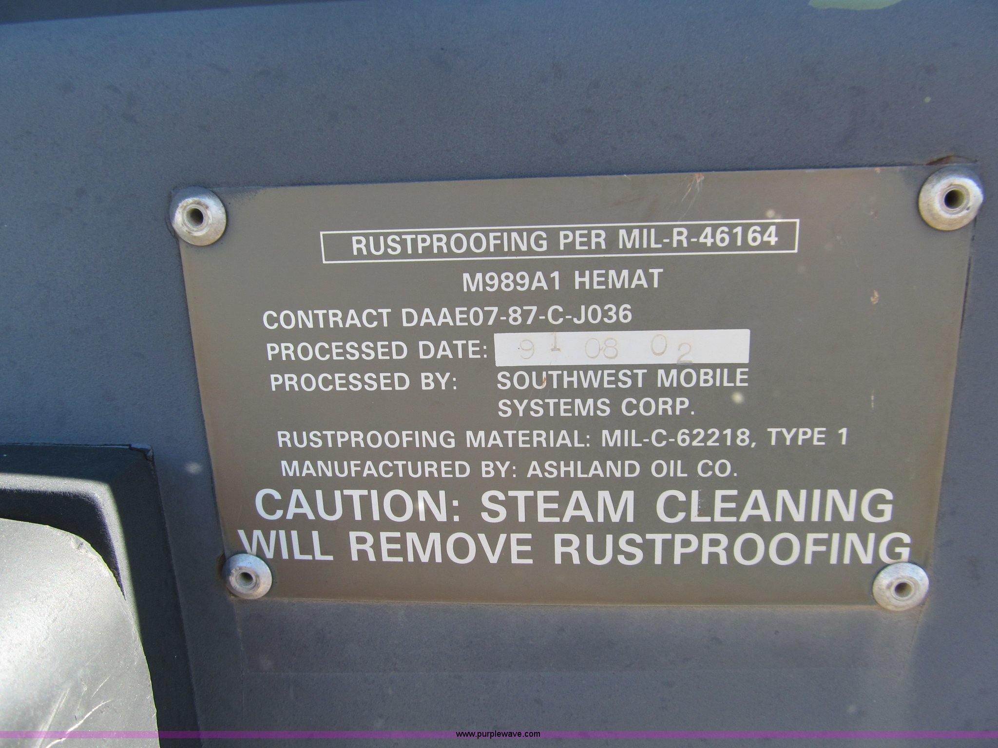 2002 Hemat M989A1 trailer has sold in Foster, Oklahoma for $1430. Item F3034 sold on March 28th, 2013.