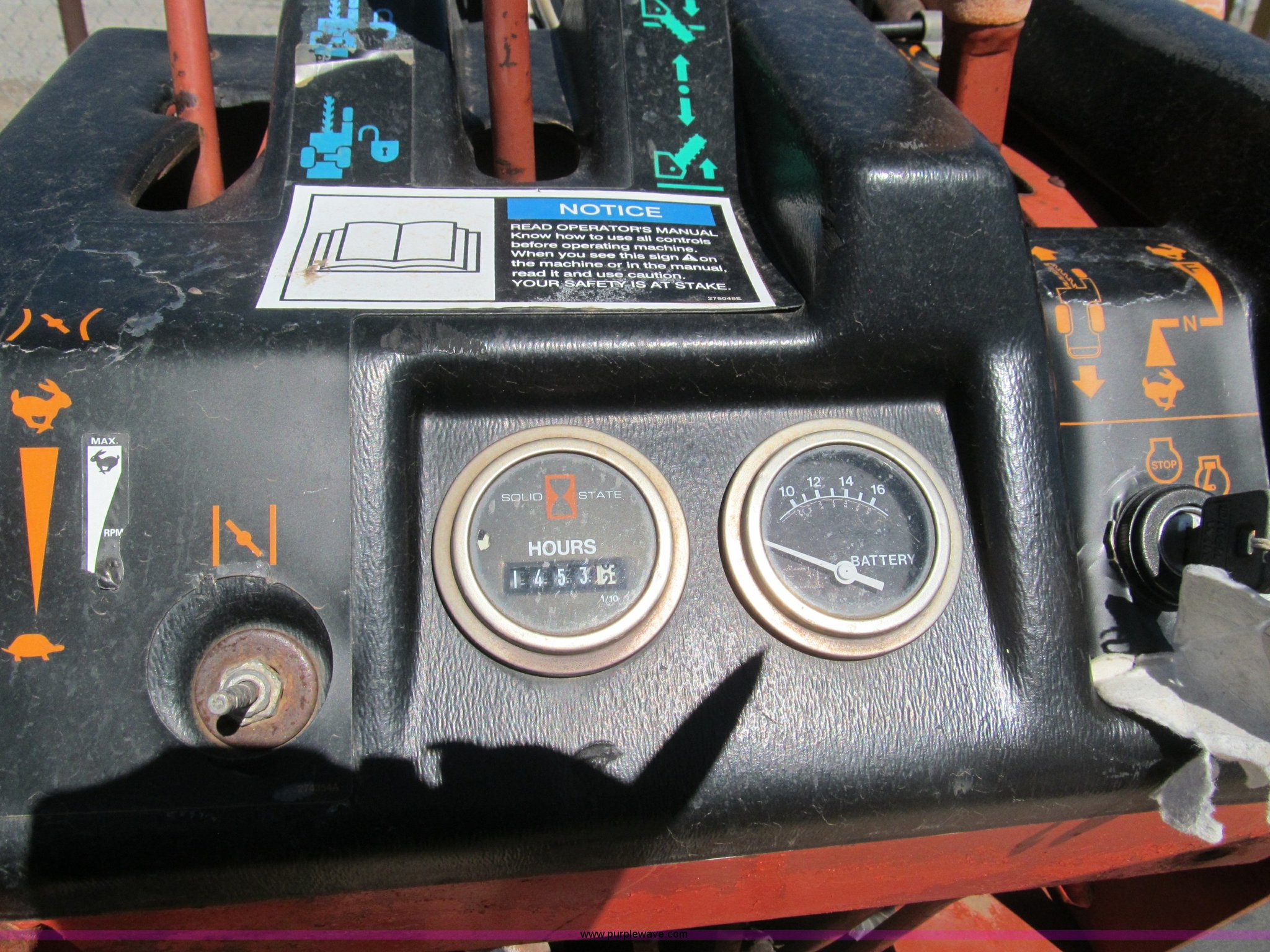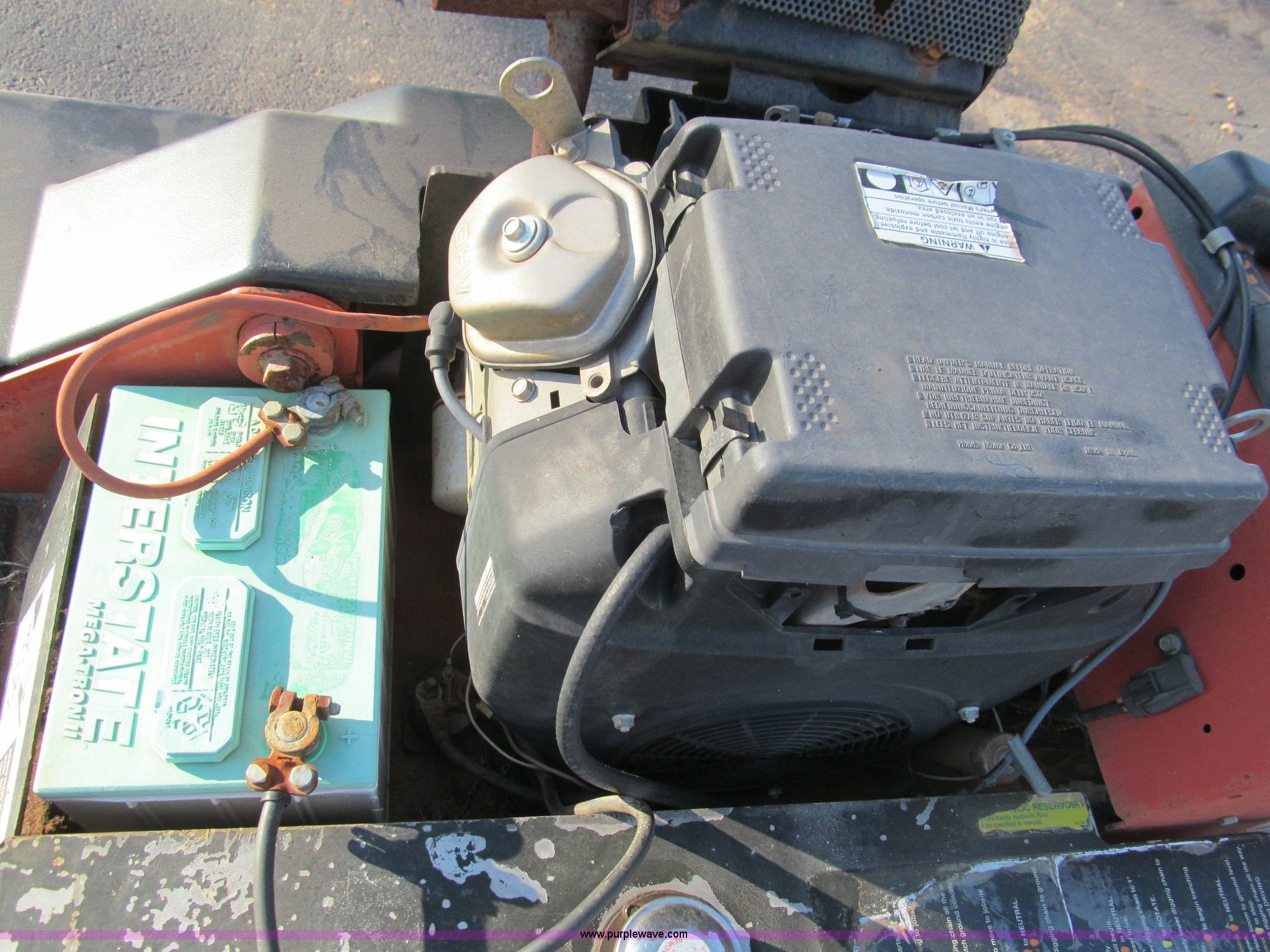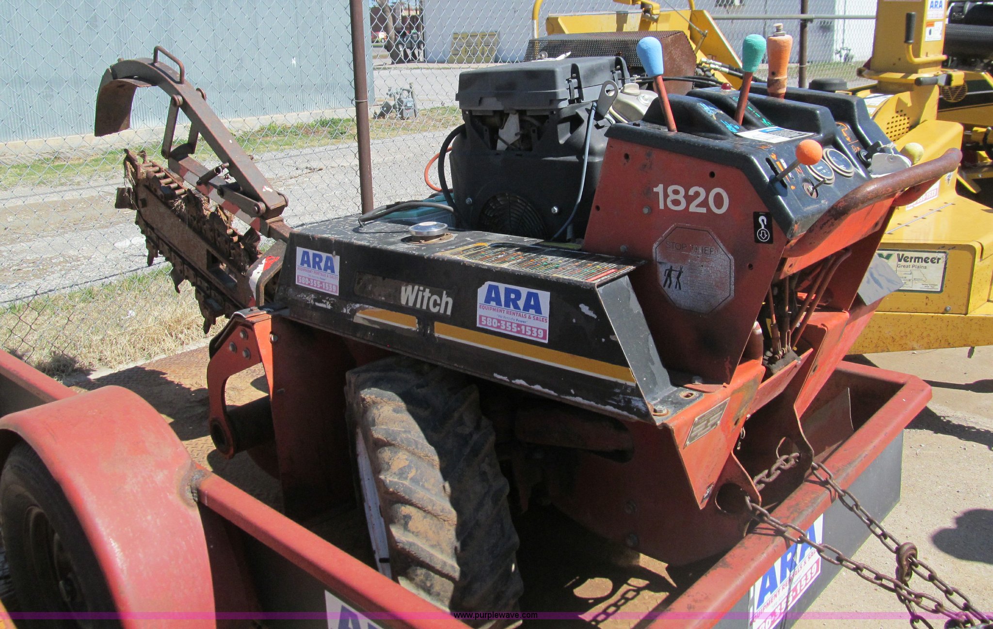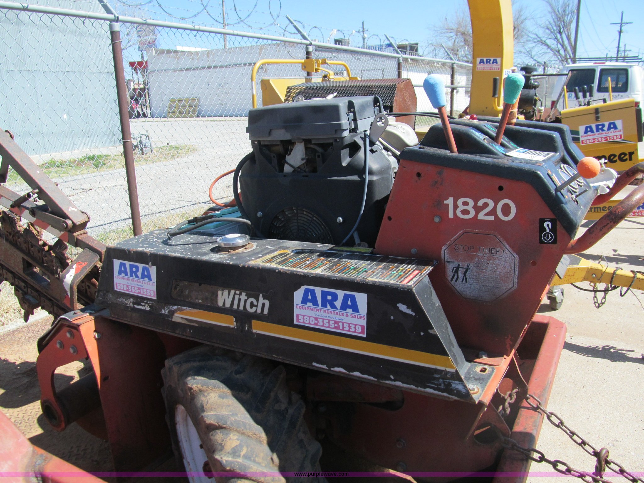 Purple Wave is selling a used Trencher or Rock Saw in Oklahoma. This item is a Ditch Witch 1820 walk along trencher with the following: 1,453 hours on meter, Honda GX610 air cooled gas engine, 17.5 Flywheel HP, 23 x 8.5-12 NHS tires, Trailer is not included, Serial 1M2210