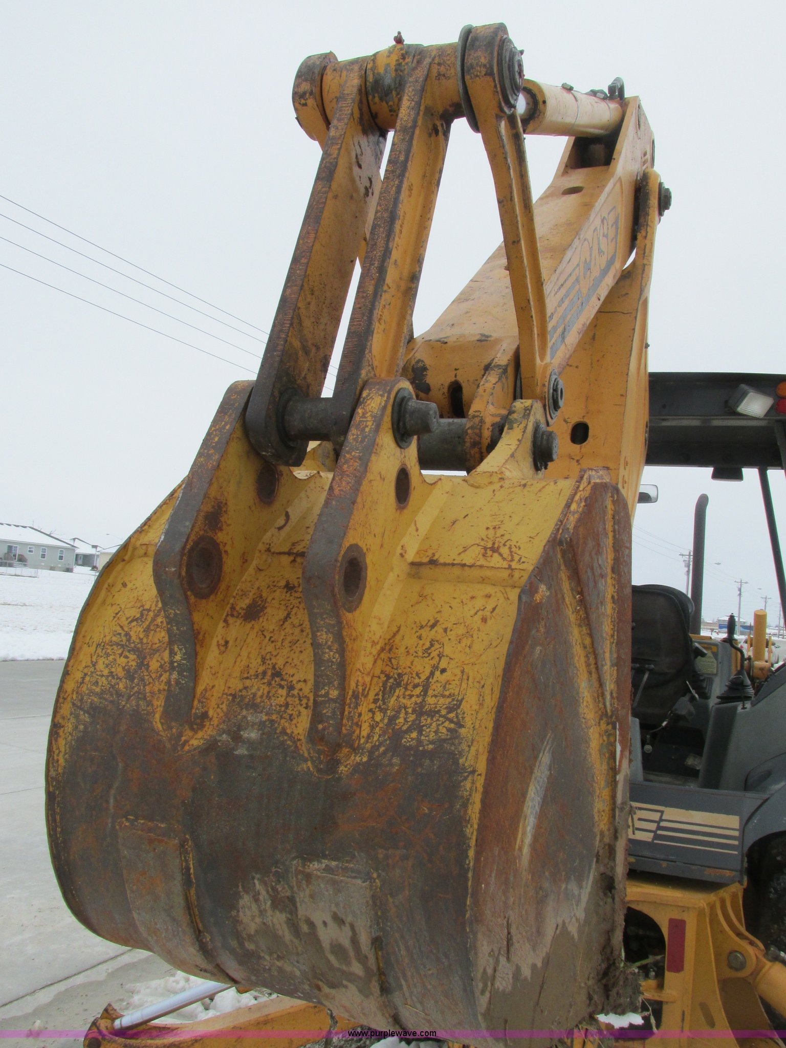 Purple Wave is selling a used Tractor Loader Backhoe in Missouri. This item is a 1997 Case 580L backhoe with the following: 5,523 hours on meter, Case 4T-390 engine, Four speed shuttle shift transmission, Canopy, 82" front loader bucket, Bolt-on cutting edge, 24" bucket with cutting teeth, Outriggers with dirt pads, 11L-16 front tires, 19.5L-24 rear tires, 12,899 lbs. base operating weight, One owner, Serial JJG0233732