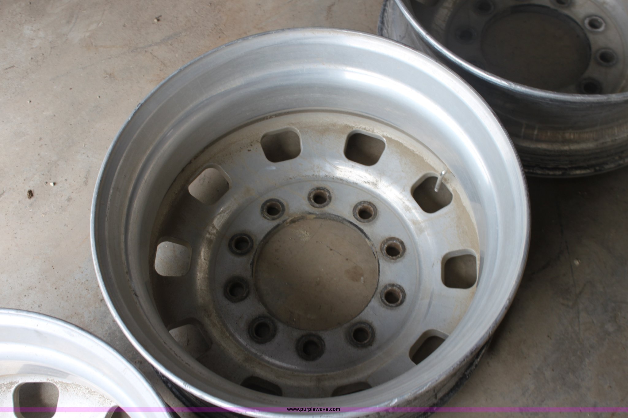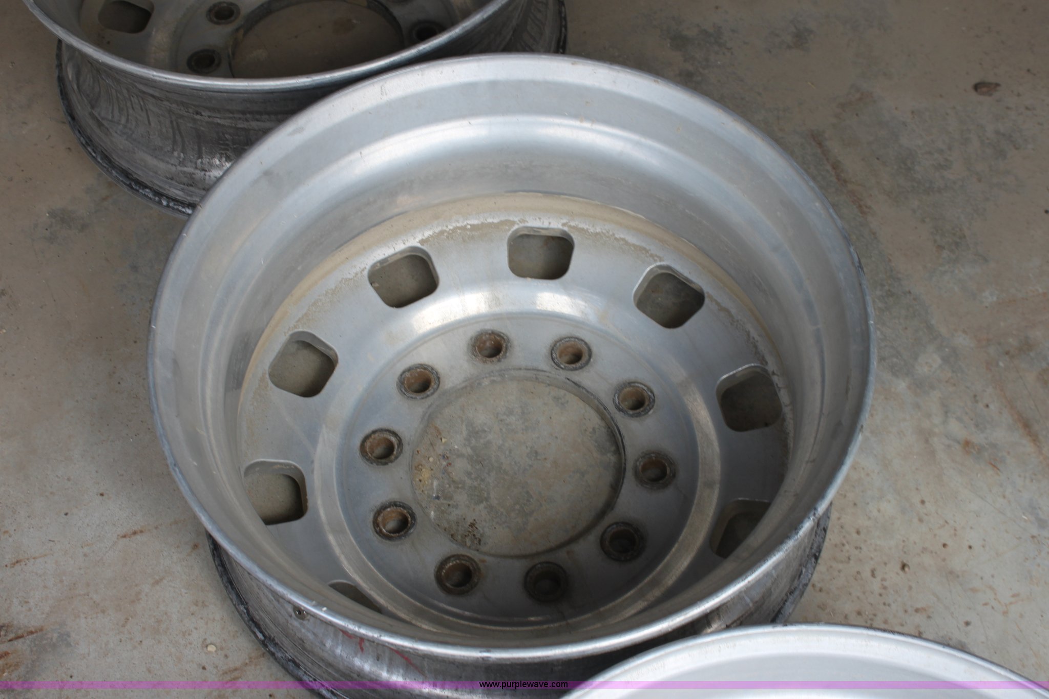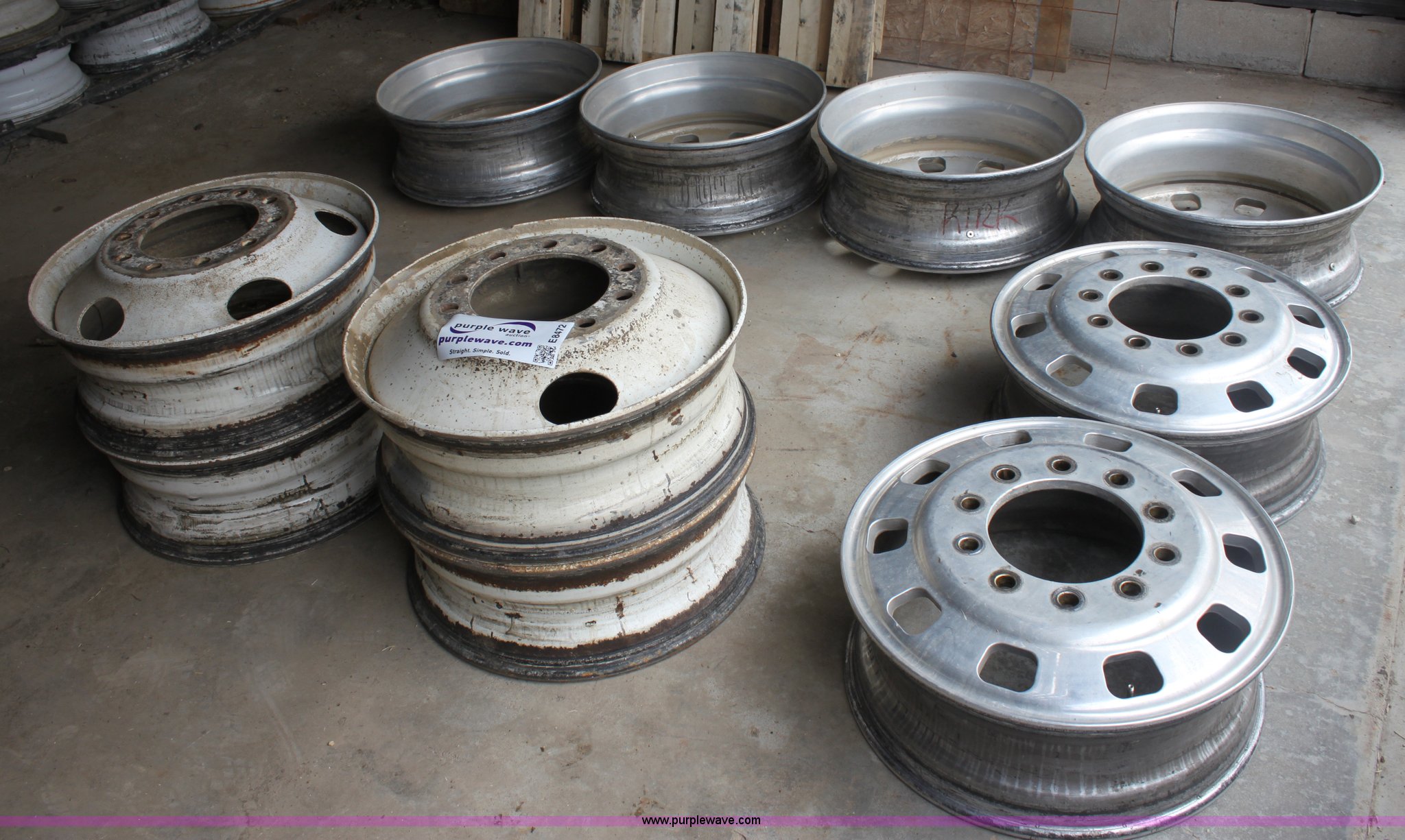 Purple Wave is selling a used Automotive Parts or Acces. in Kansas. This item is a (10) semi wheels with the following: 10 bolt, (4) steel, (6) aluminum