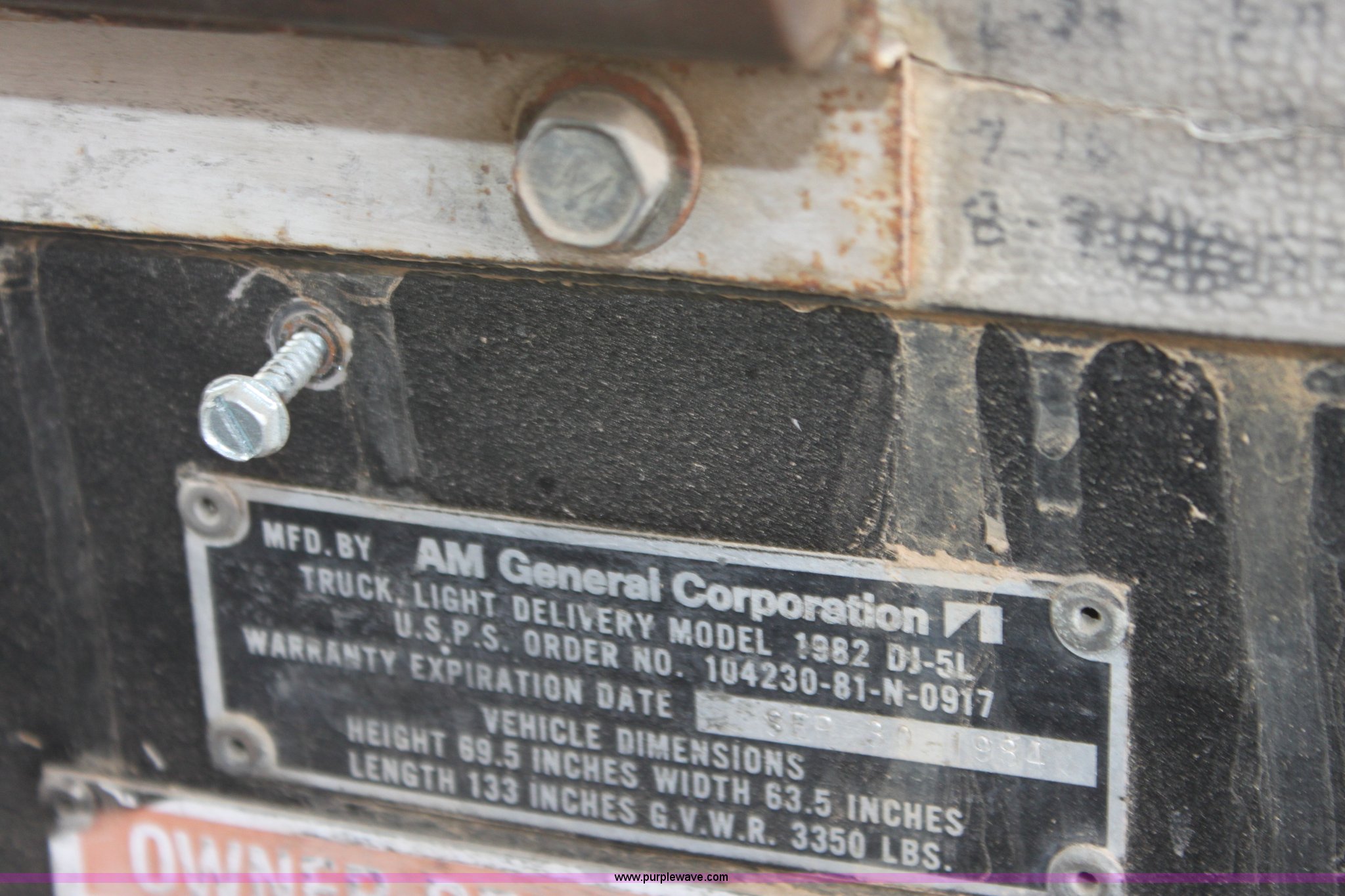 Purple Wave is selling a used Passenger Vehicle in Kansas. This item is a 1982 AM General Jeep with the following: 84,268 miles on odometer, Chevrolet 256 CID gas engine, Right hand steering, 185/75R14 tires