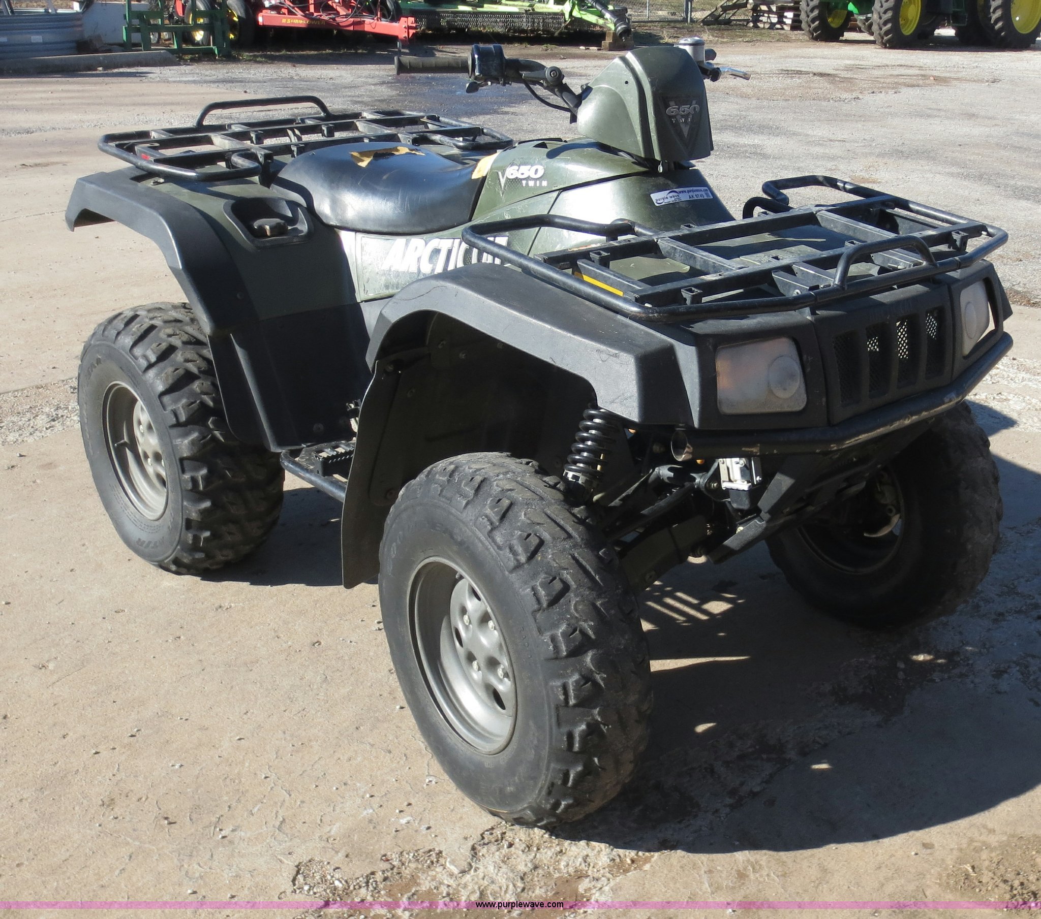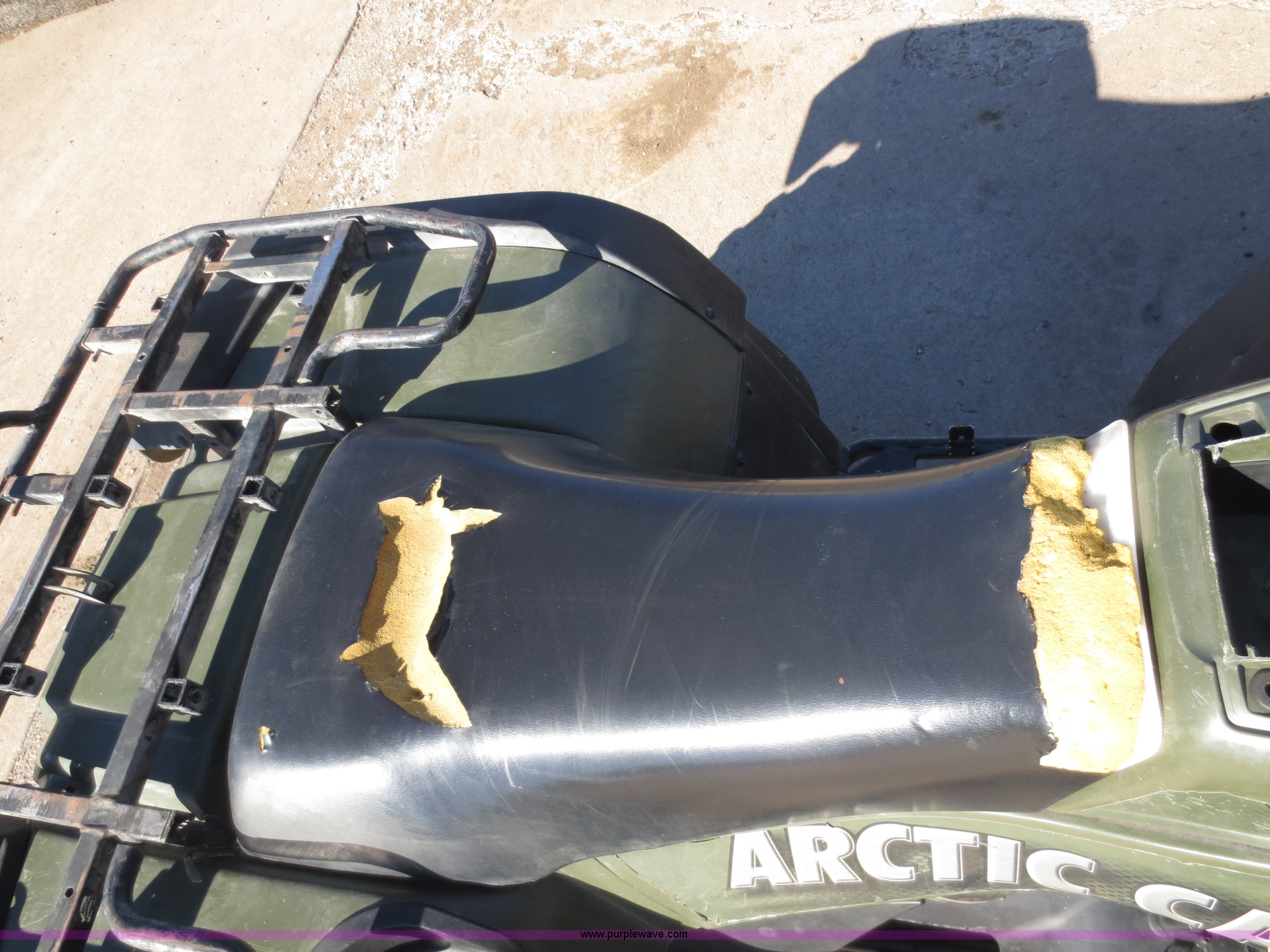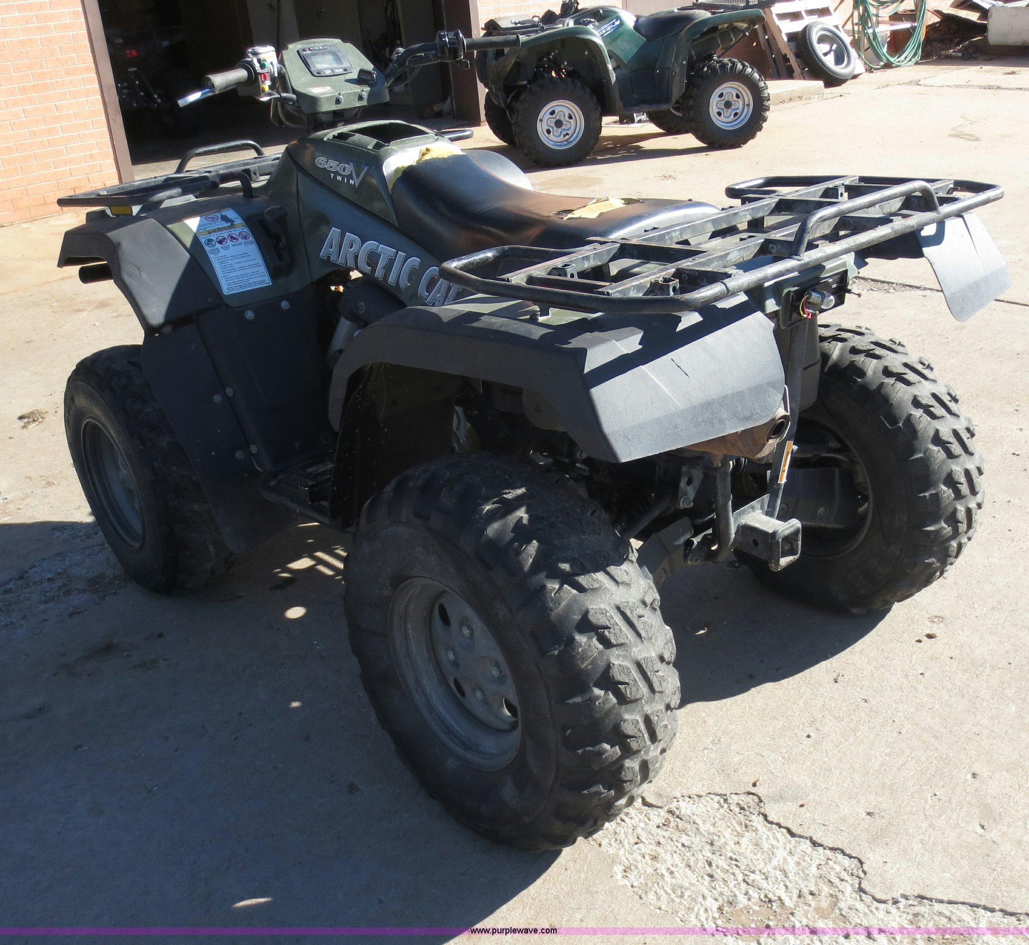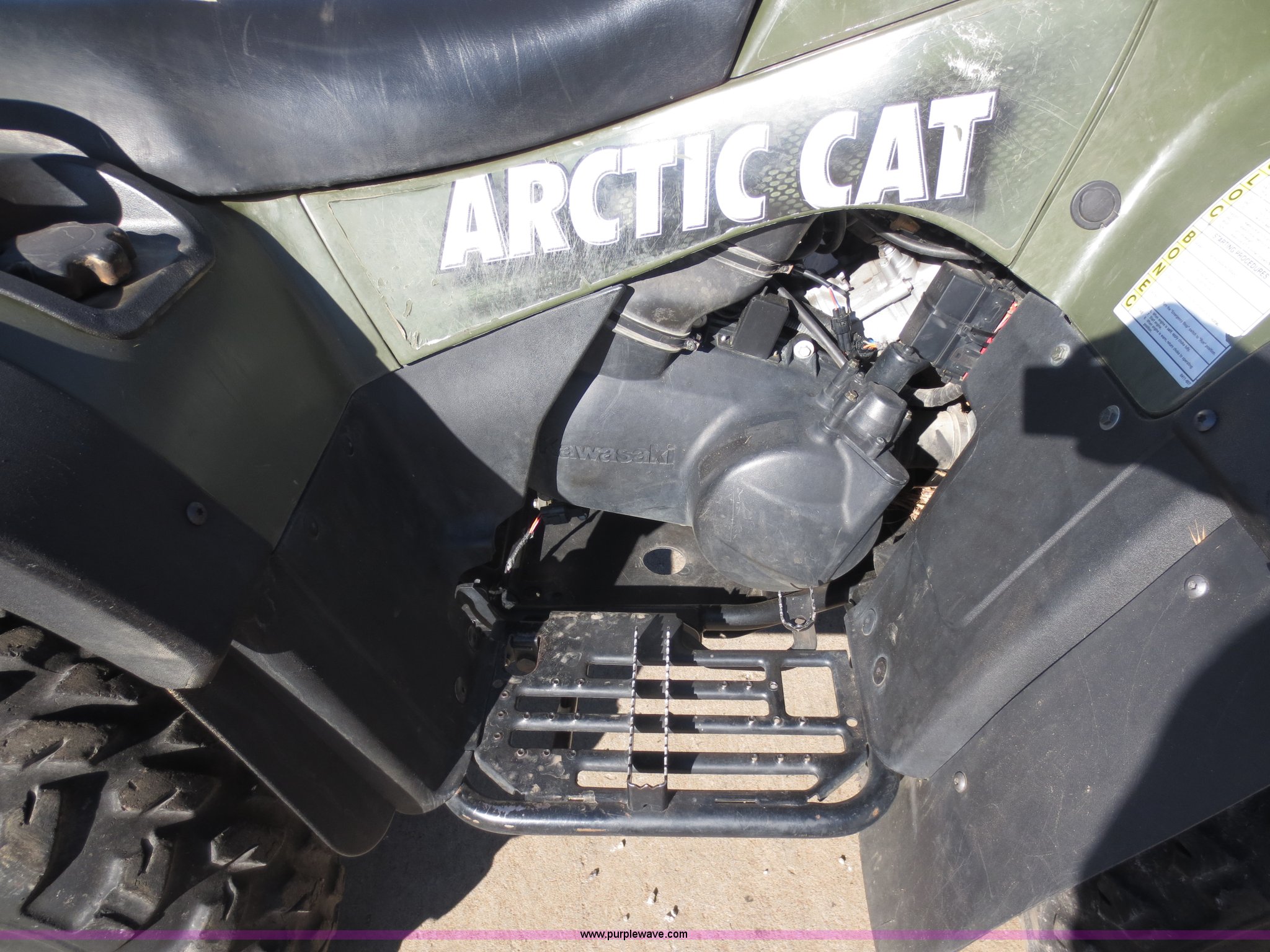 Purple Wave is selling a used ATV in Kansas. This item is a 2004 Artic Cat four wheeler with the following: 4,457 miles on odometer, 871 hours on meter, Kawasaki 650cc engine, Automatic transmission, Hi and Lo ranges, Four wheel drive, 2" receiver hitch