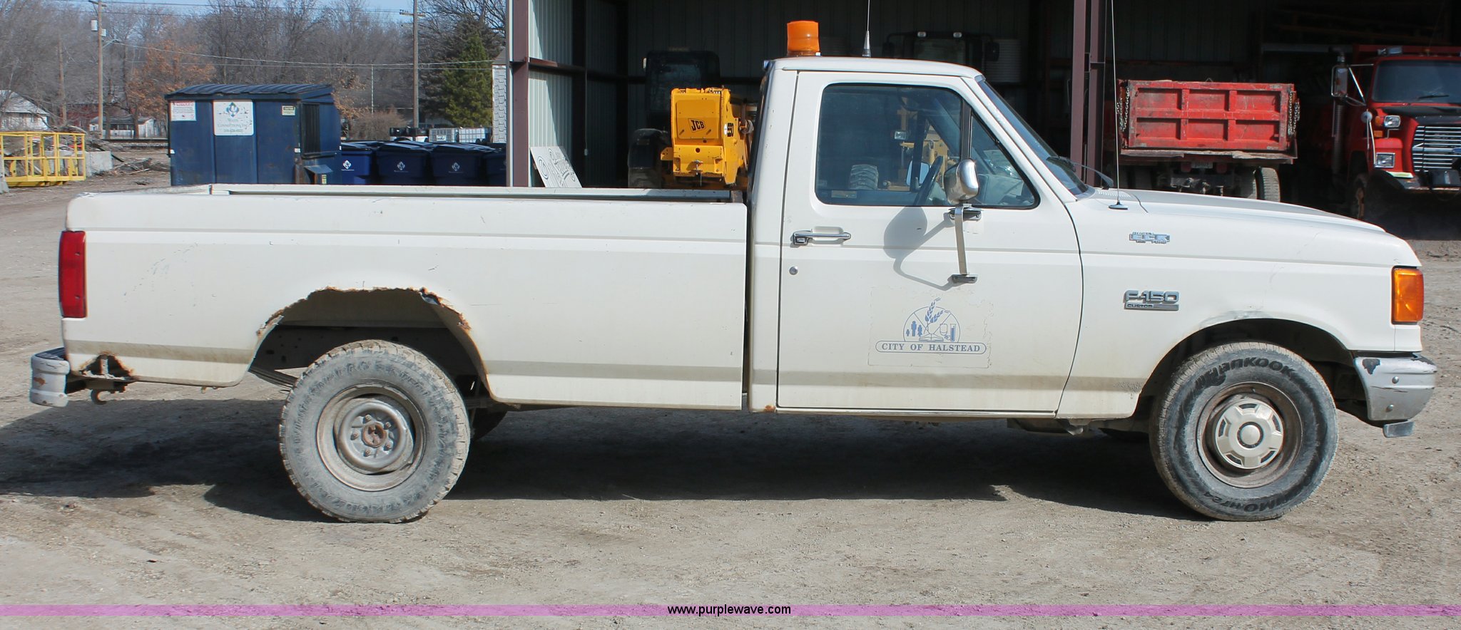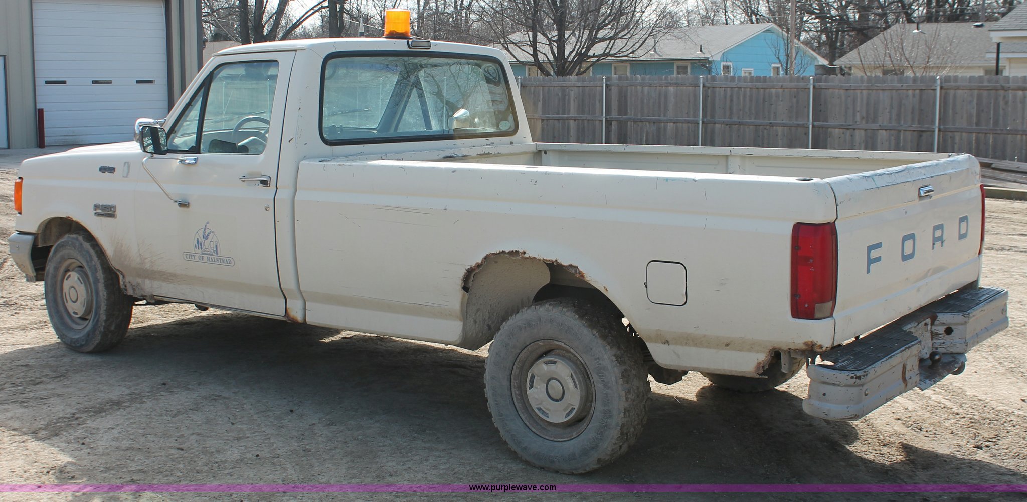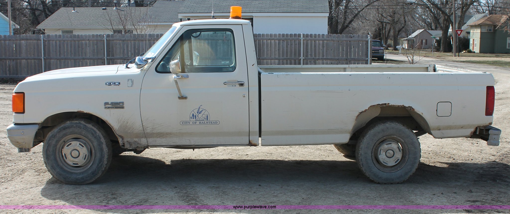 1991 Ford F150 pickup truck. 101,360 miles on odometer, 4.9L L6 OHV 12V gas engine, Automatic transmission, Heat, AM/FM, Manual windows and locks, Vinyl/cloth interior, 2" ball, Trailer wiring, 235/75R15 tires. 1FTEF15Y0MNA94432. Shipping quotes available. City of Halstead. 4200 S. Hertzler. Halstead, KS 67056