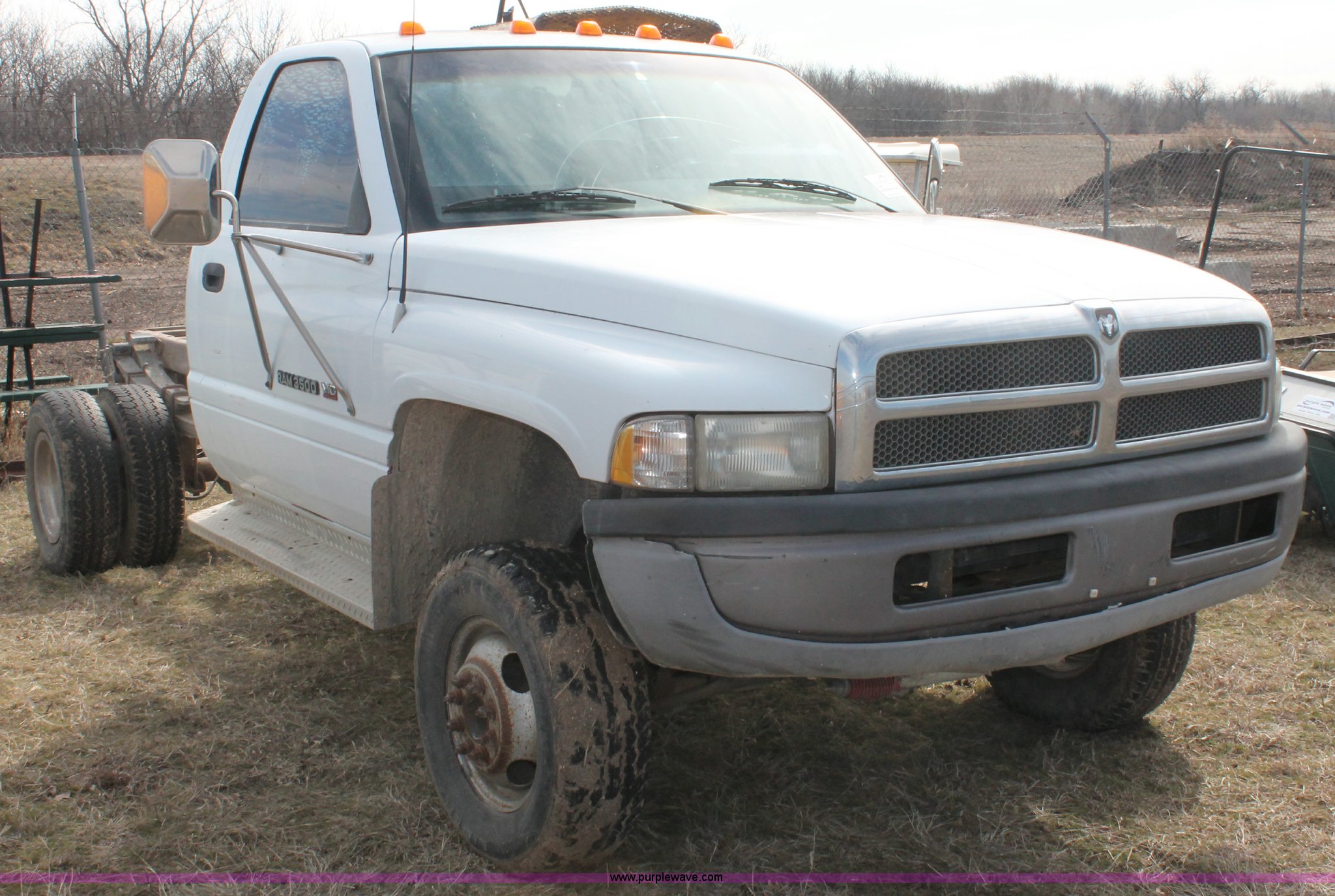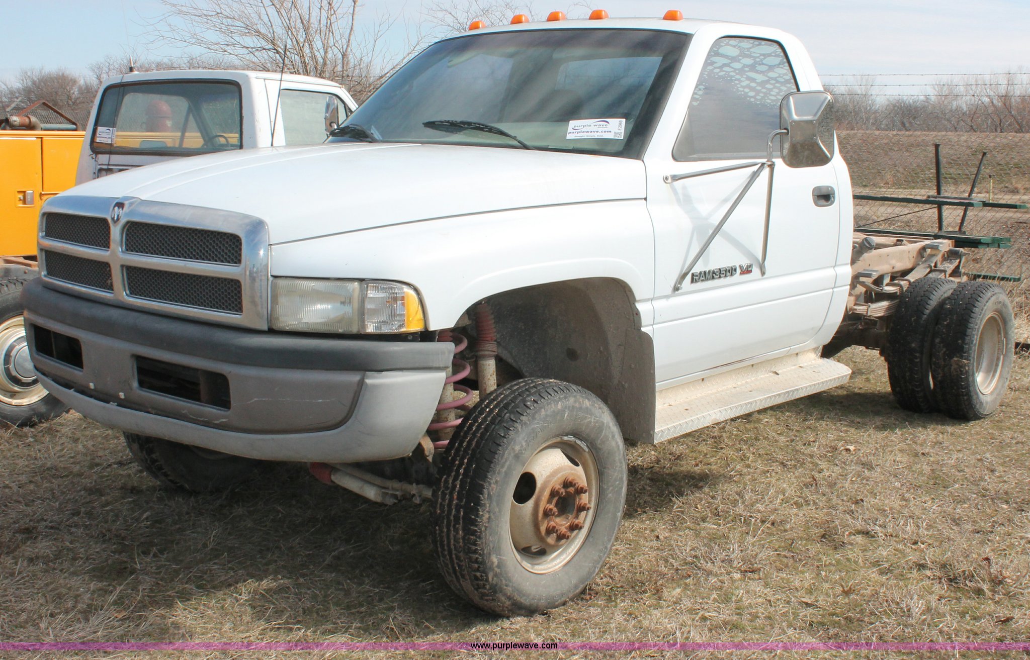 Purple Wave is selling a used Passenger Vehicle in Kansas. This item is a 1995 Dodge Ram 3500 LT cab and chassis with the following: 93,206 miles on odometer, 8.0L V10 OHV 20V gas engine, Automatic transmission, Four wheel drive, AC and heat, Unknown operating condition, Tilt, Cruise, AM/FM, Unknown operating condition, Manual windows and locks, Cloth interior, Running boards, 2 5/16" ball, LT245/75R16 tires, Front end needs rebuilt