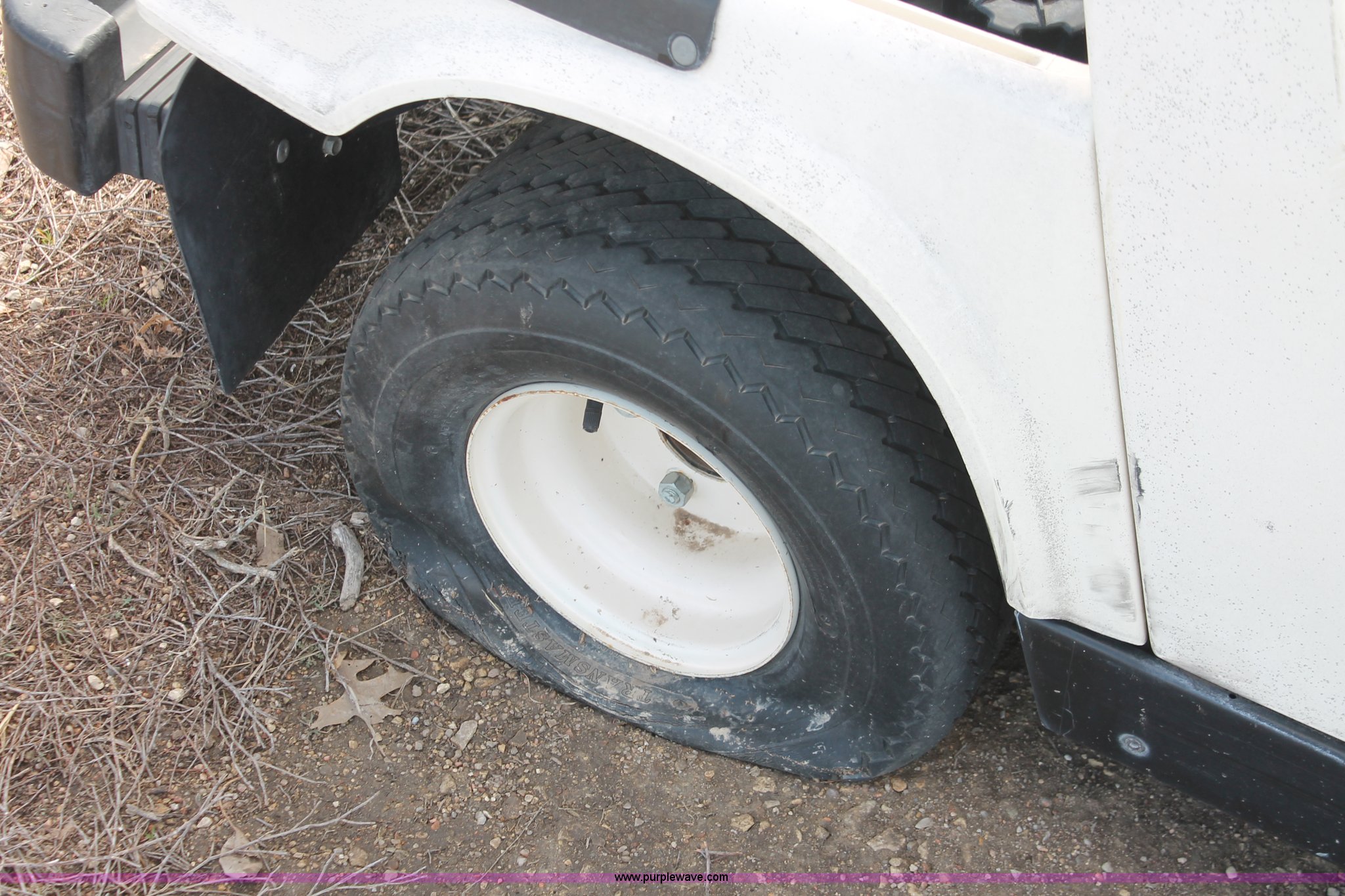 Purple Wave is selling a used Utility Vehicle in Kansas. This item is a Yamaha golf cart with the following: Yamaha gas engine, Forward and reverse, Canopy, Club caddie, Two seat, Flat, blown, and missing tires, No key, Serial JG5-403138