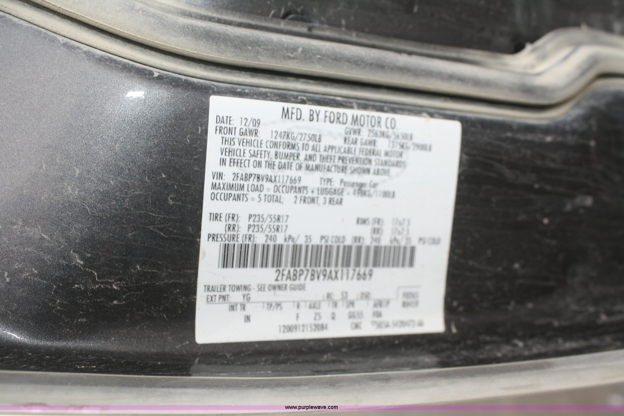 2010 Ford Crown Victoria Police Interceptor. 117,624 miles on odometer, 4.6L V8 SOHC 16V FFV gas engine, Automatic transmission, AC and heat, Tilt, Cruise, AM/FM, Power windows, locks, mirrors, and seats, Cloth interior, Adjustable pedals, 235/55R17 tires. Title distribution may be delayed up to 14 days from verification of funds. 2FABP7BV9AX117669. Shipping quotes available. Douglas County Public Works. 711 E. 23rd Street. Lawrence, KS 66046