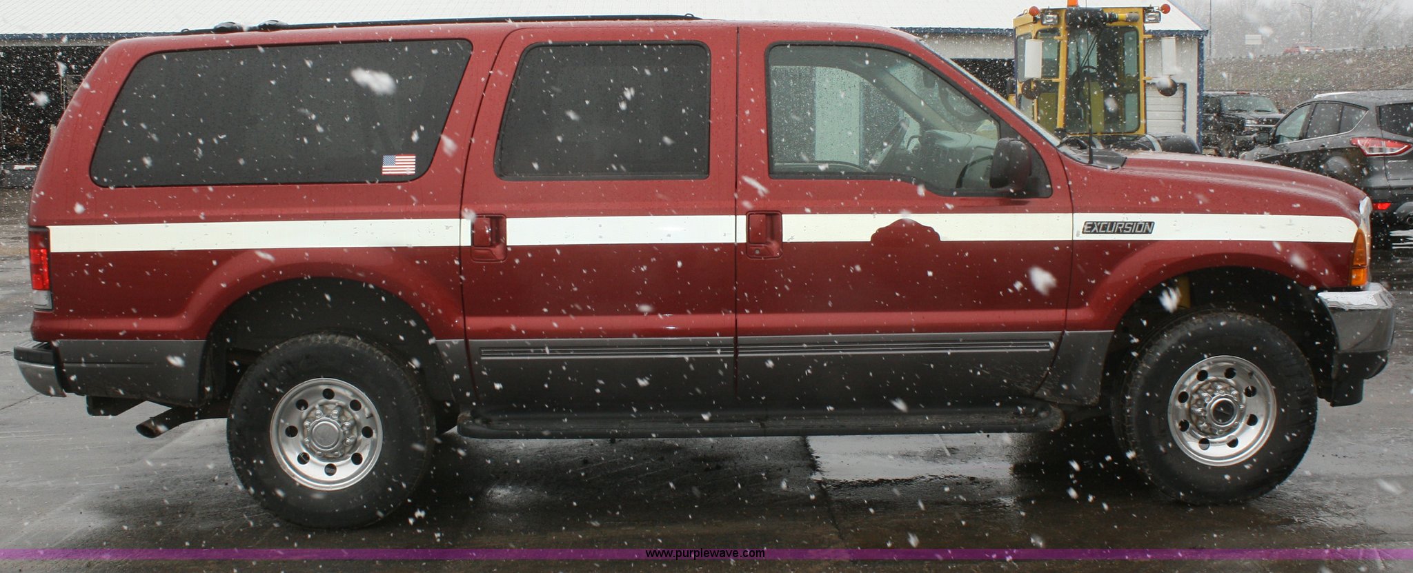 Purple Wave is selling a used Passenger Vehicle in Kansas. This item is a 2001 Ford Excursion XLT SUV with the following: 109,410 miles on odometer, 6.8L V10 SOHC 20V gas engine, Automatic transmission, Four wheel drive, AC and heat, Tilt, Cruise, AM/FM/CD/cassette, Power windows, locks, mirrors, and seat, Cloth interior, Receiver hitch, 265/75R16 tires