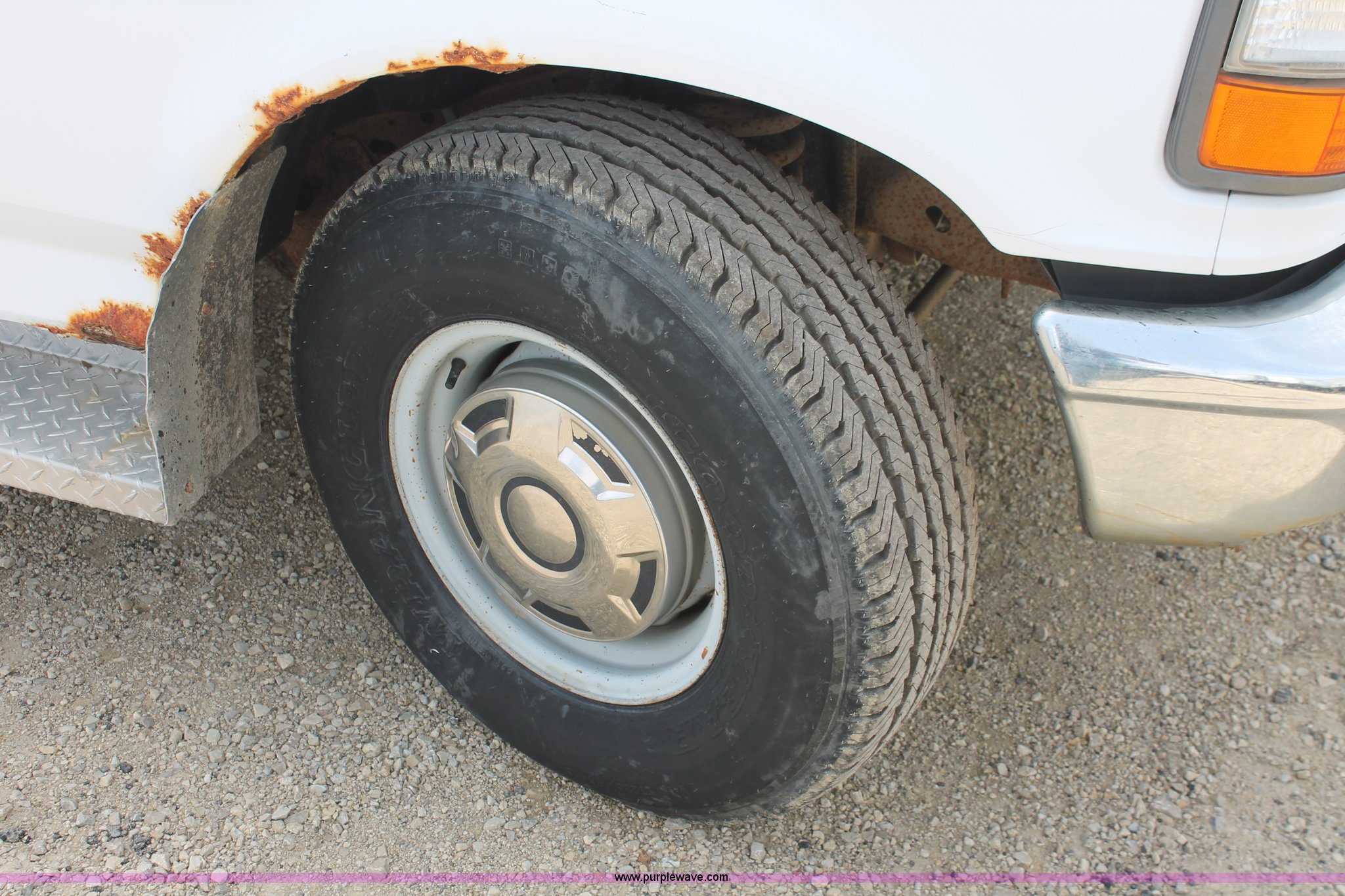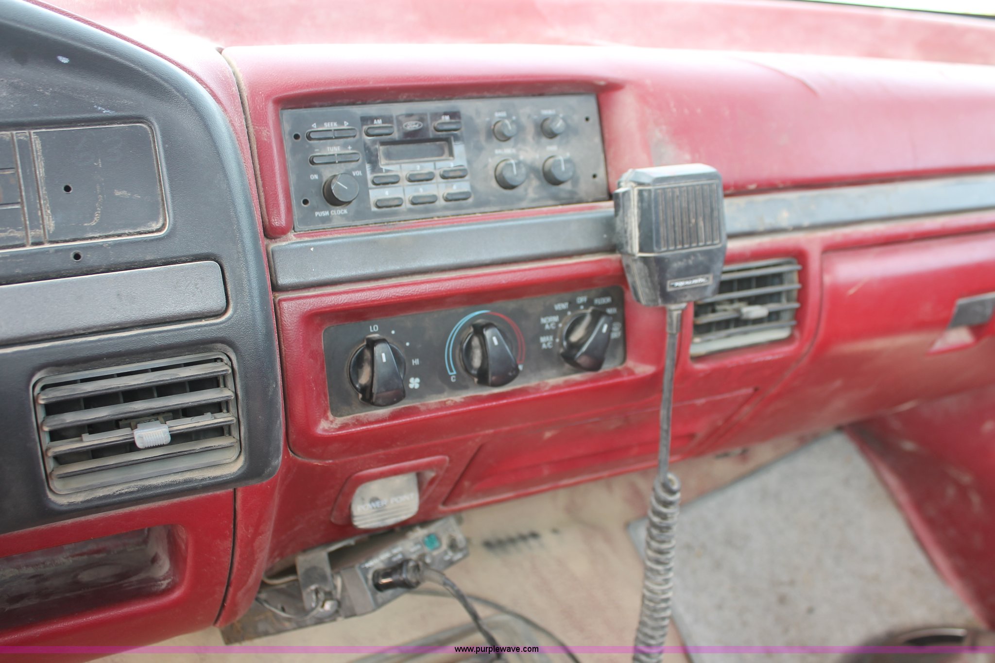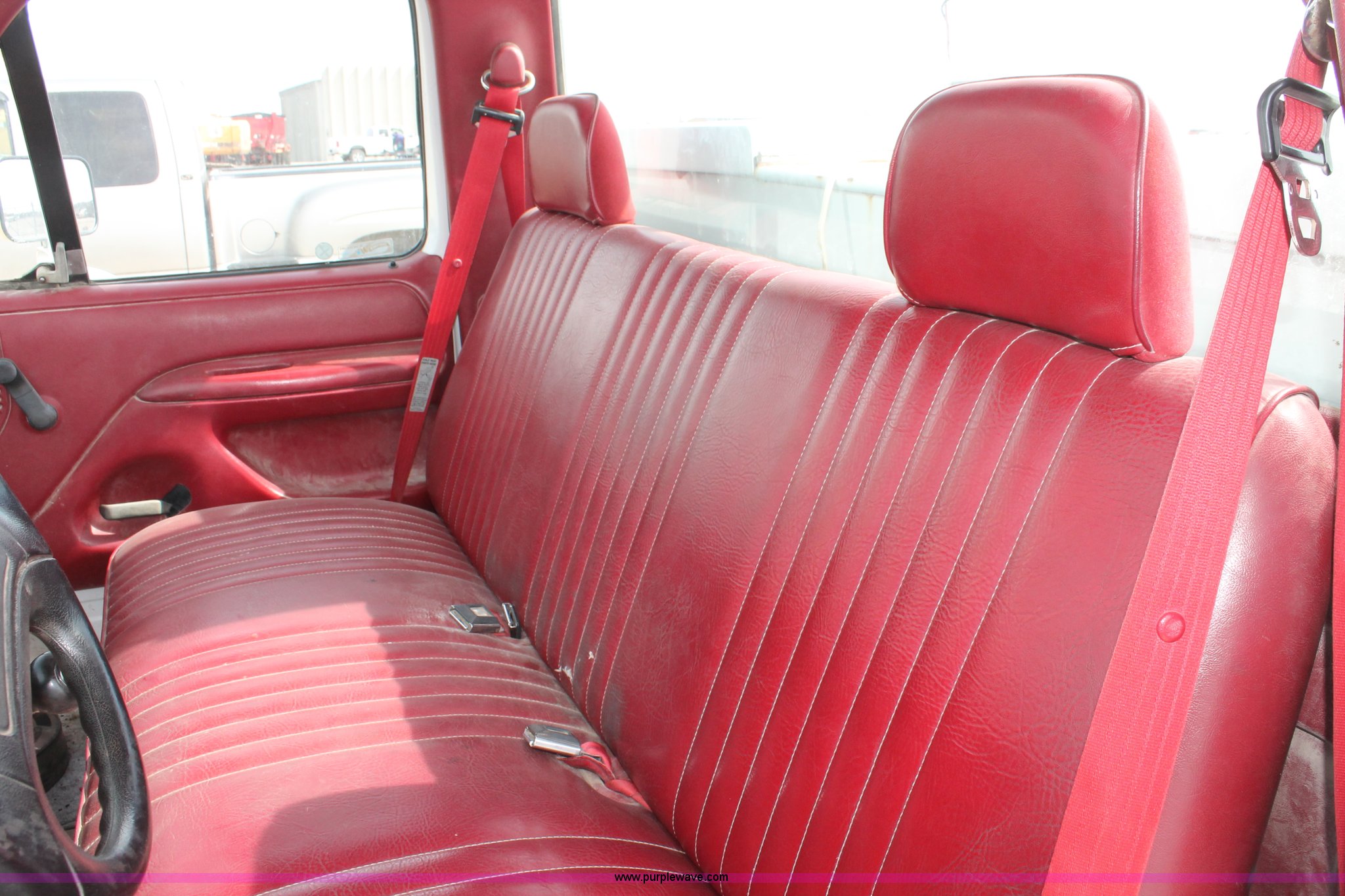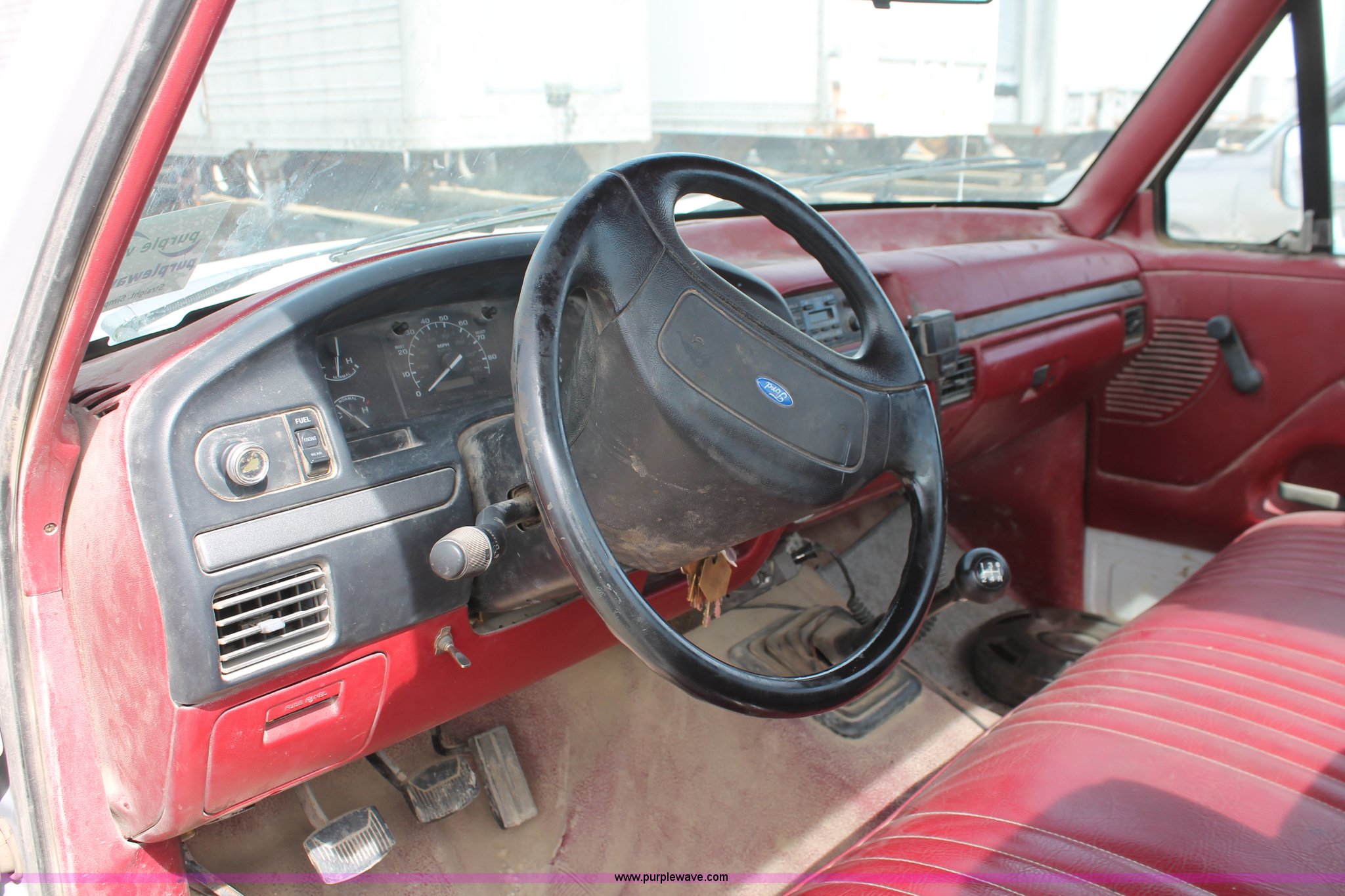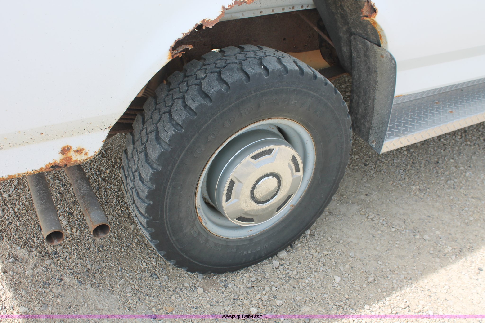 Purple Wave is selling a used Passenger Vehicle in Kansas. This item is a 1993 Ford F250 XL pickup truck with the following: 137,971 miles on odometer, 5.8L V8 OHV 16V gas engine, Five speed manual transmission, AC and heat, AM/FM, Manual windows and locks, Vinyl interior, Long bed, Toolboxes, 105 gallon transfer fuel tank, Electric pump and meter, 235/85R16 tires, Rust