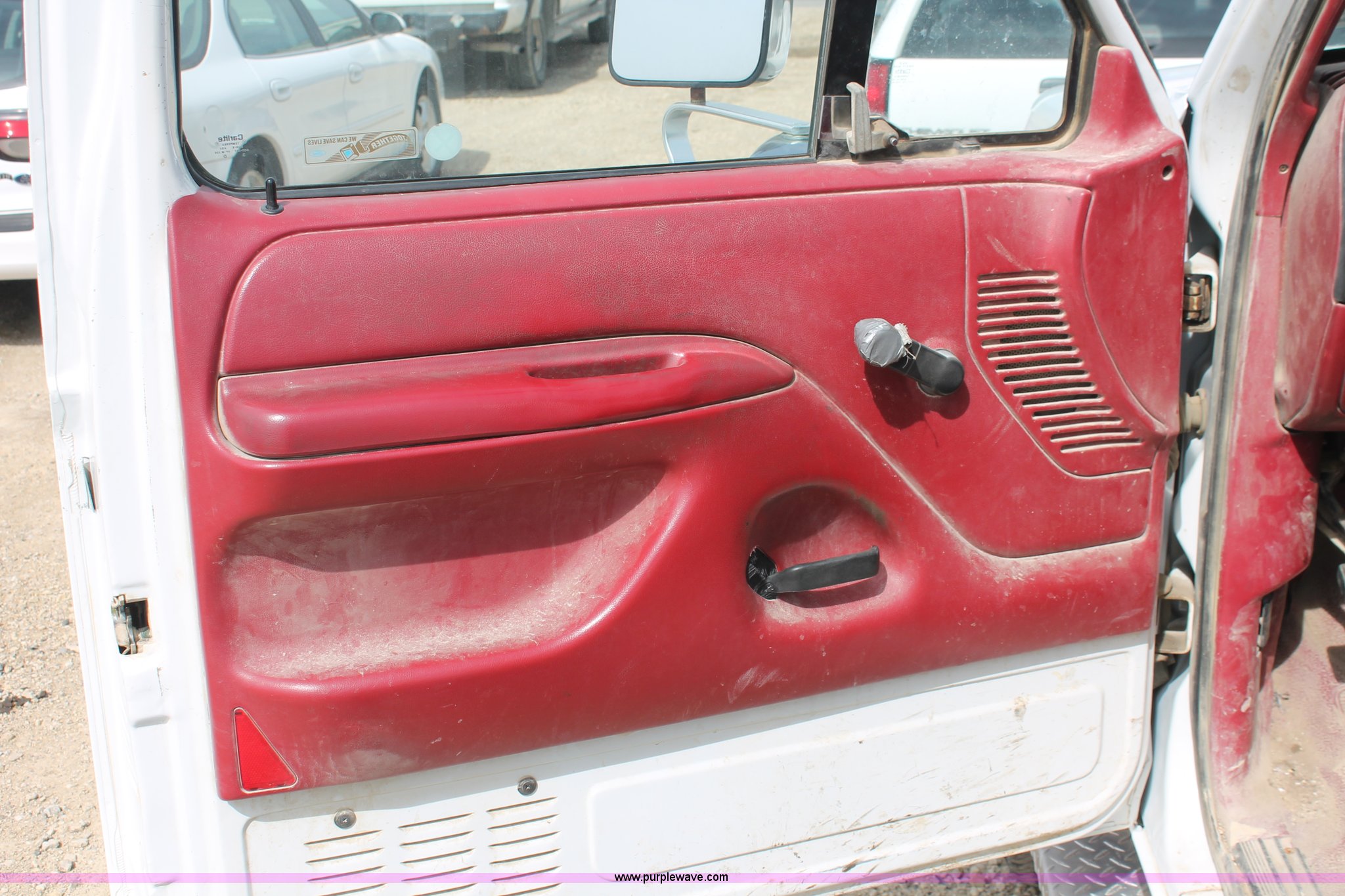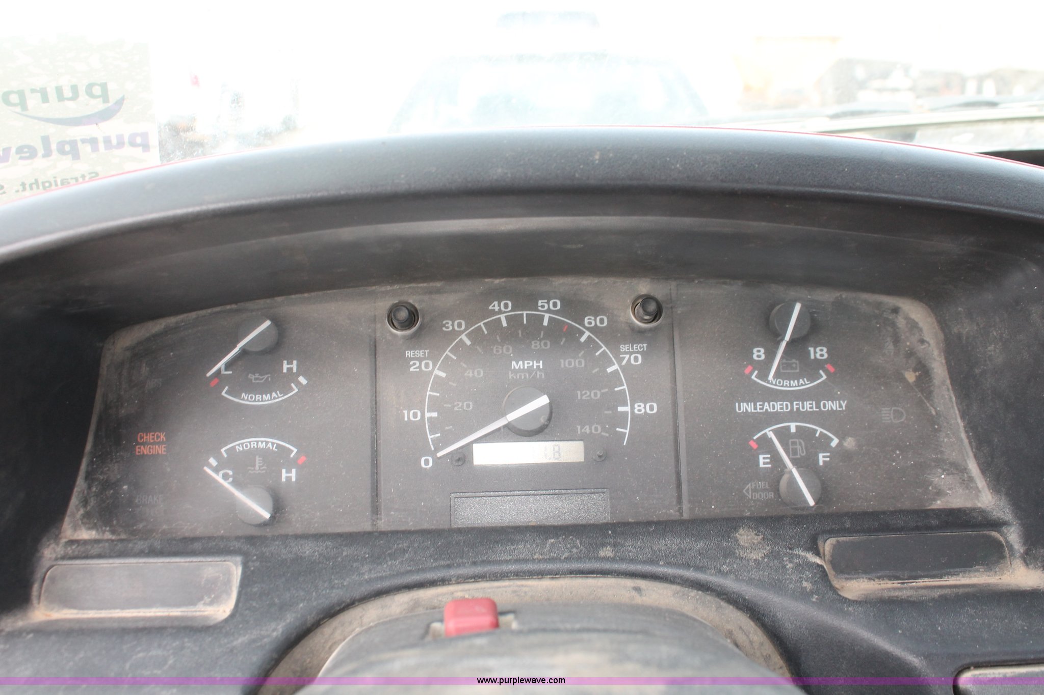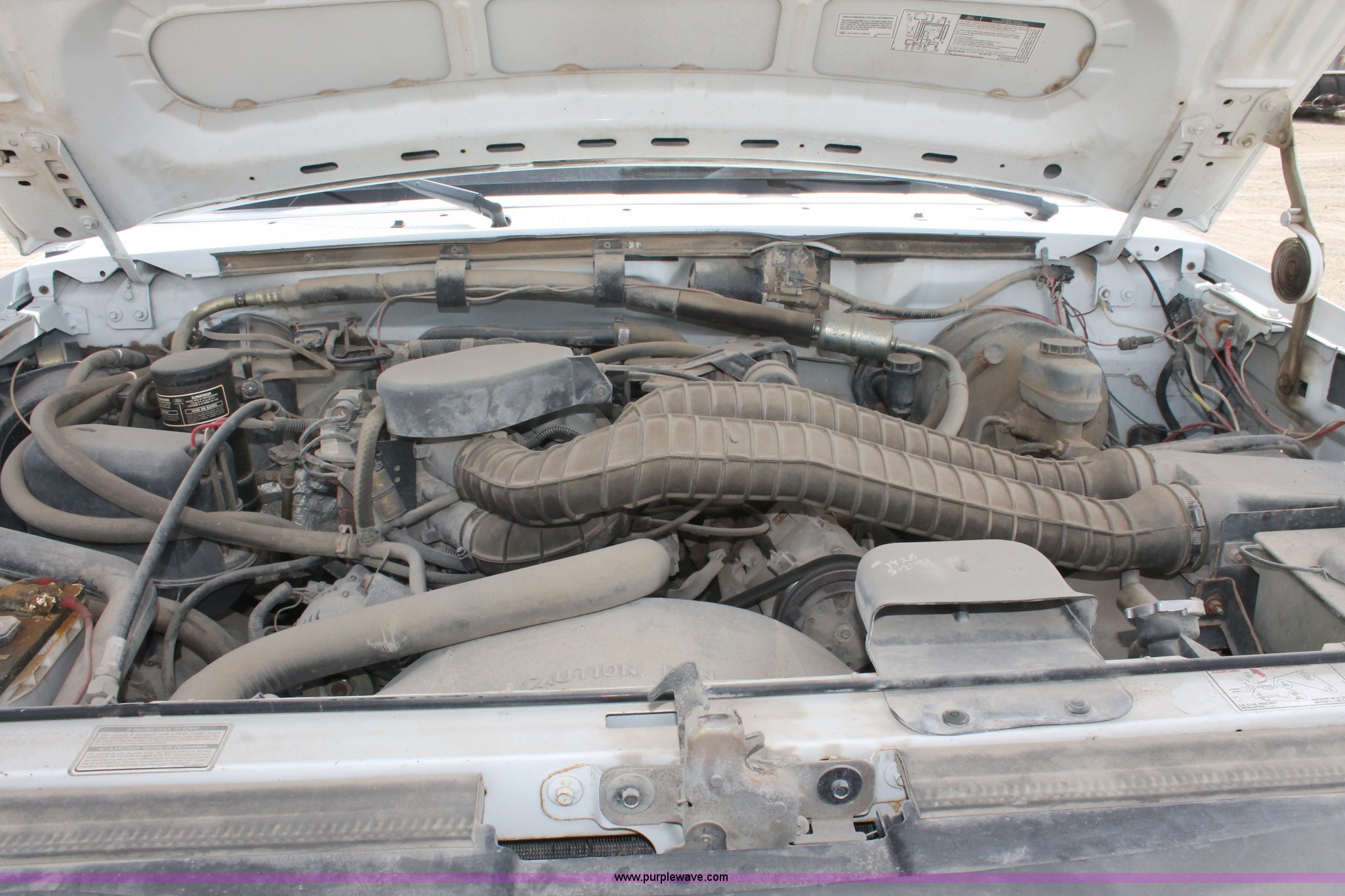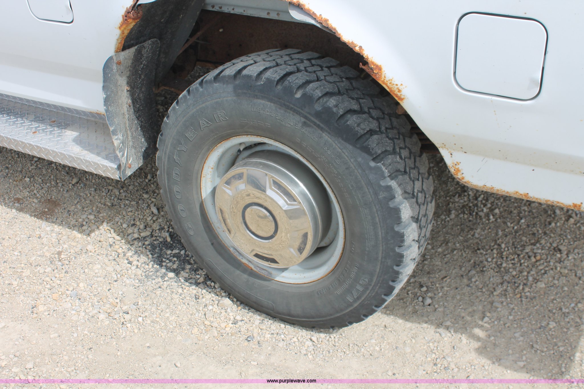 Purple Wave is selling a used Passenger Vehicle in Kansas. This item is a 1993 Ford F250 XL pickup truck with the following: 137,971 miles on odometer, 5.8L V8 OHV 16V gas engine, Five speed manual transmission, AC and heat, AM/FM, Manual windows and locks, Vinyl interior, Long bed, Toolboxes, 105 gallon transfer fuel tank, Electric pump and meter, 235/85R16 tires, Rust