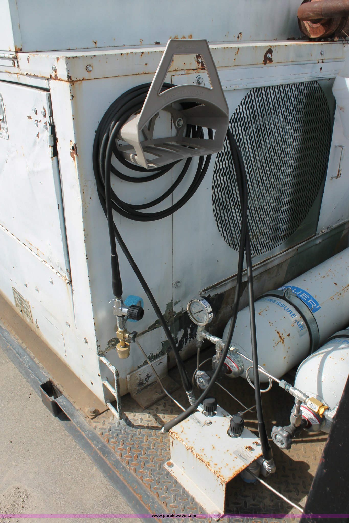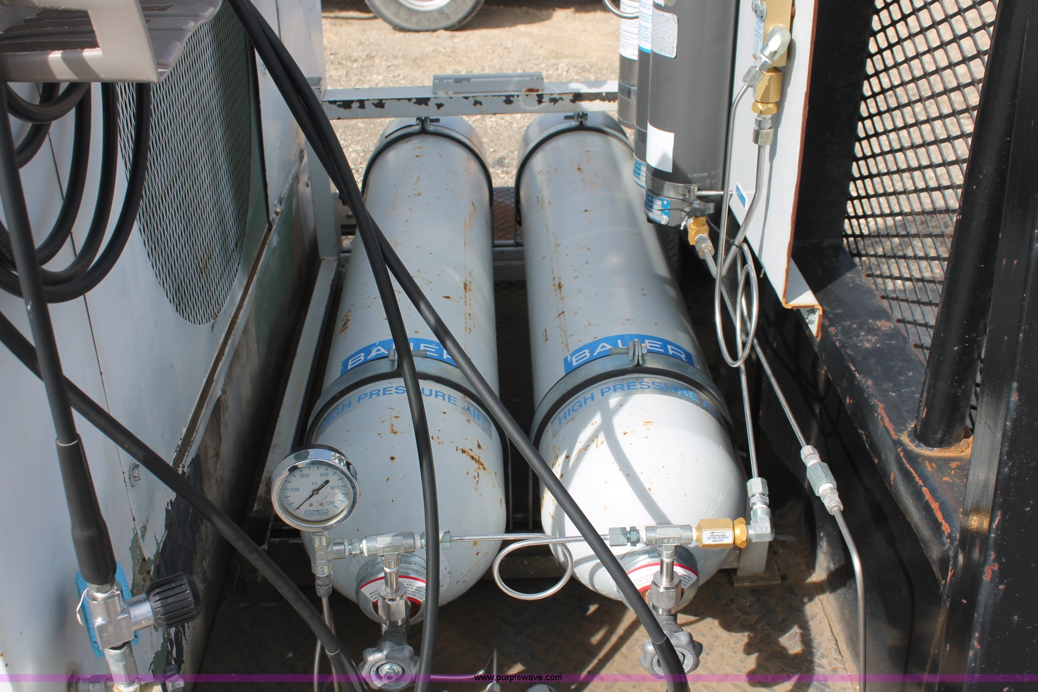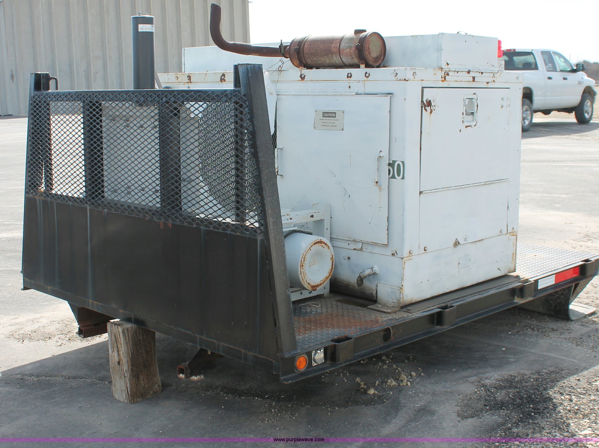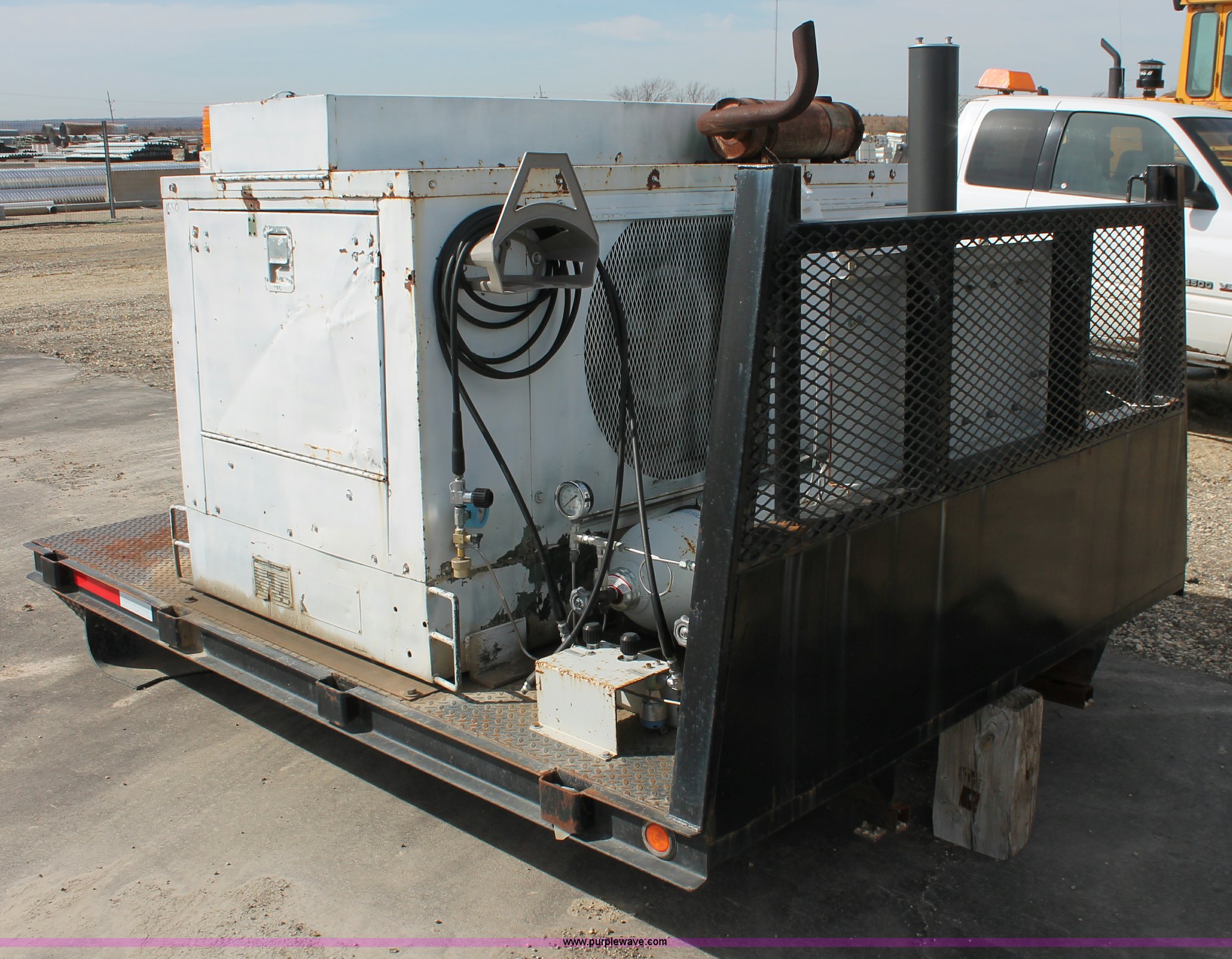 Purple Wave is selling a used Automotive Parts or Acces. in Kansas. This item is a Flatbed with high pressure air system with the following: 8.5'L x 80"W bed, Baver high pressure air system, Model KA-1503P, 639 hours on meter, Wisconsin four cylinder engine, 15 CFM, 5,000 max psi, Serial 77058-3