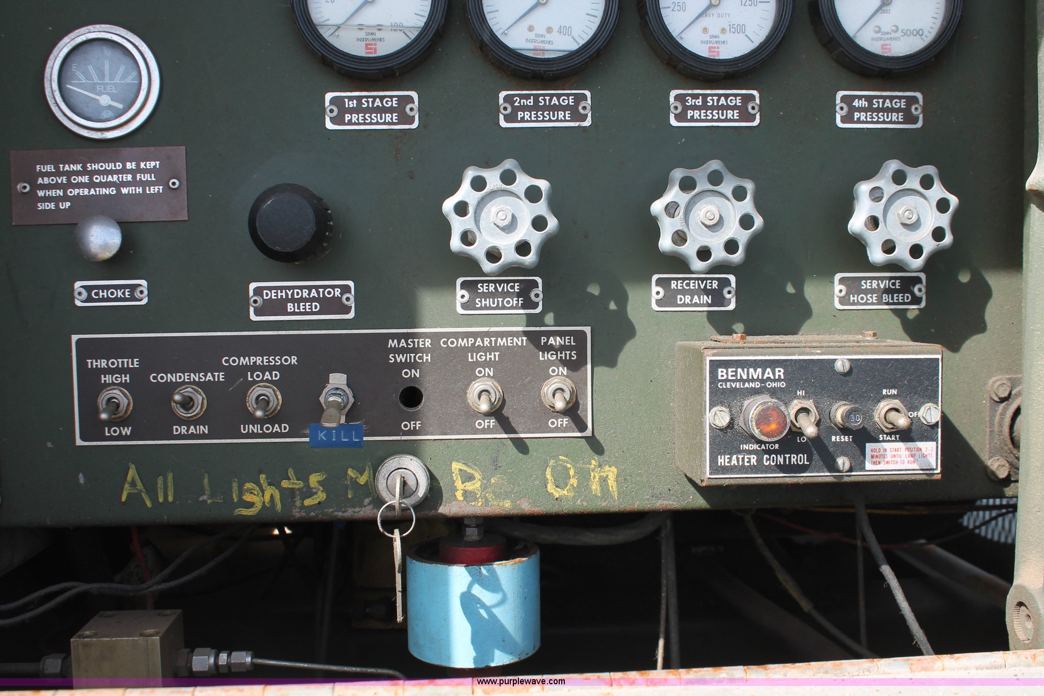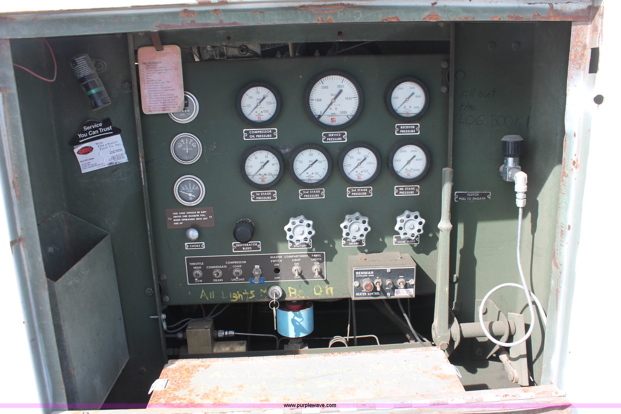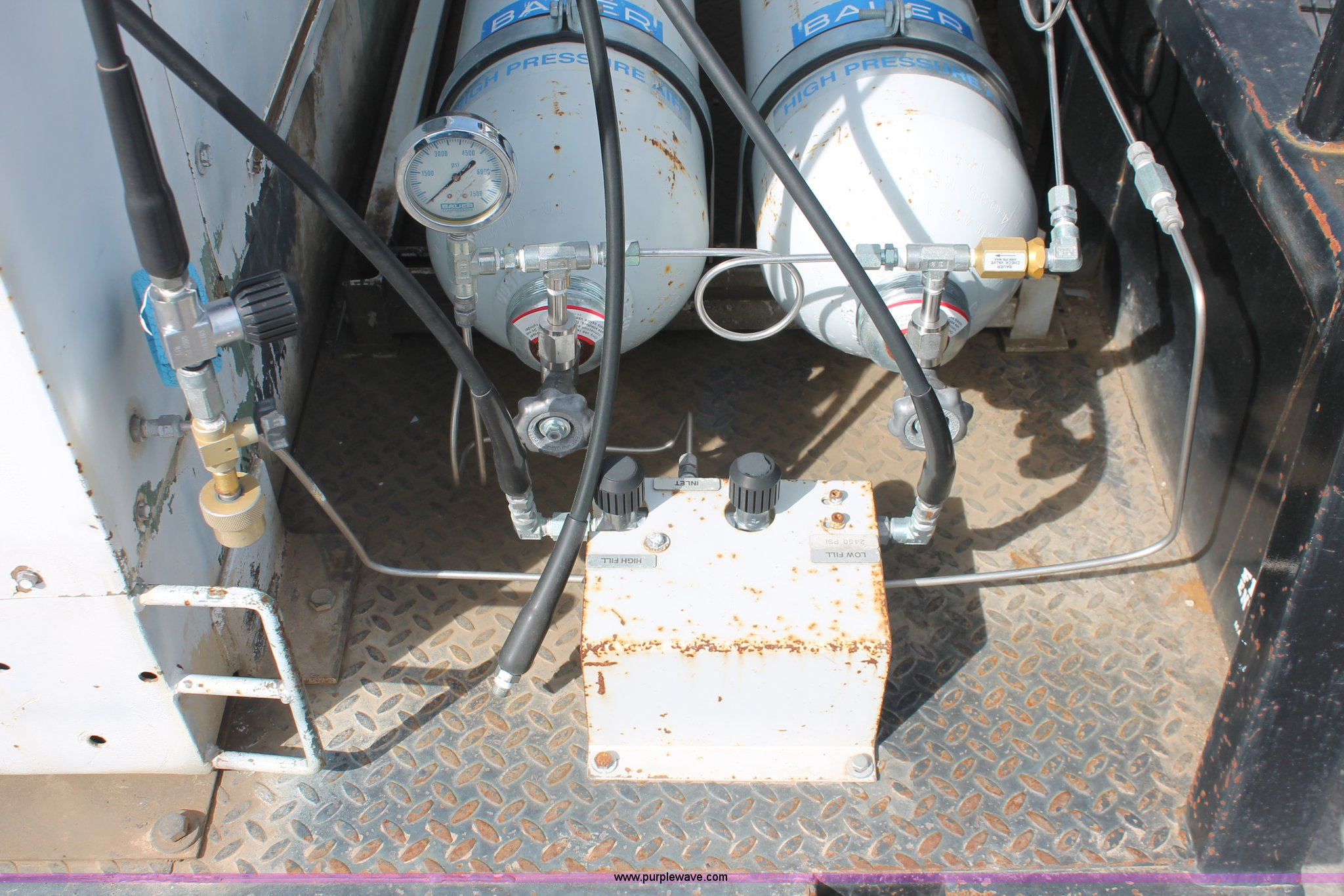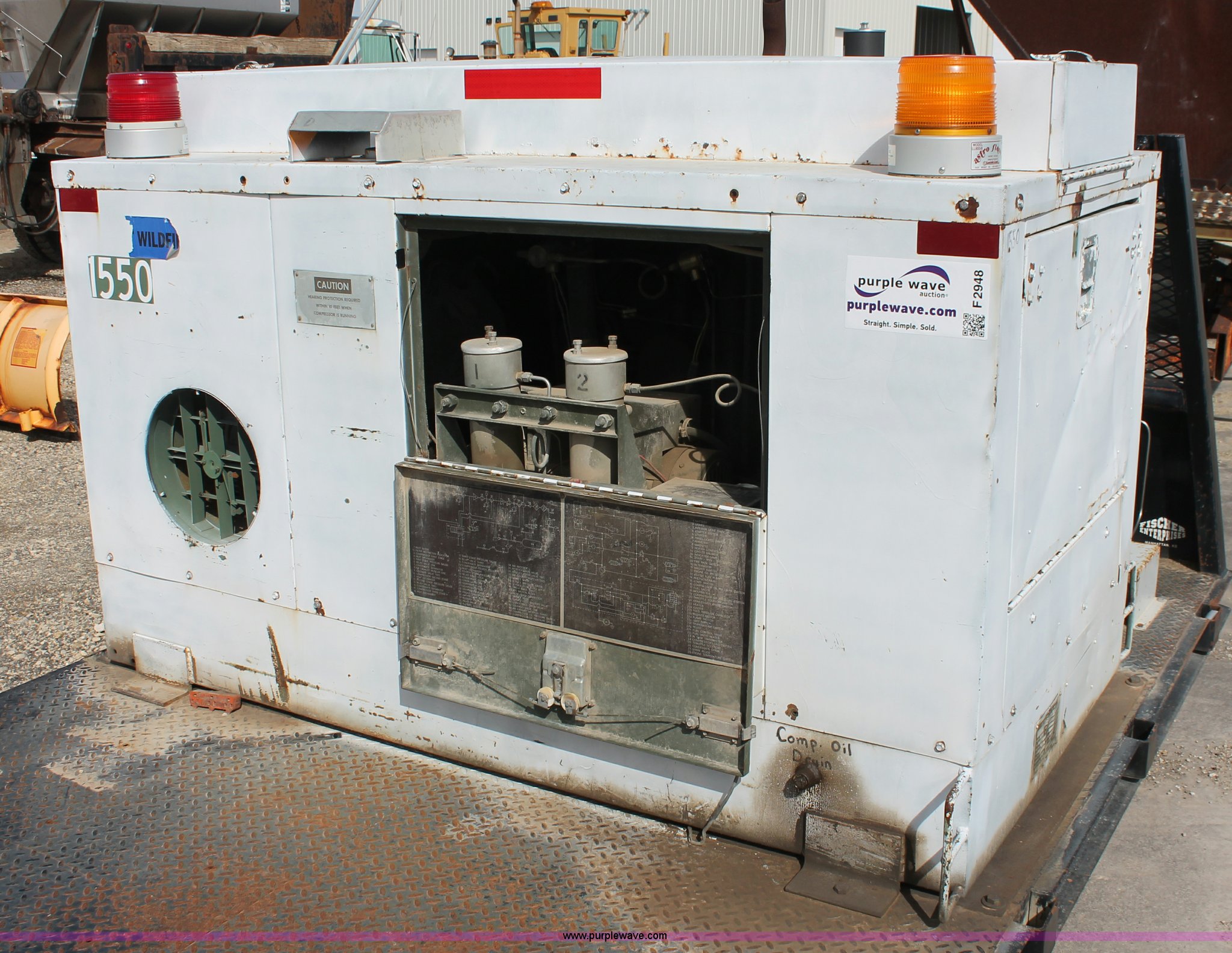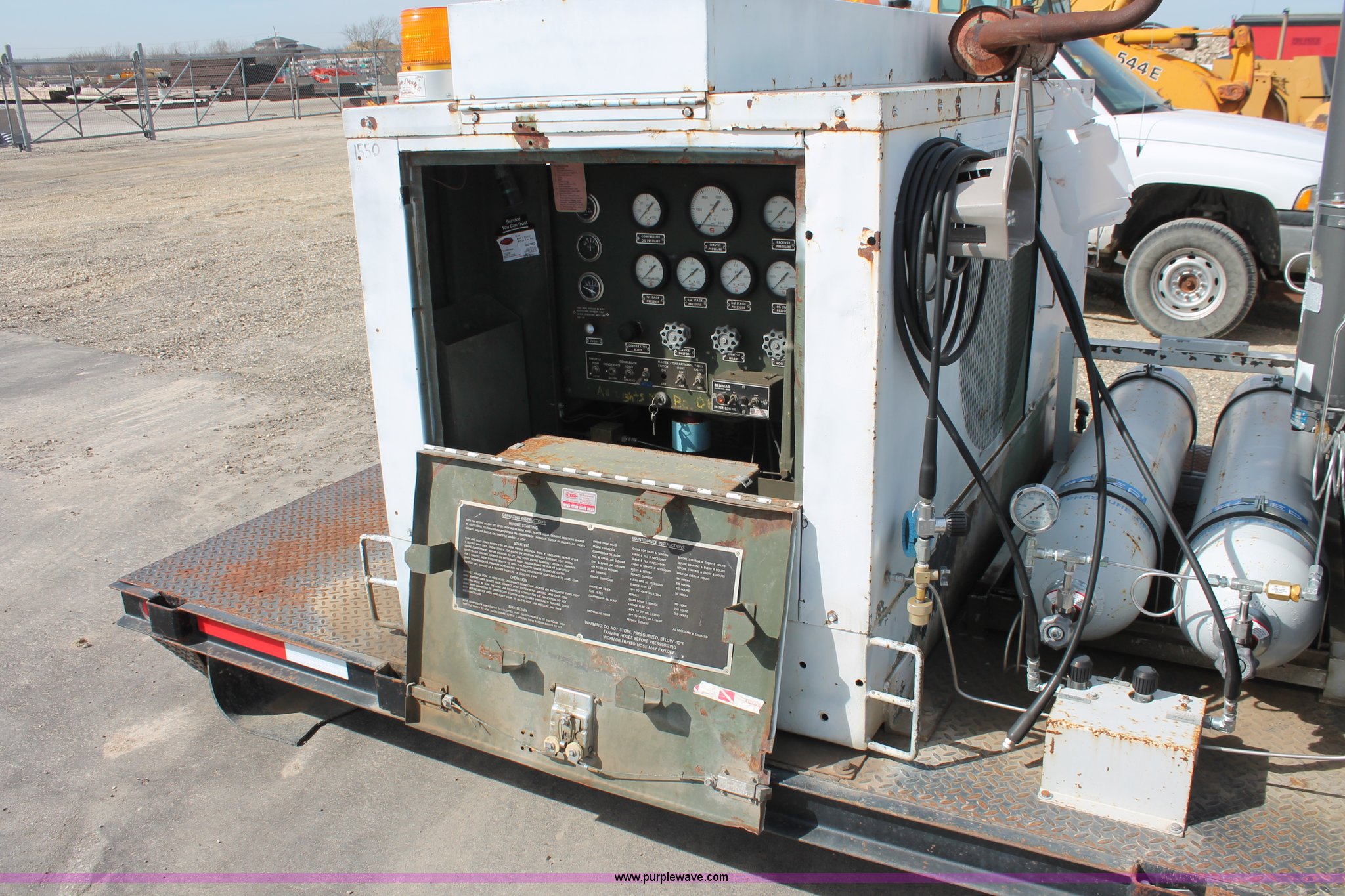 Purple Wave is selling a used Automotive Parts or Acces. in Kansas. This item is a Flatbed with high pressure air system with the following: 8.5'L x 80"W bed, Baver high pressure air system, Model KA-1503P, 639 hours on meter, Wisconsin four cylinder engine, 15 CFM, 5,000 max psi, Serial 77058-3