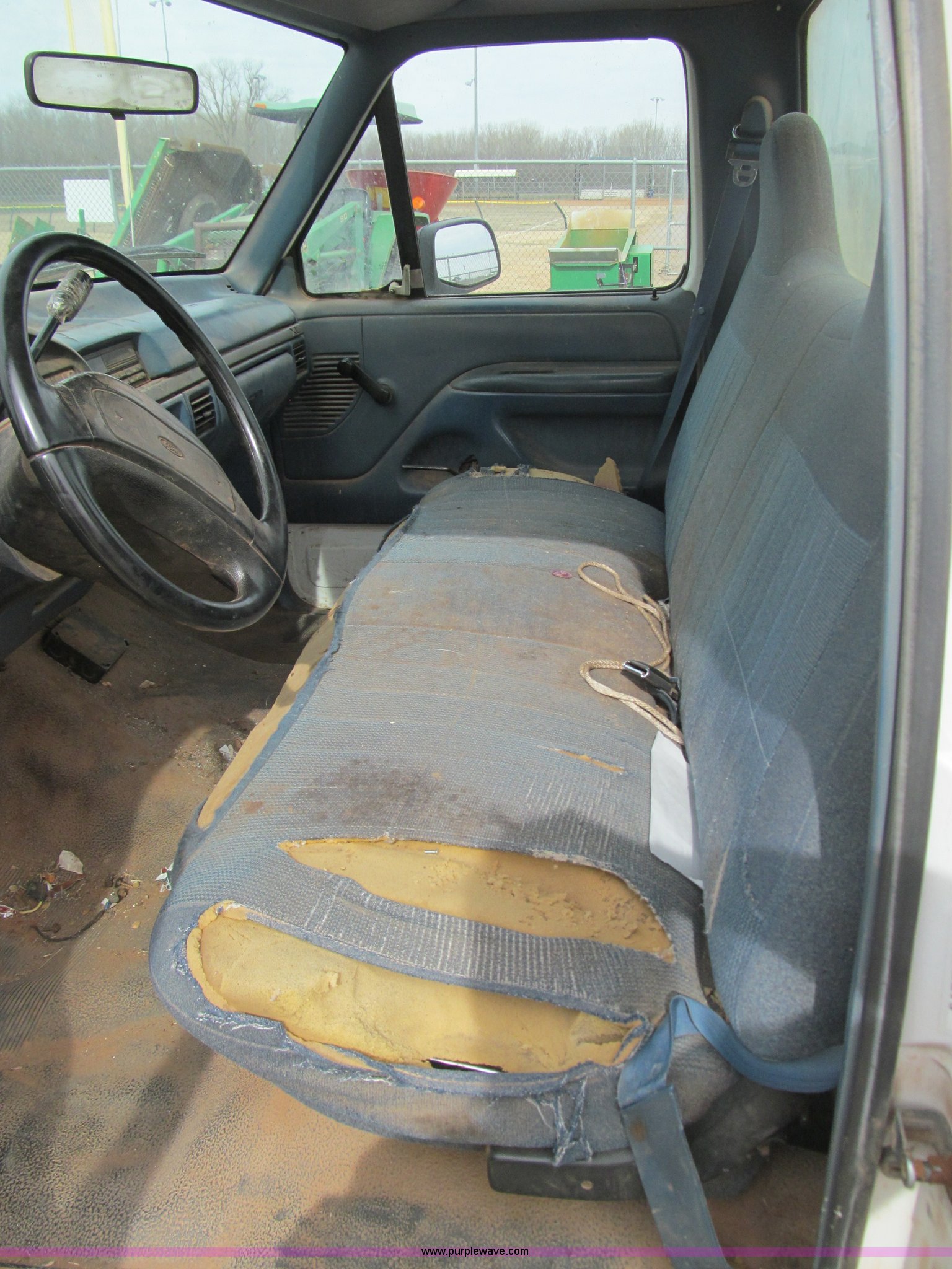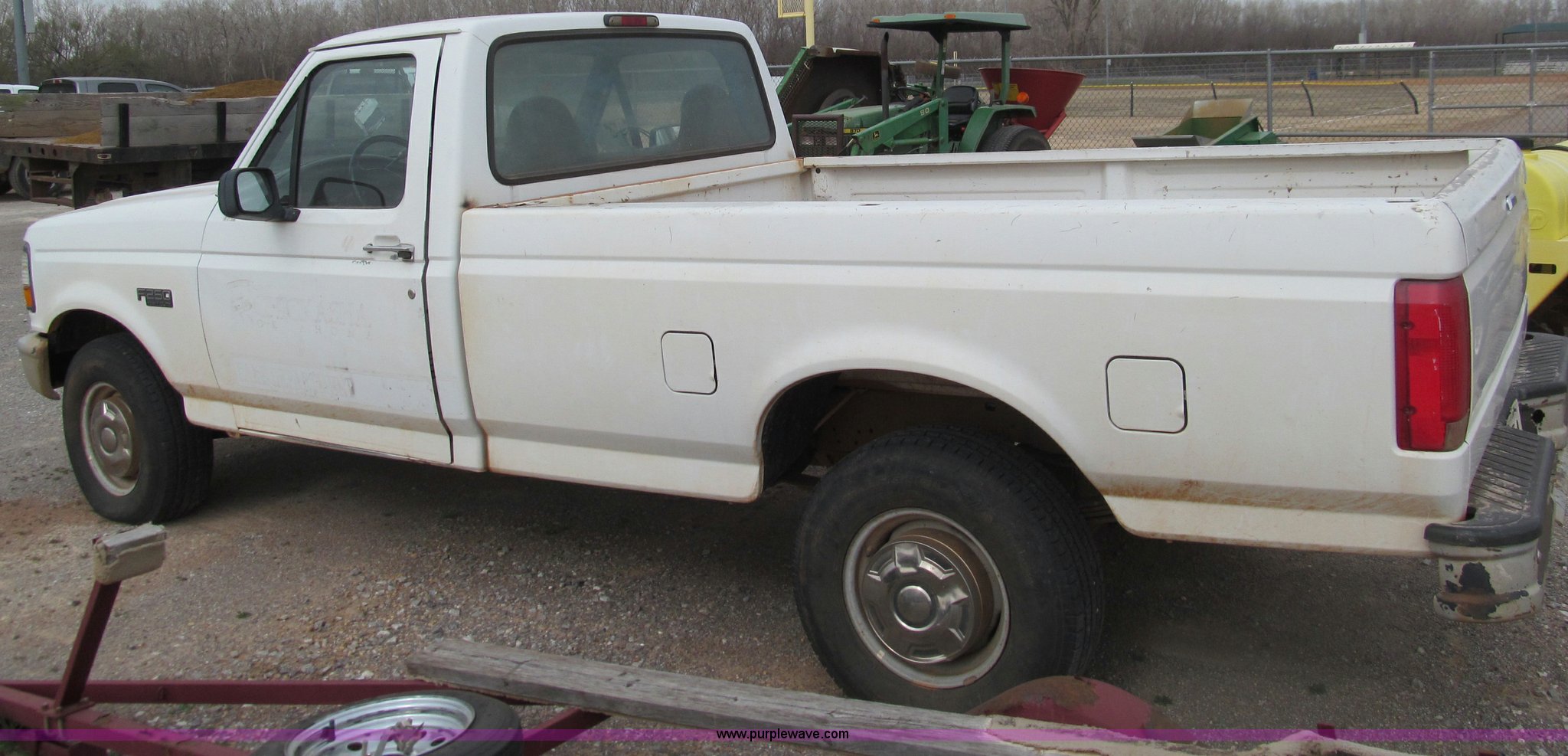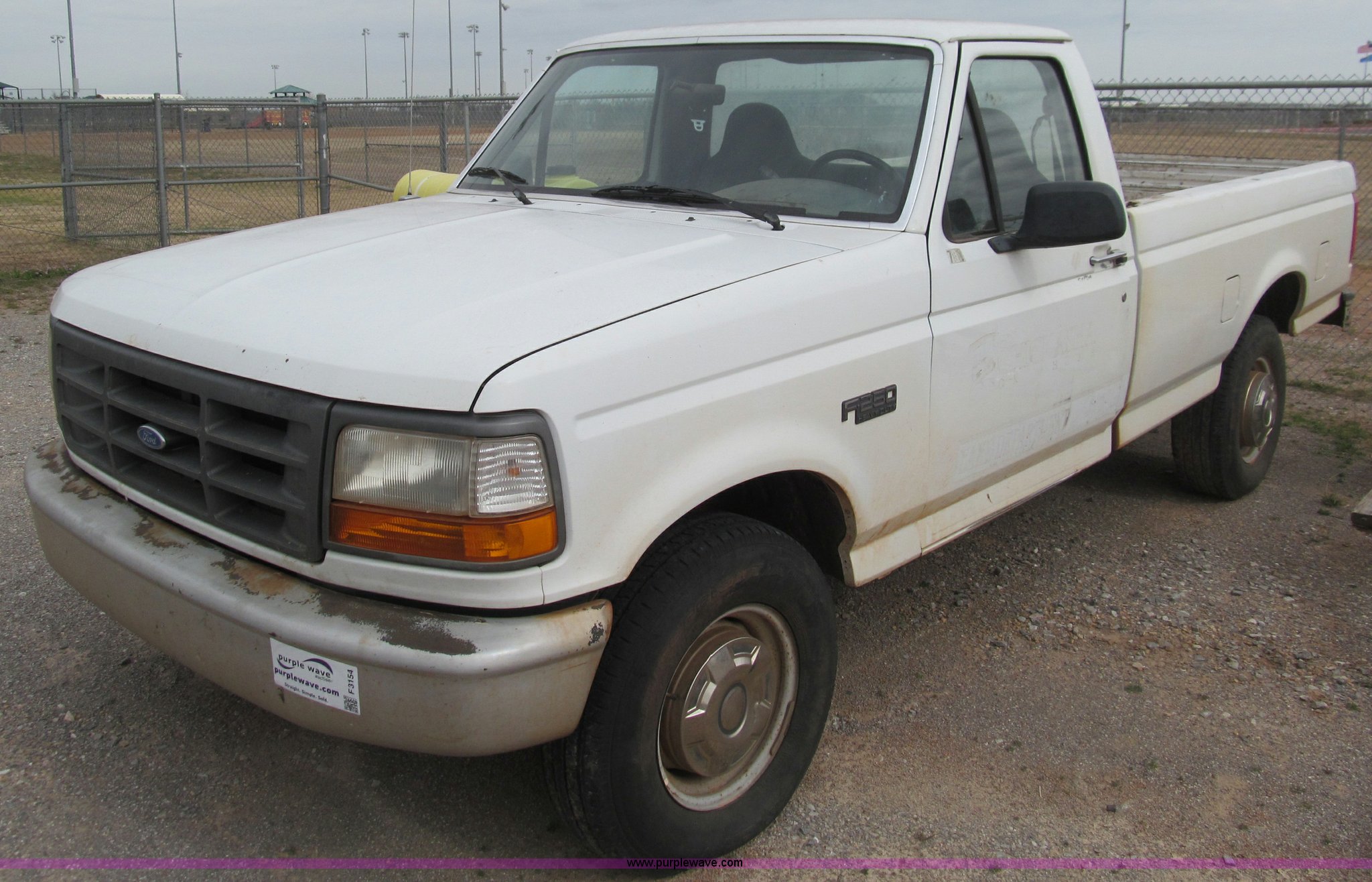 Purple Wave is selling a used Passenger Vehicle in Oklahoma. This item is a 1997 Ford F250 pickup truck with the following: 95,632 miles on odometer, 5.8L V8 OHV 16V gas engine, Automatic transmission, AC and heat, AM/FM, Manual windows and locks, Cloth interior, Long bed, LT245/75R16 tires, Interior cosmetic damage, Vehicle will not start