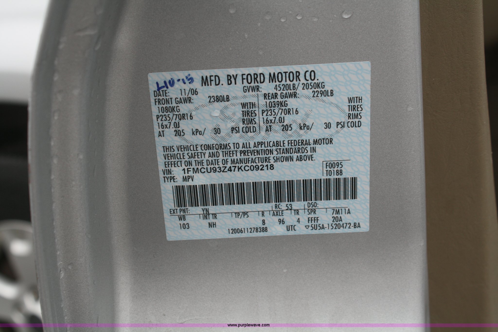 2007 Ford Escape XLT. 77,617 miles on odometer, 2.3L I4 EFI engine, Automatic transmission, AC and heat, Tilt , Cruise , AM/FM/CD, Power windows, locks, mirrors, and seats, Leather interior. Title distribution may be delayed up to 14 days from verification of funds. 1FMCU93Z47KC09218. Shipping quotes available. Douglas County Public Works. 711 E. 23rd Street. Lawrence, KS 66046