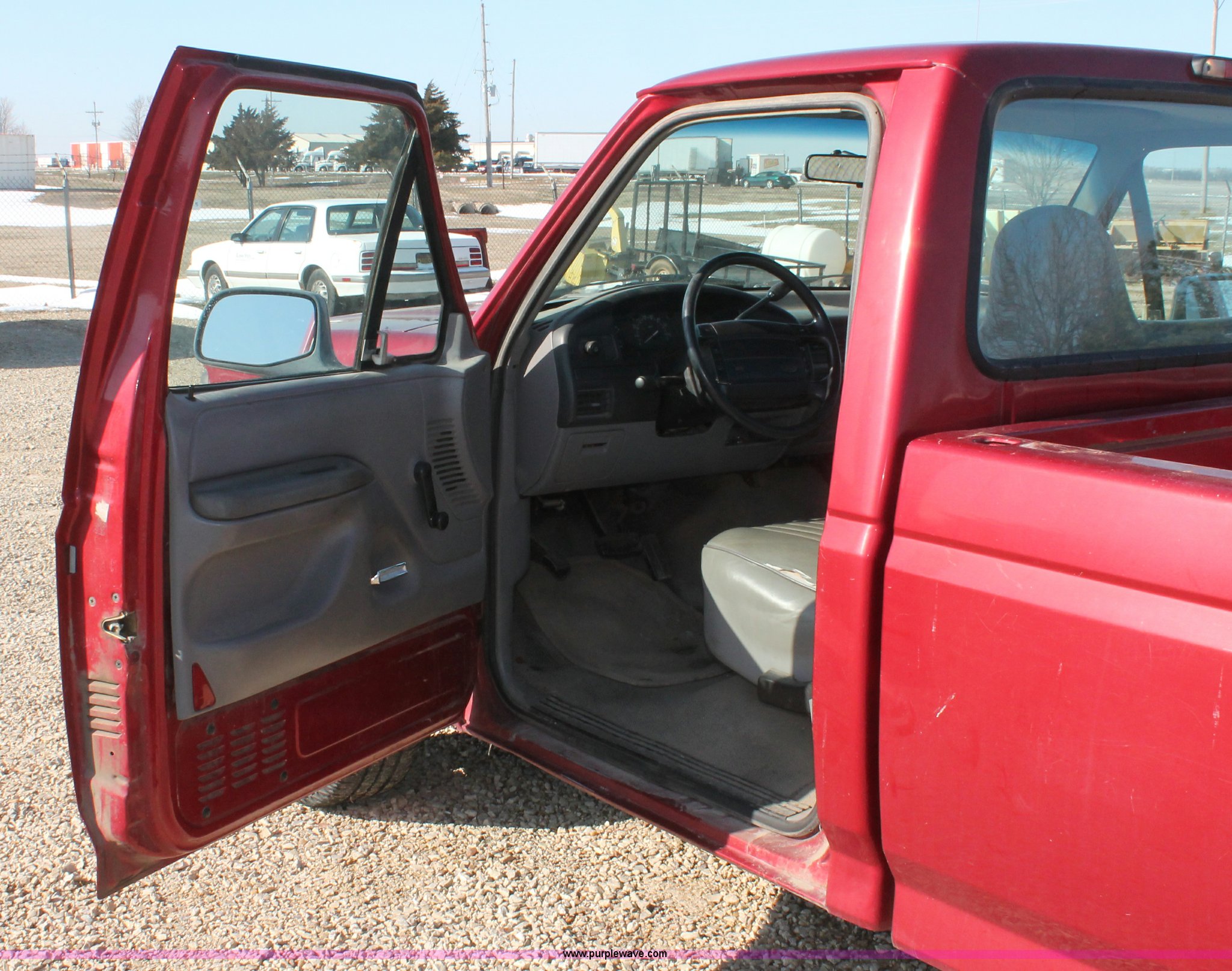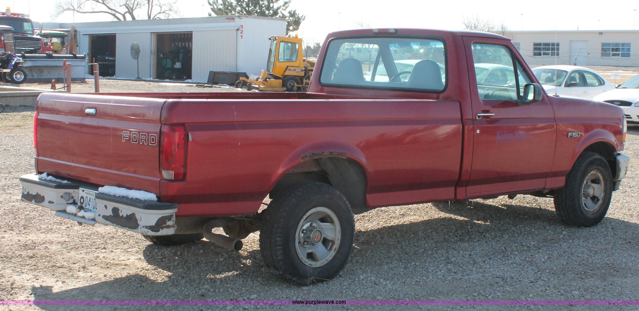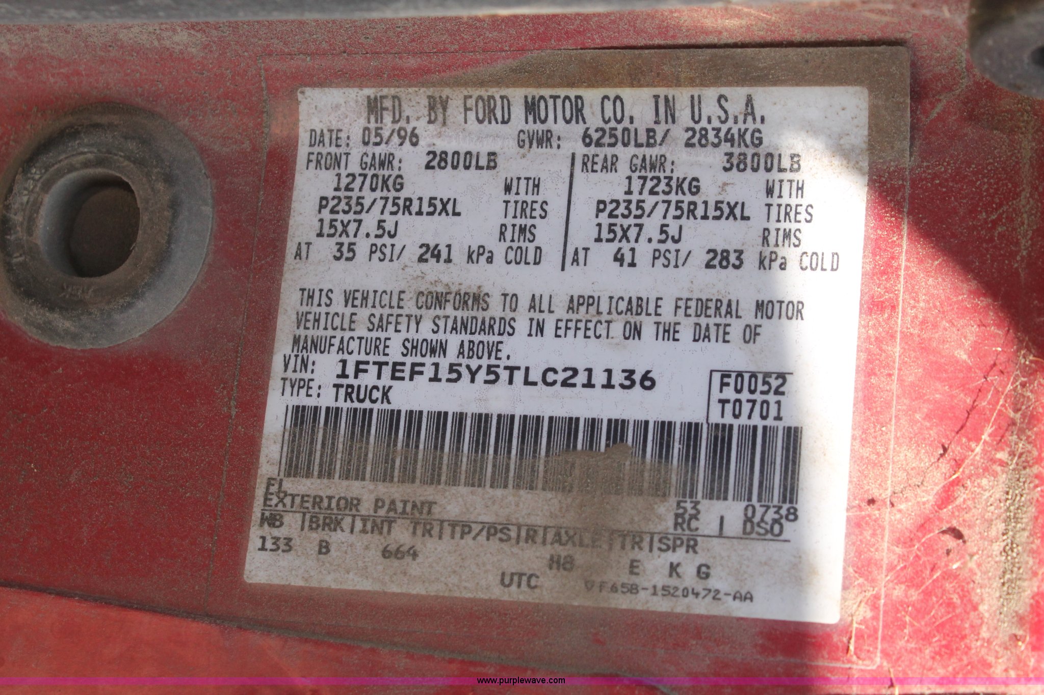 Purple Wave is selling a used Passenger Vehicle in Kansas. This item is a 1996 Ford F150 pickup truck with the following: 144,922 actual miles on odometer, 4.9L L6 OHV 12V gas engine, Automatic transmission, AC and heat, Cruise, AM/FM, Manual windows and locks, Vinyl interior, 2" ball, Trailer wiring, P235/75R15 tires, Rust, Bearings need replaced on differential