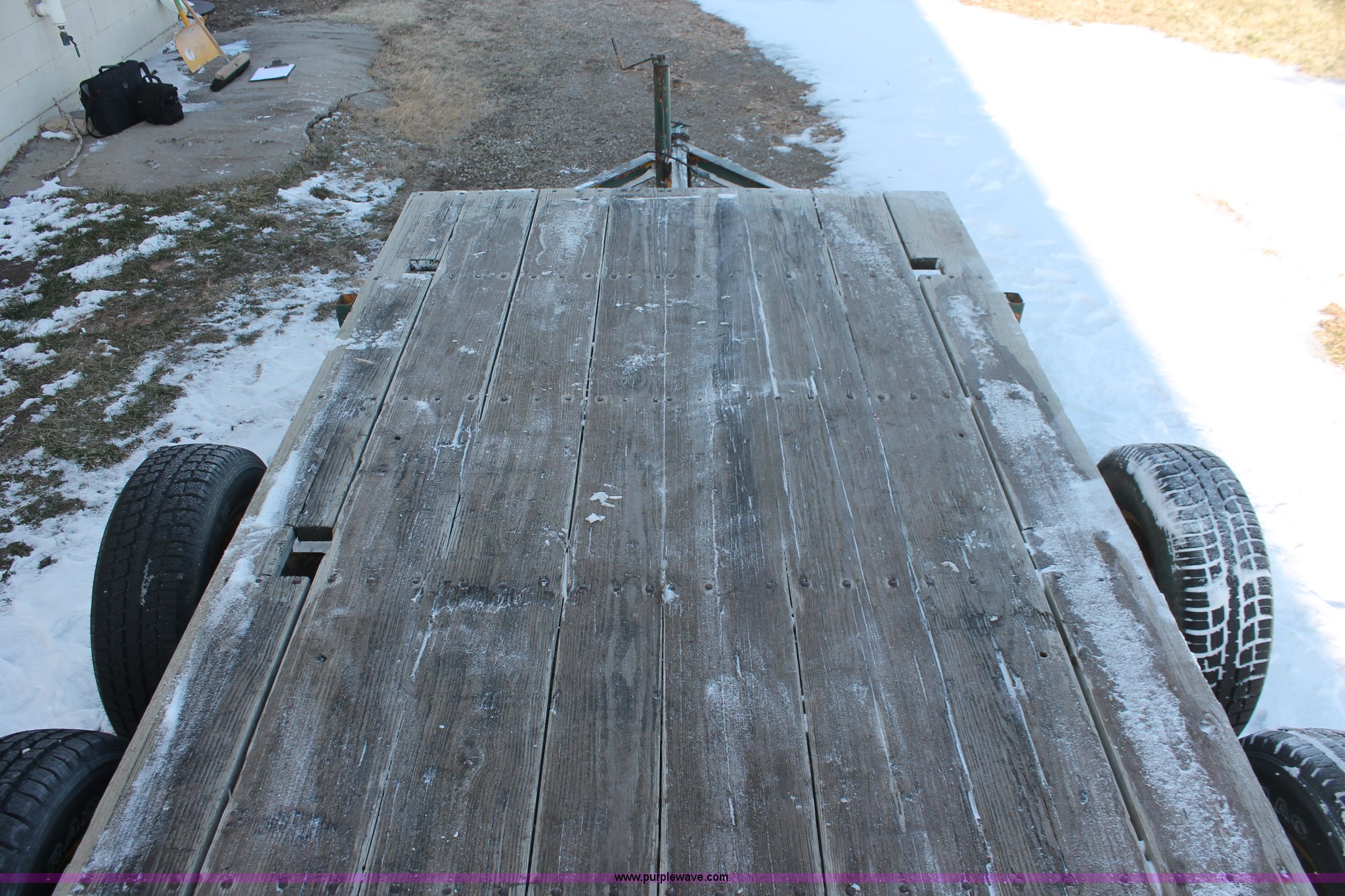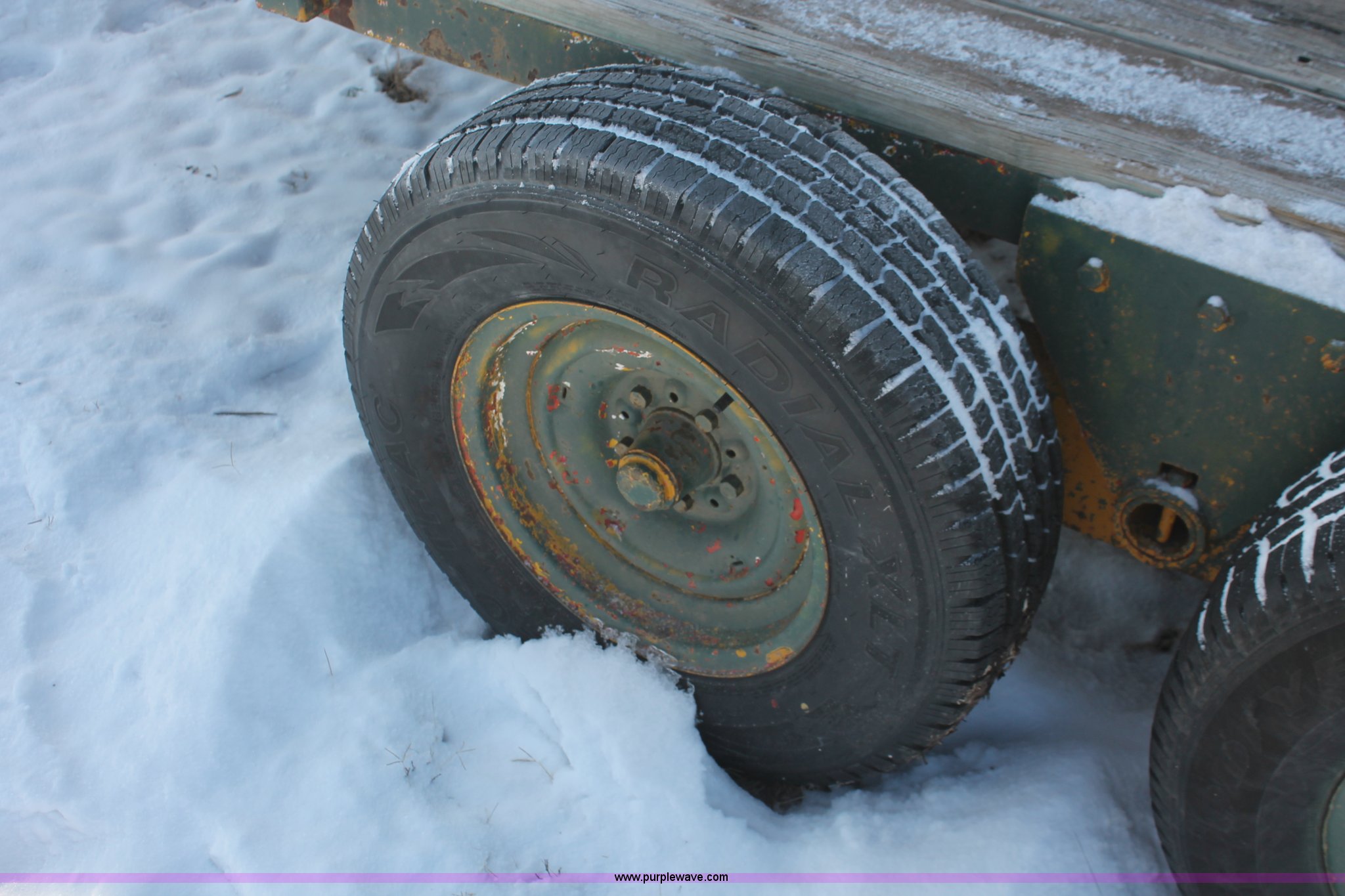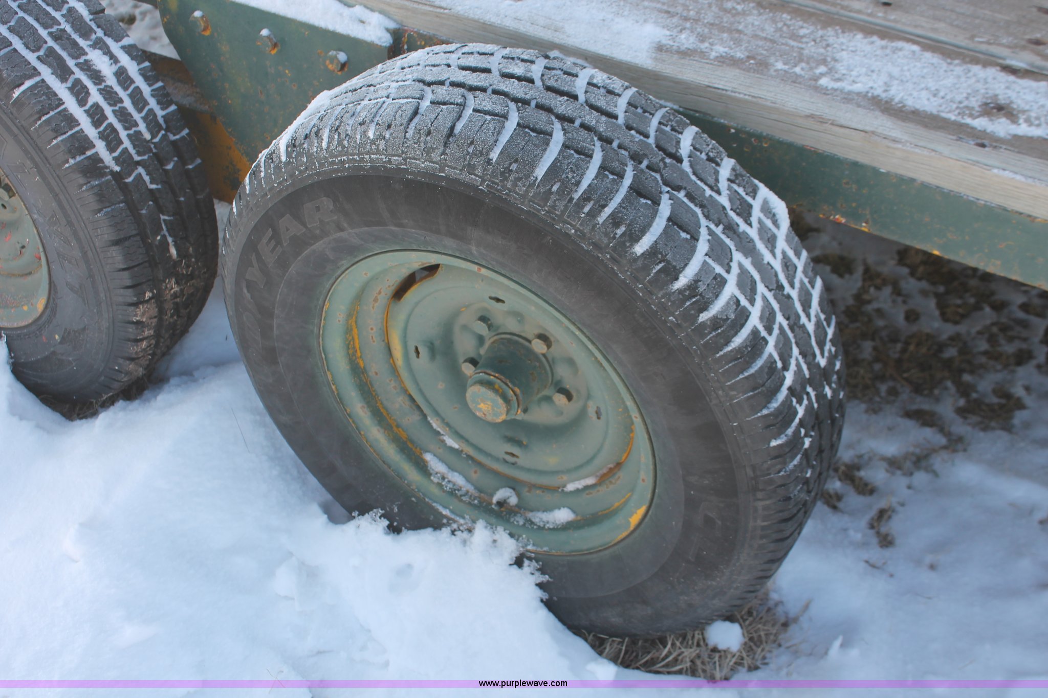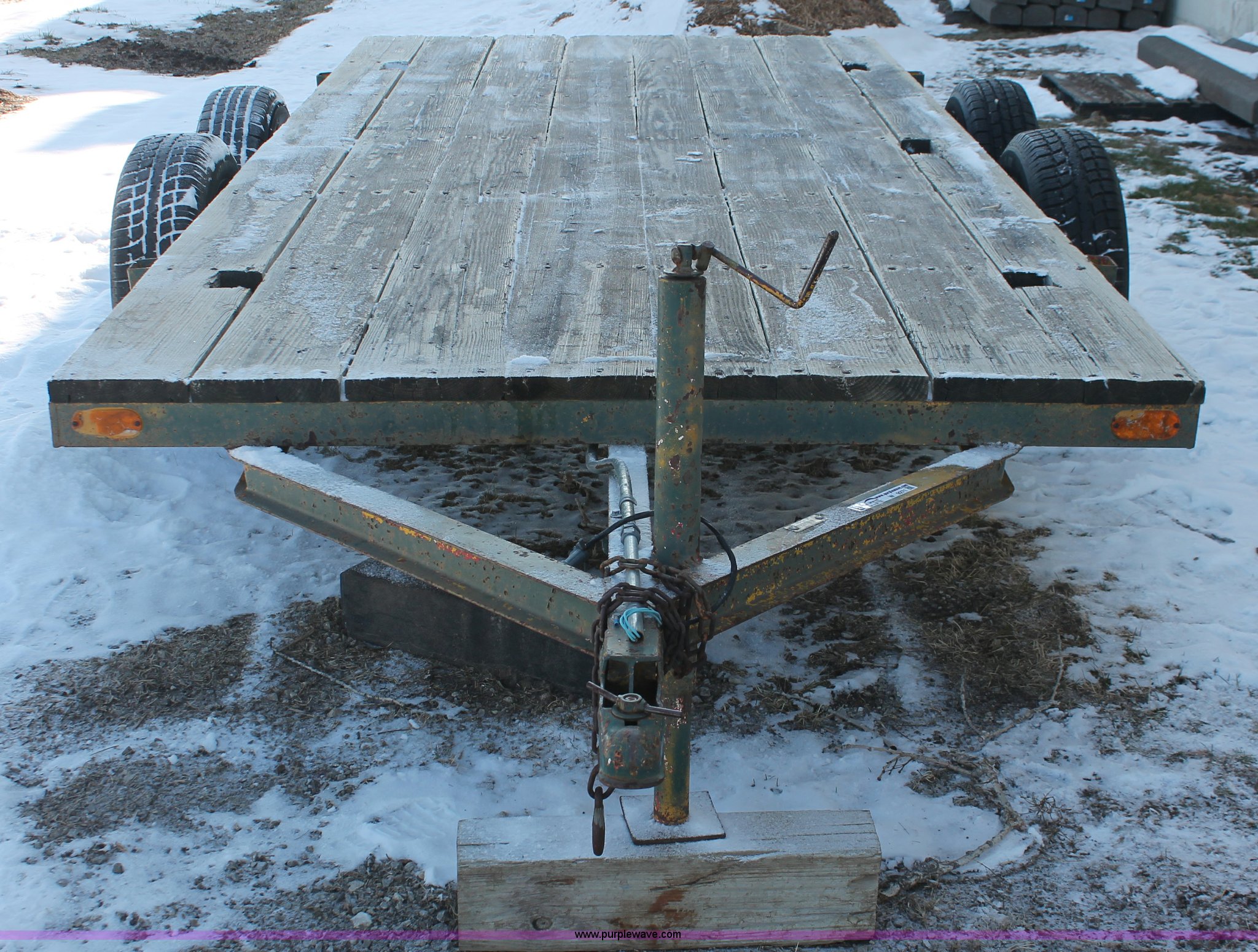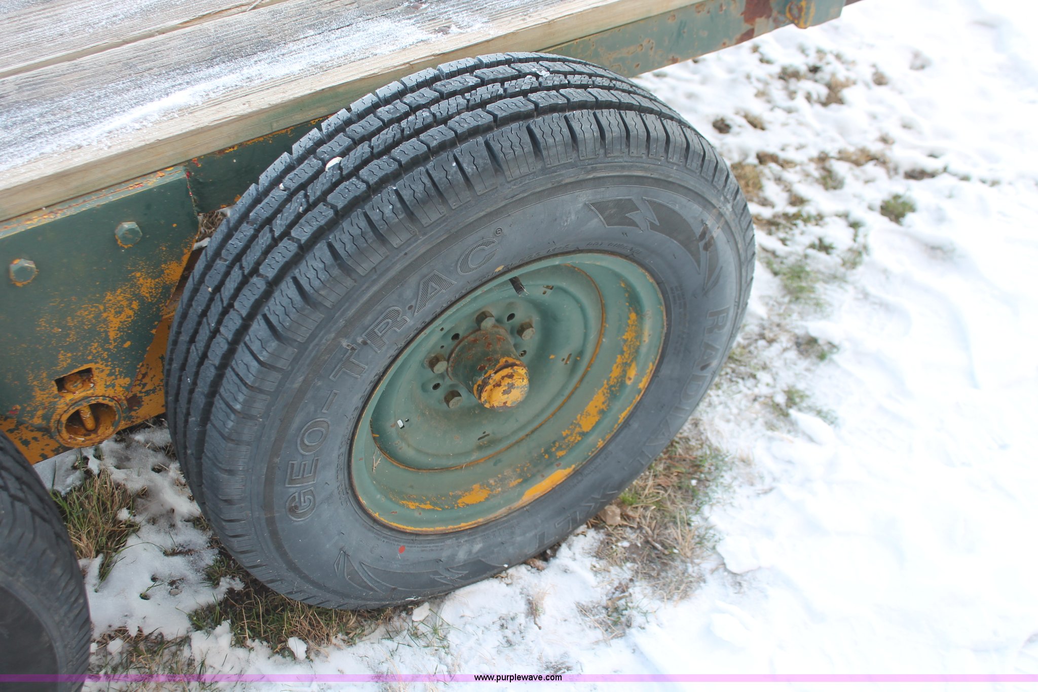 Purple Wave is selling a used Car or Utility Trailer in Kansas. This item is a 1994 shop built tandem axle trailer with the following: 160"L x 72"W deck, 40"L neck, 200" overall length, 2" x 10" wood deck, Steel frame, Recessed clevis tie downs, 2" ball, Six prong wiring, P235/75R15 tires, Serial 115281