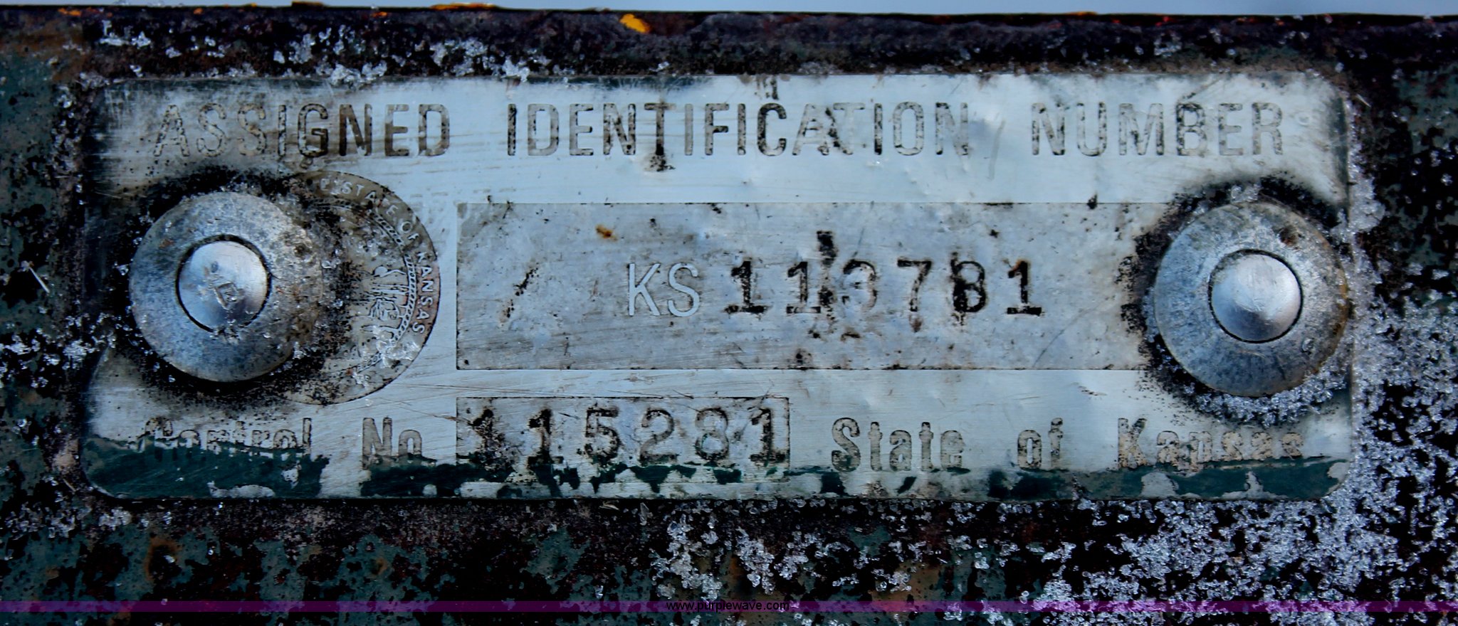 1994 shop built tandem axle trailer. 160"L x 72"W deck, 40"L neck, 200" overall length, 2" x 10" wood deck, Steel frame, Recessed clevis tie downs, 2" ball, Six prong wiring, P235/75R15 tires, Serial 115281. Title distribution may be delayed up to 14 days from verification of funds. KS113781. Shipping quotes available. KSU-Salina Facilities. 2310 Centennial Road. Salina, KS 67401