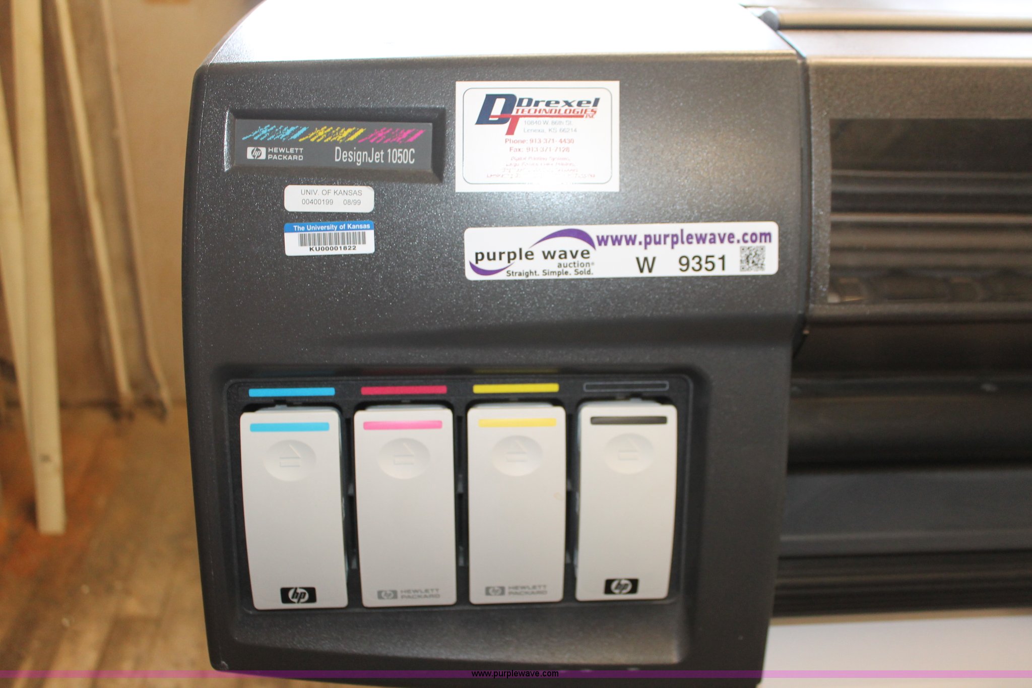 Purple Wave is selling a used Electronics in Kansas. This item is a HP Designjet 1050C large format printer with the following: HP Designjet 1050C large format printer. See the detailed specifications for more information. Shipping quotes available. University of Kansas. 1503 Sunflower. Lawrence, KS 66045