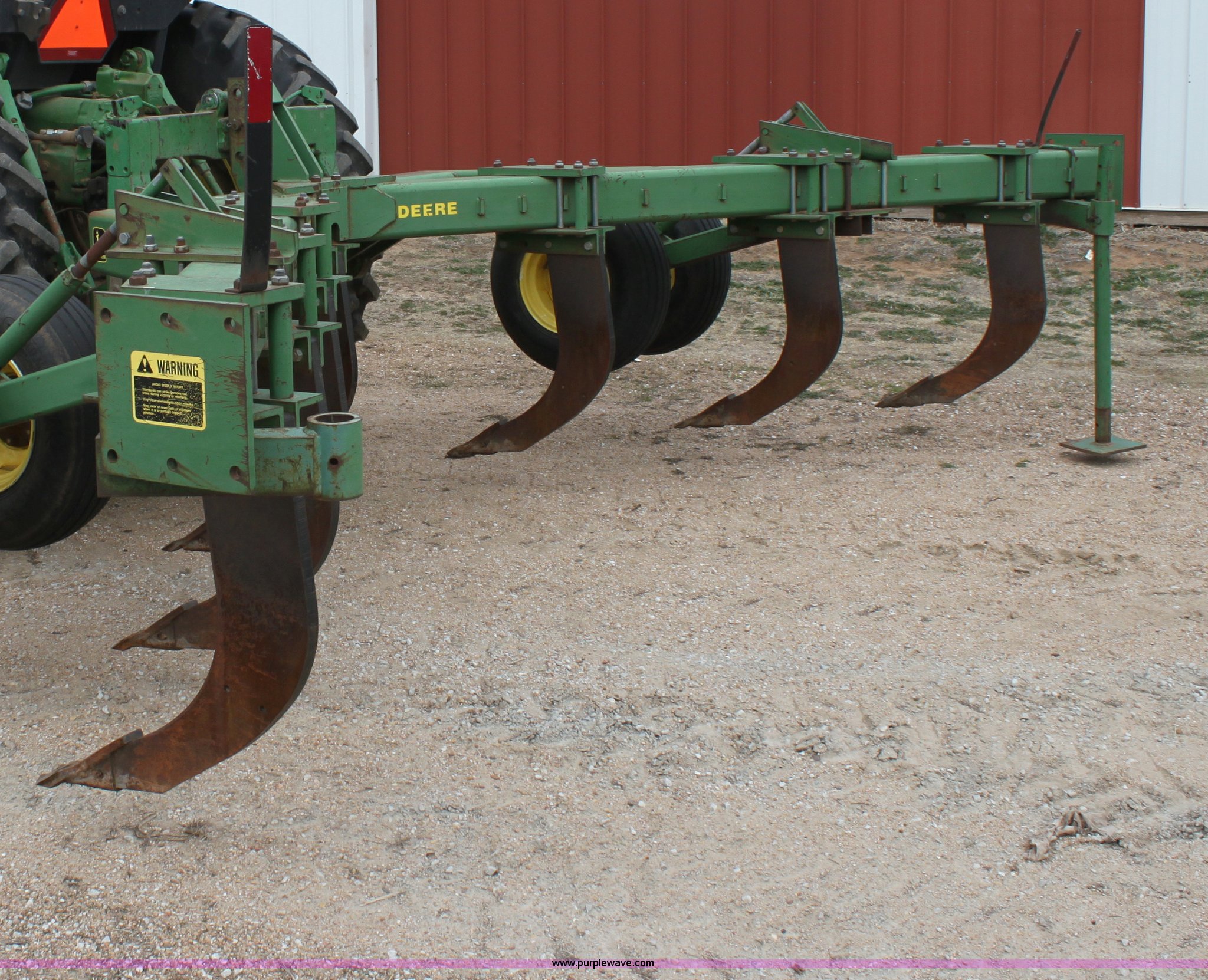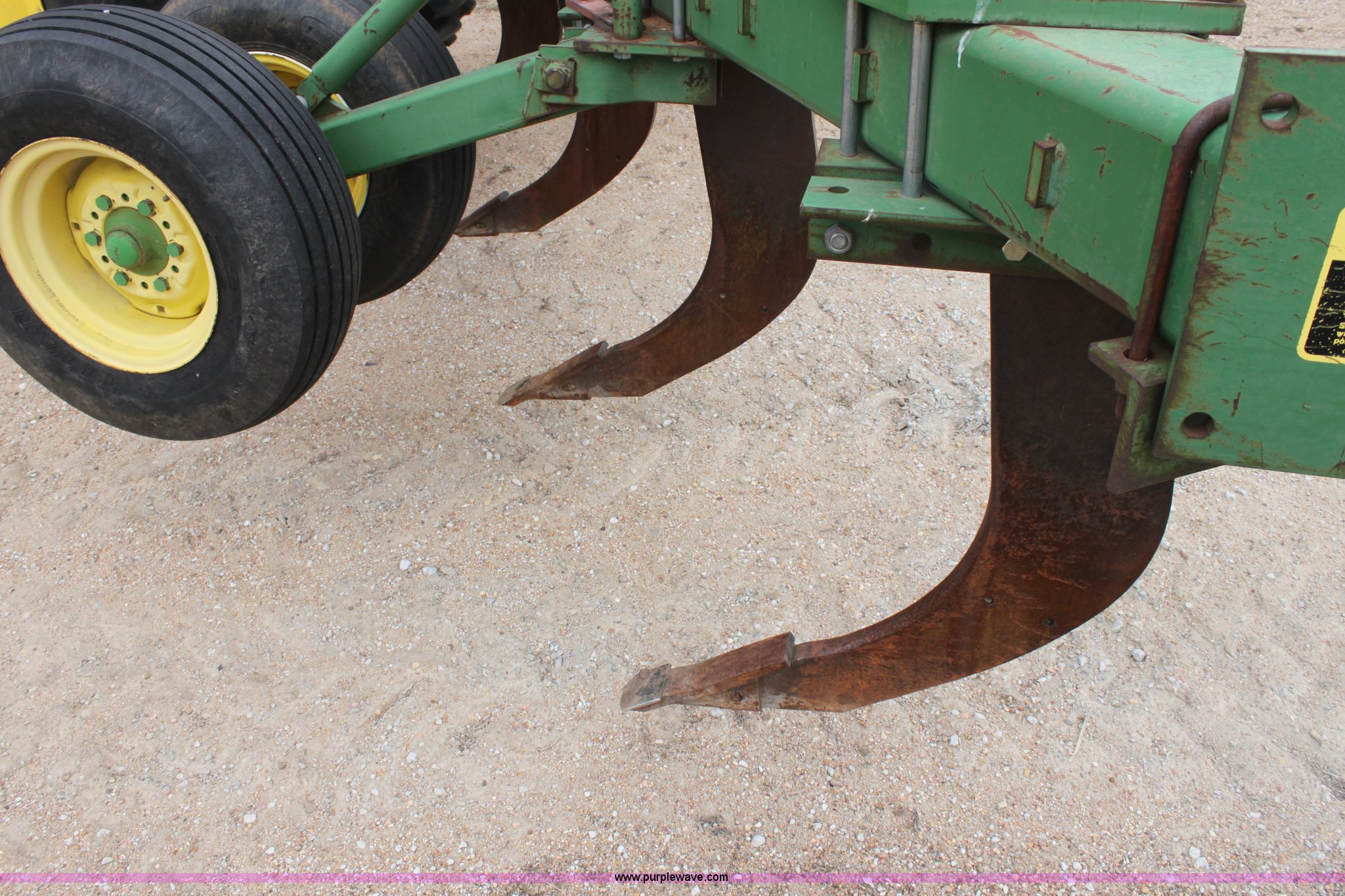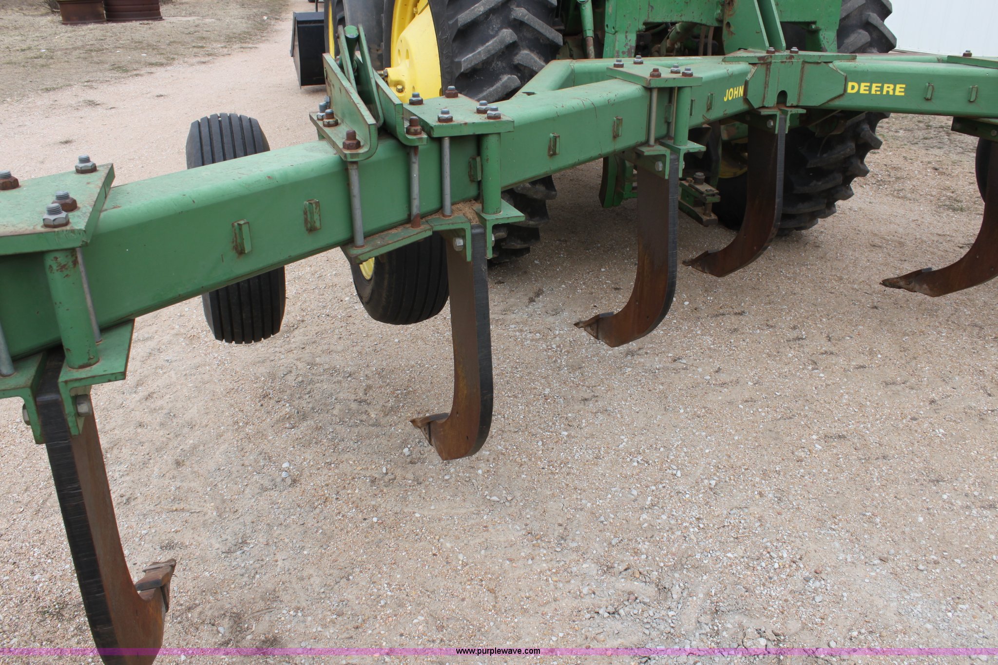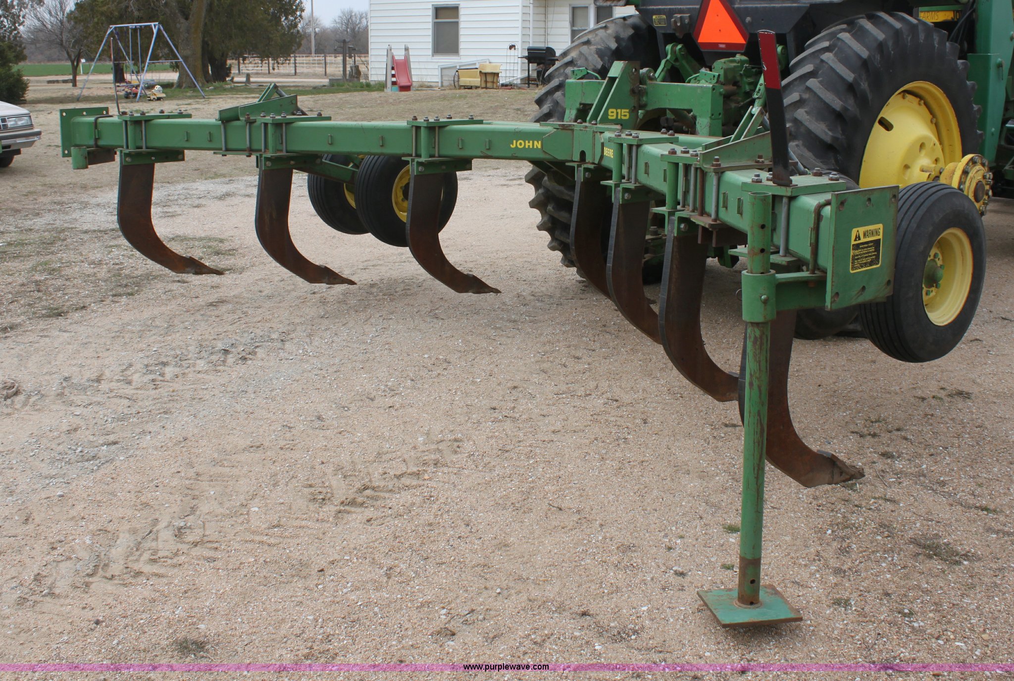 Purple Wave is selling a used Ripper in Kansas. This item is a John Deere 915 seven shank ripper with the following: Three point, 9.5SL-14SL tires, Serial N0891SX001697
