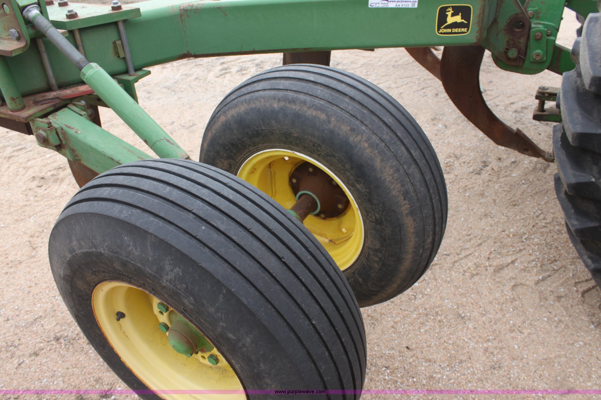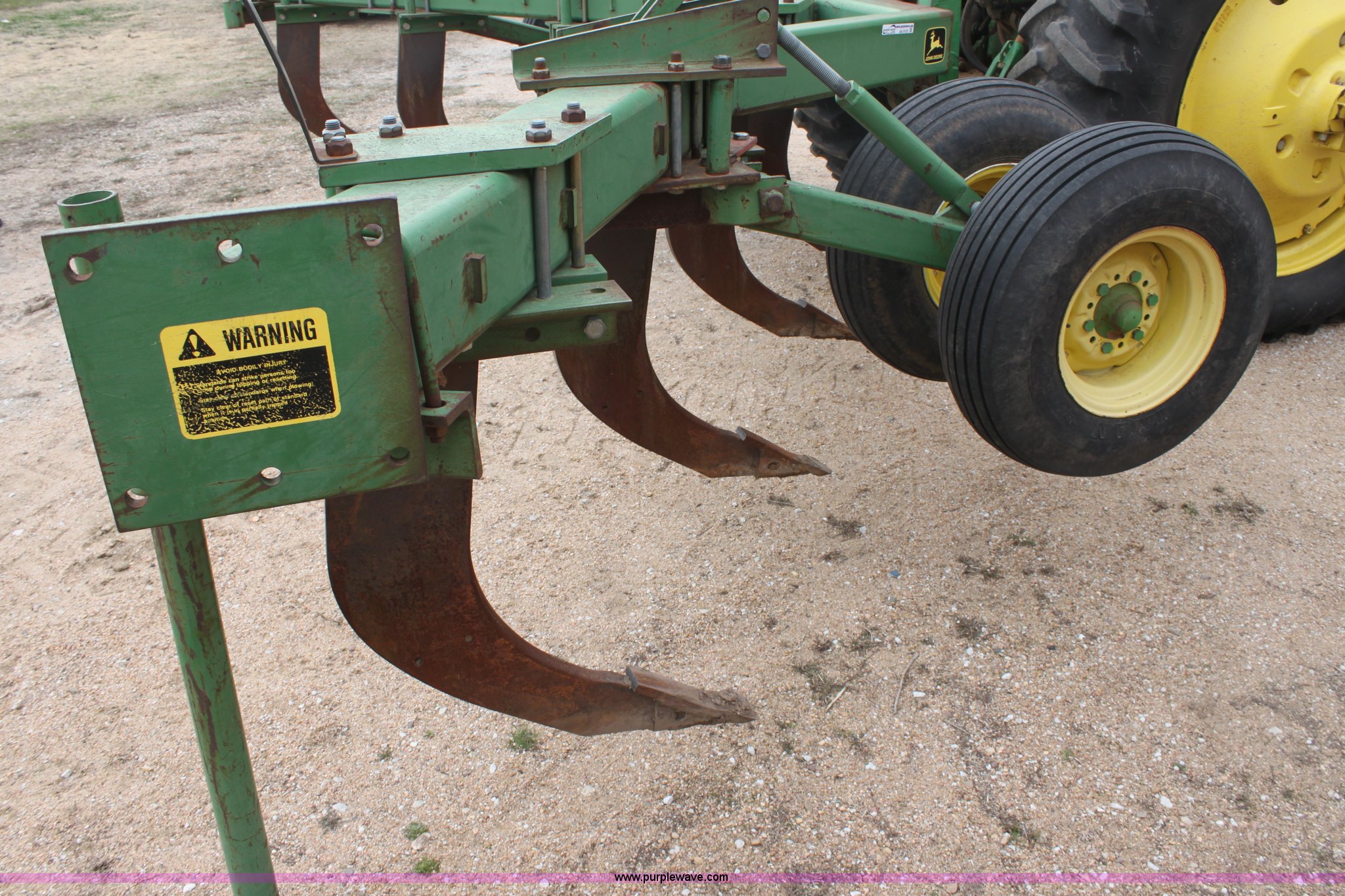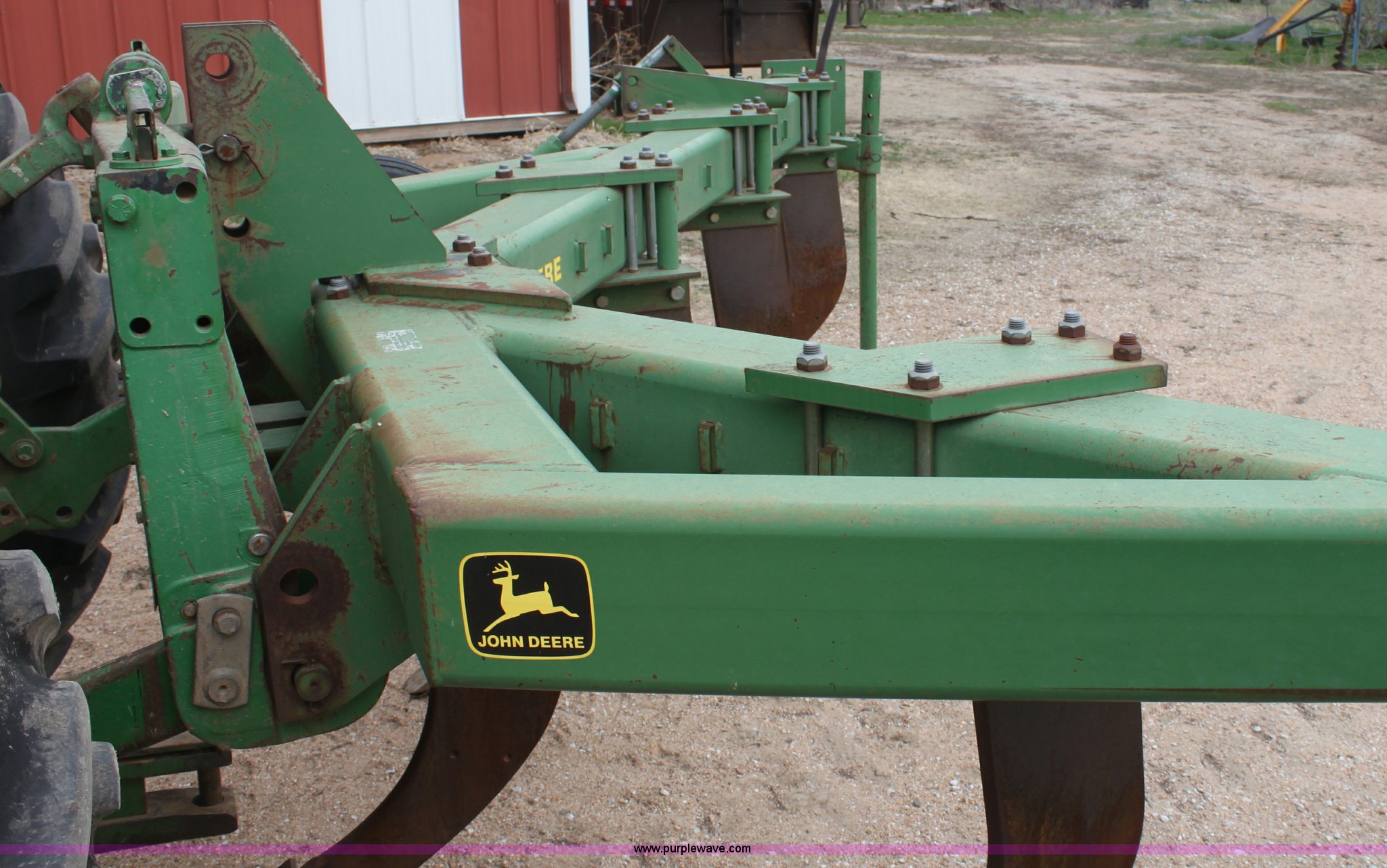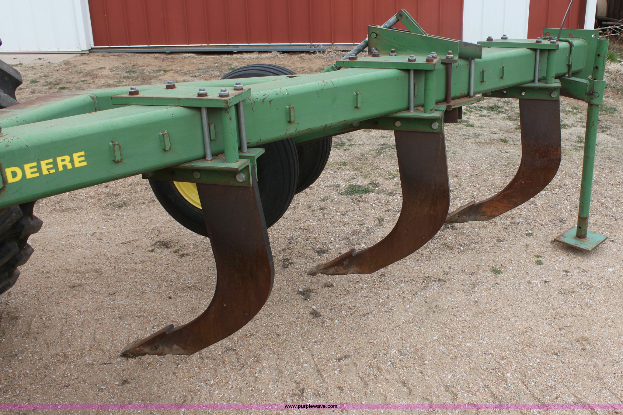 Purple Wave is selling a used Ripper in Kansas. This item is a John Deere 915 seven shank ripper with the following: Three point, 9.5SL-14SL tires, Serial N0891SX001697
