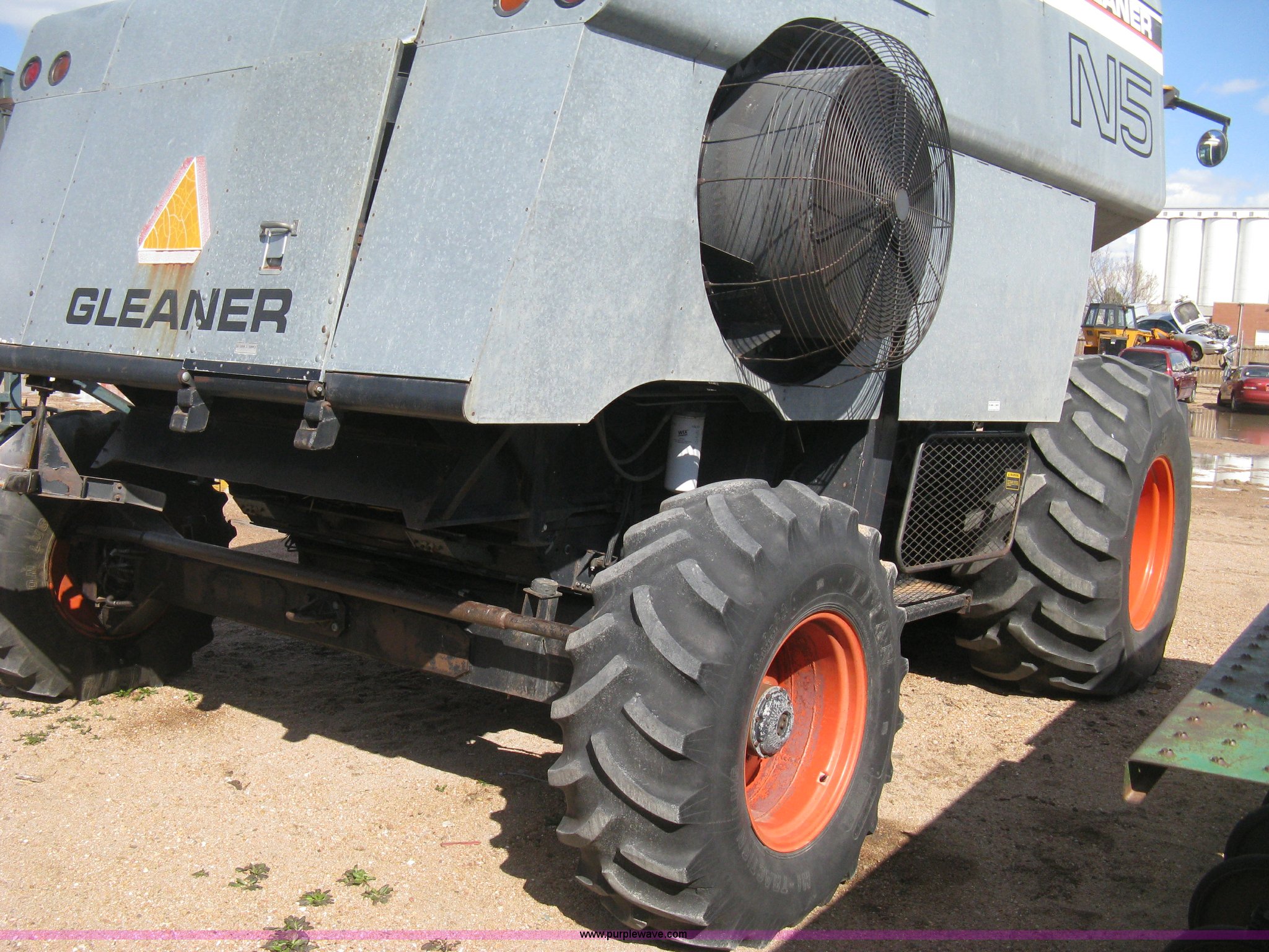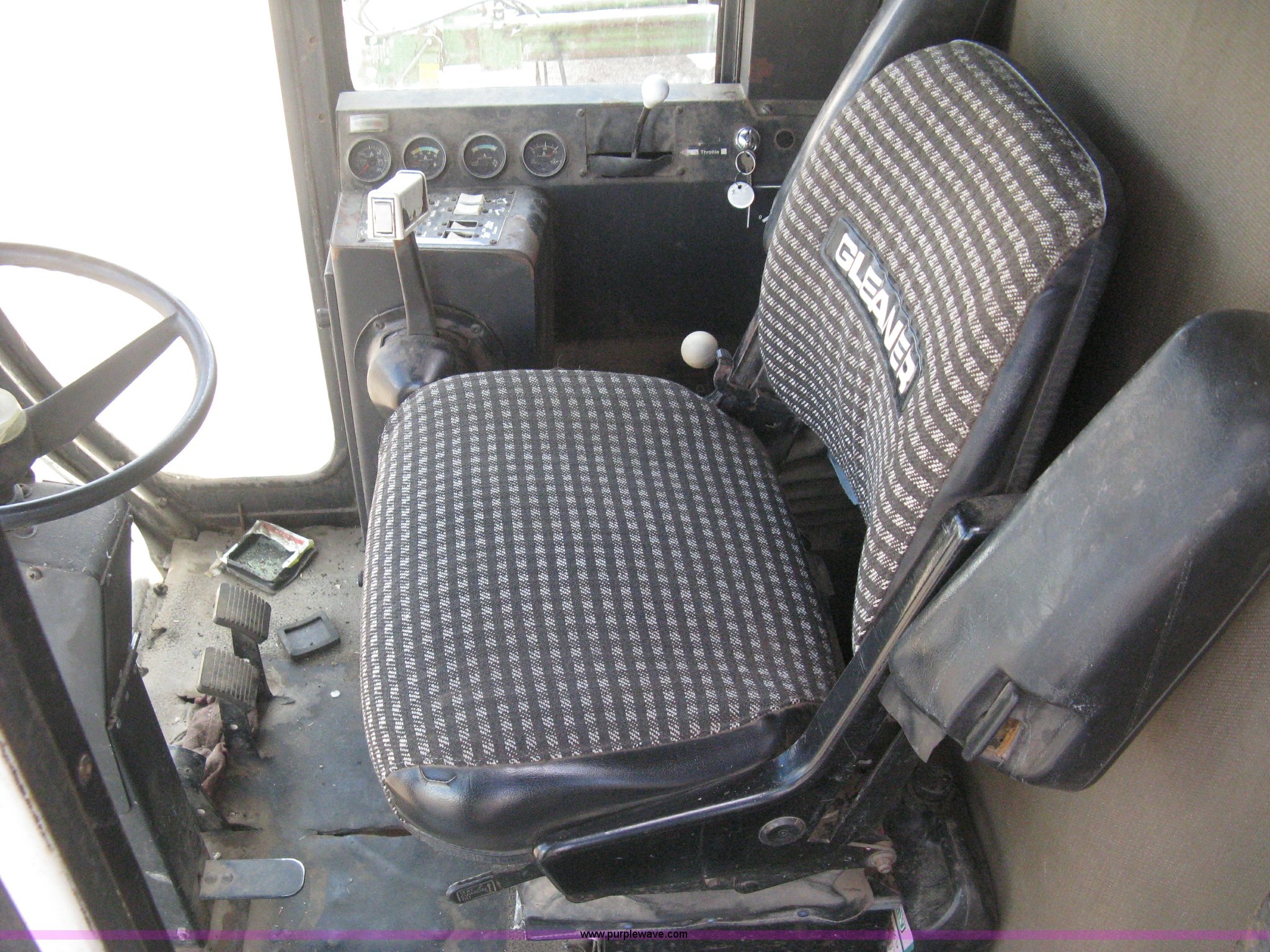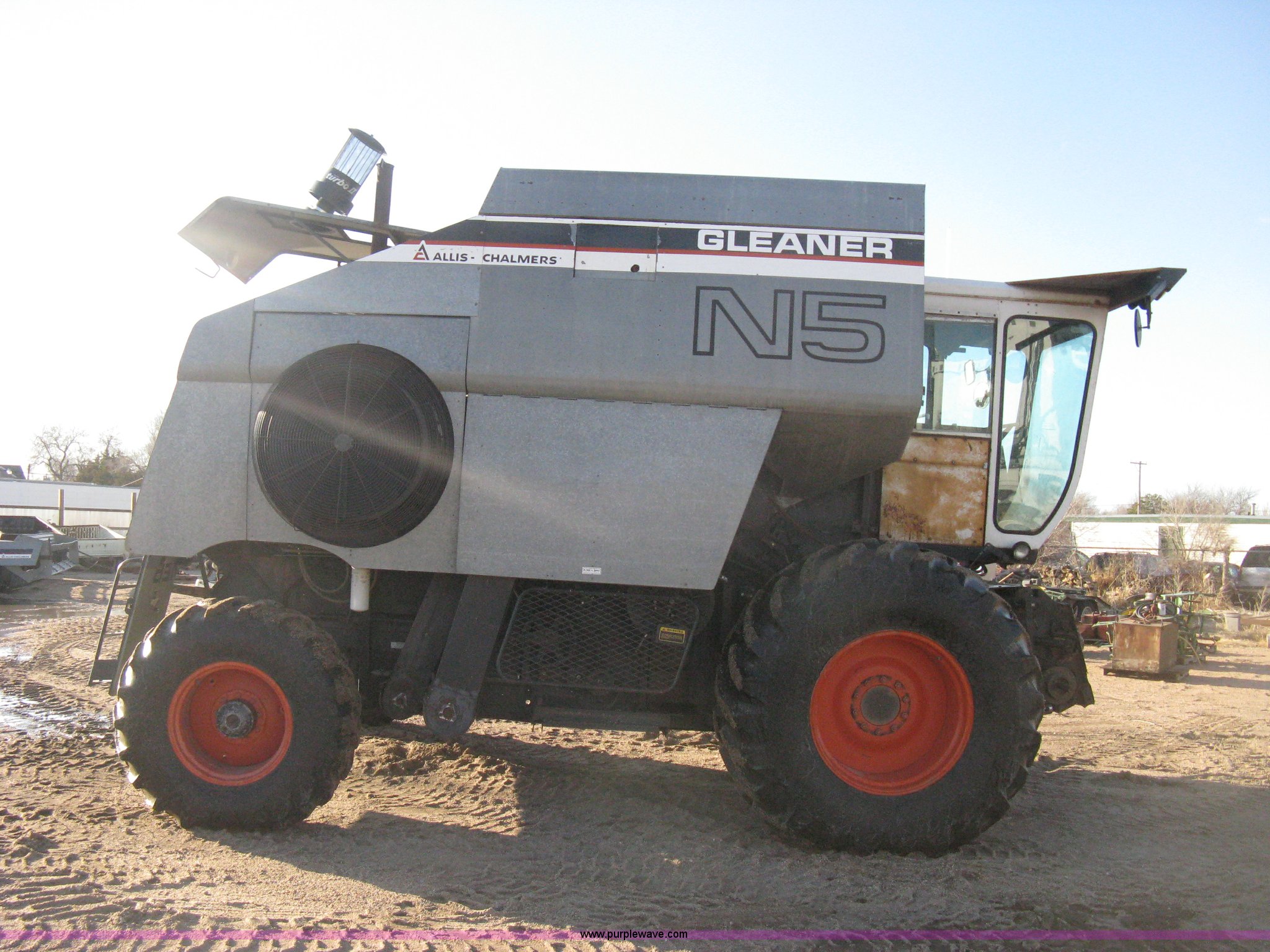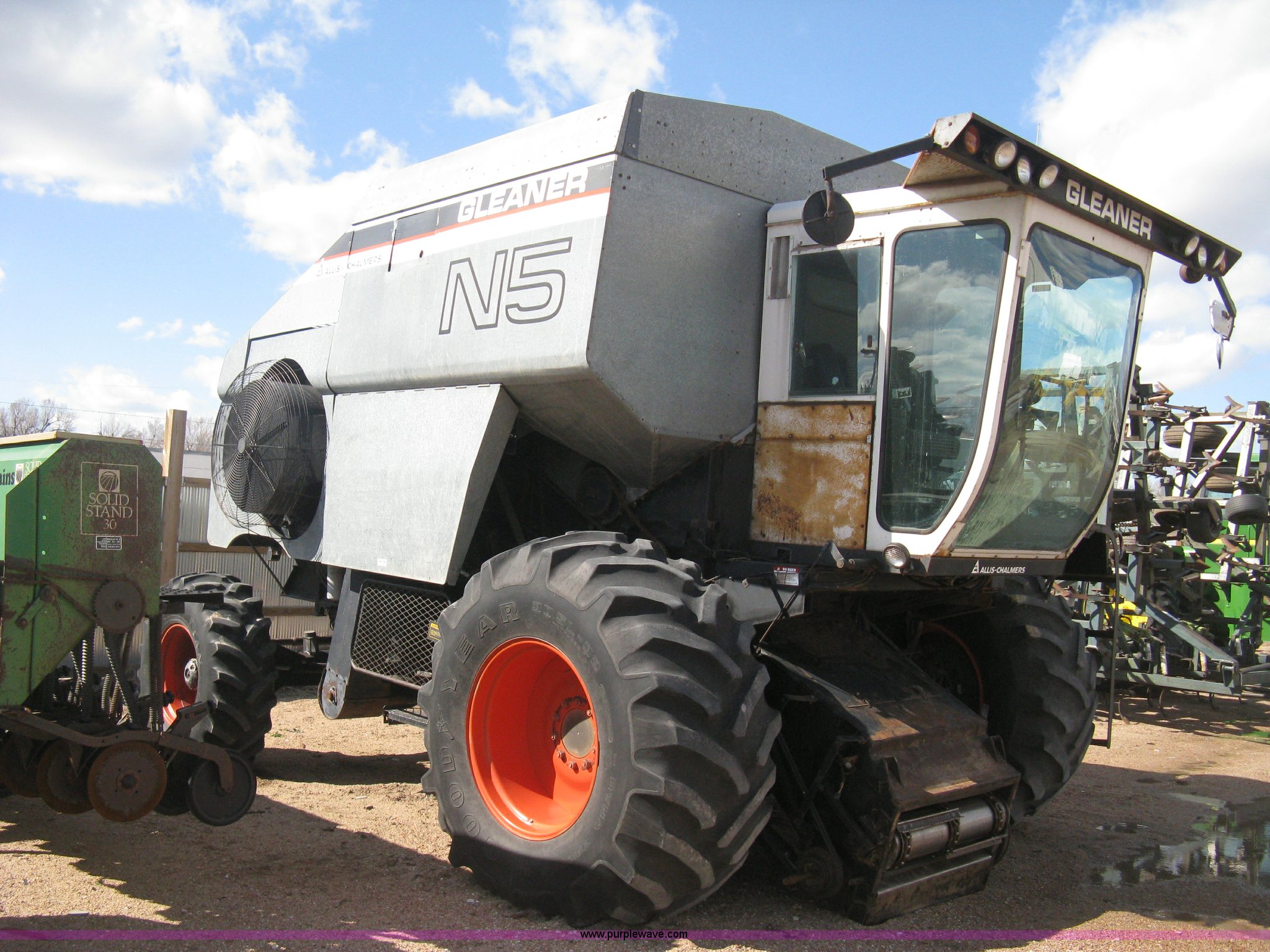 Purple Wave is selling a used Combine in Kansas. This item is a Gleaner N5 combine with the following: 2,313 engine hours on meter, 1,031 separator hours on meter, Six cylinder diesel engine, Hydrostatic transmission, Suspension seat, Work lights, 30.5L-32 drive tires, 16.9-24 rear tires, Broadcast straw spreader, Approx 200 bushel capacity, Serial N5G011434H