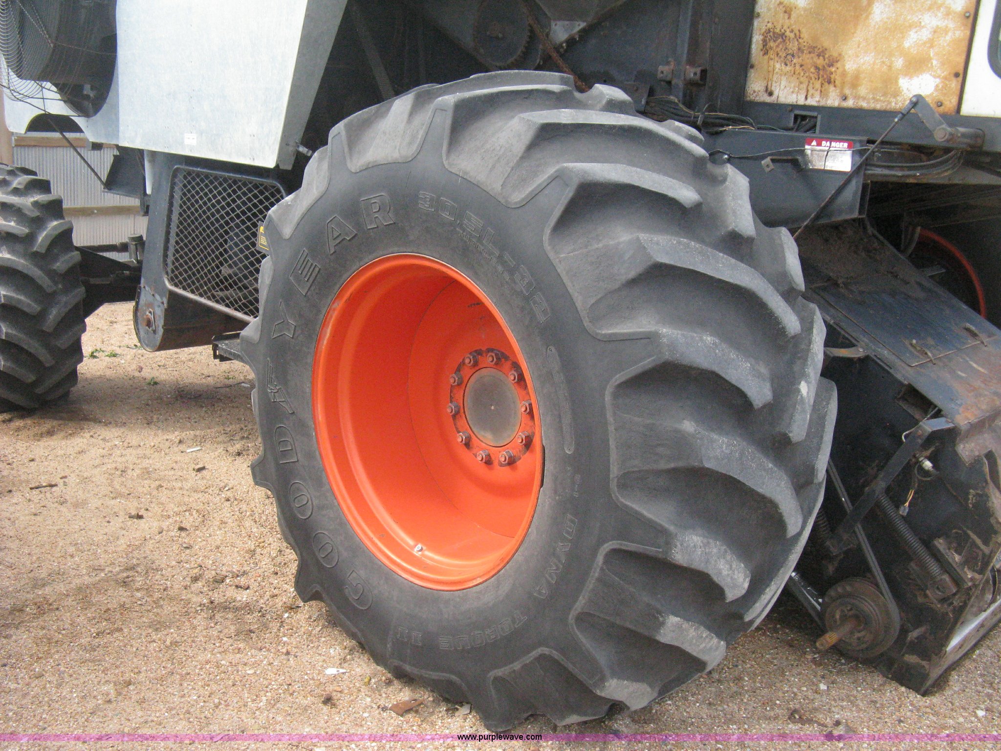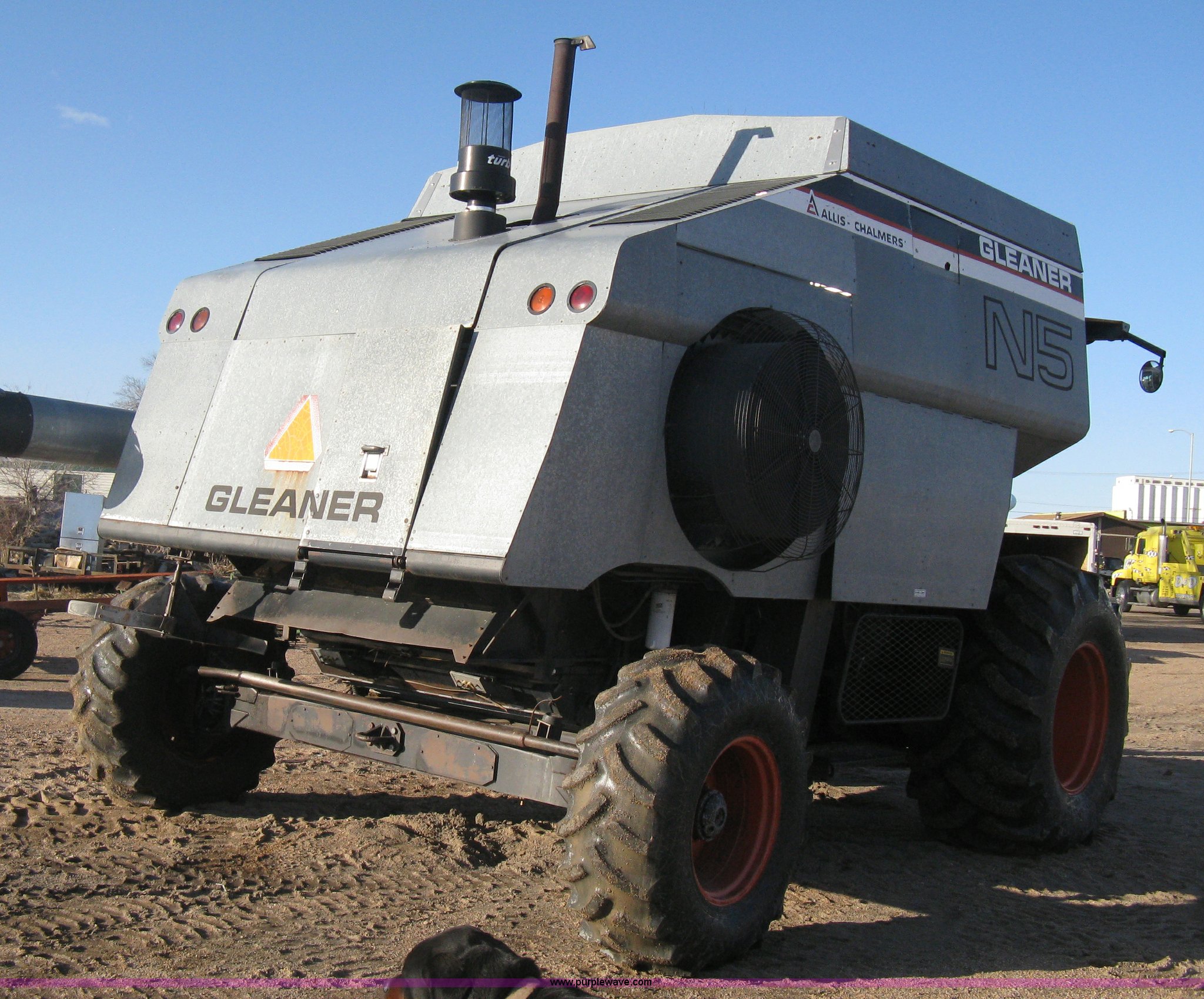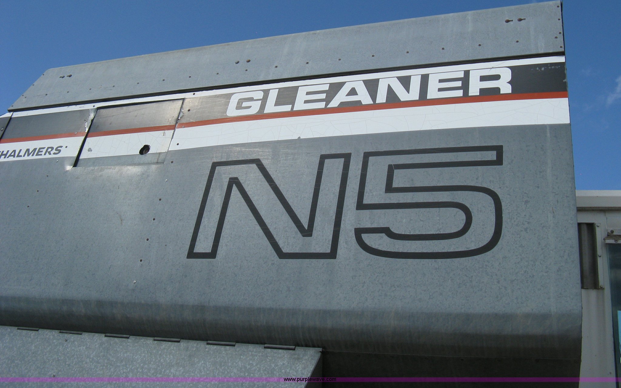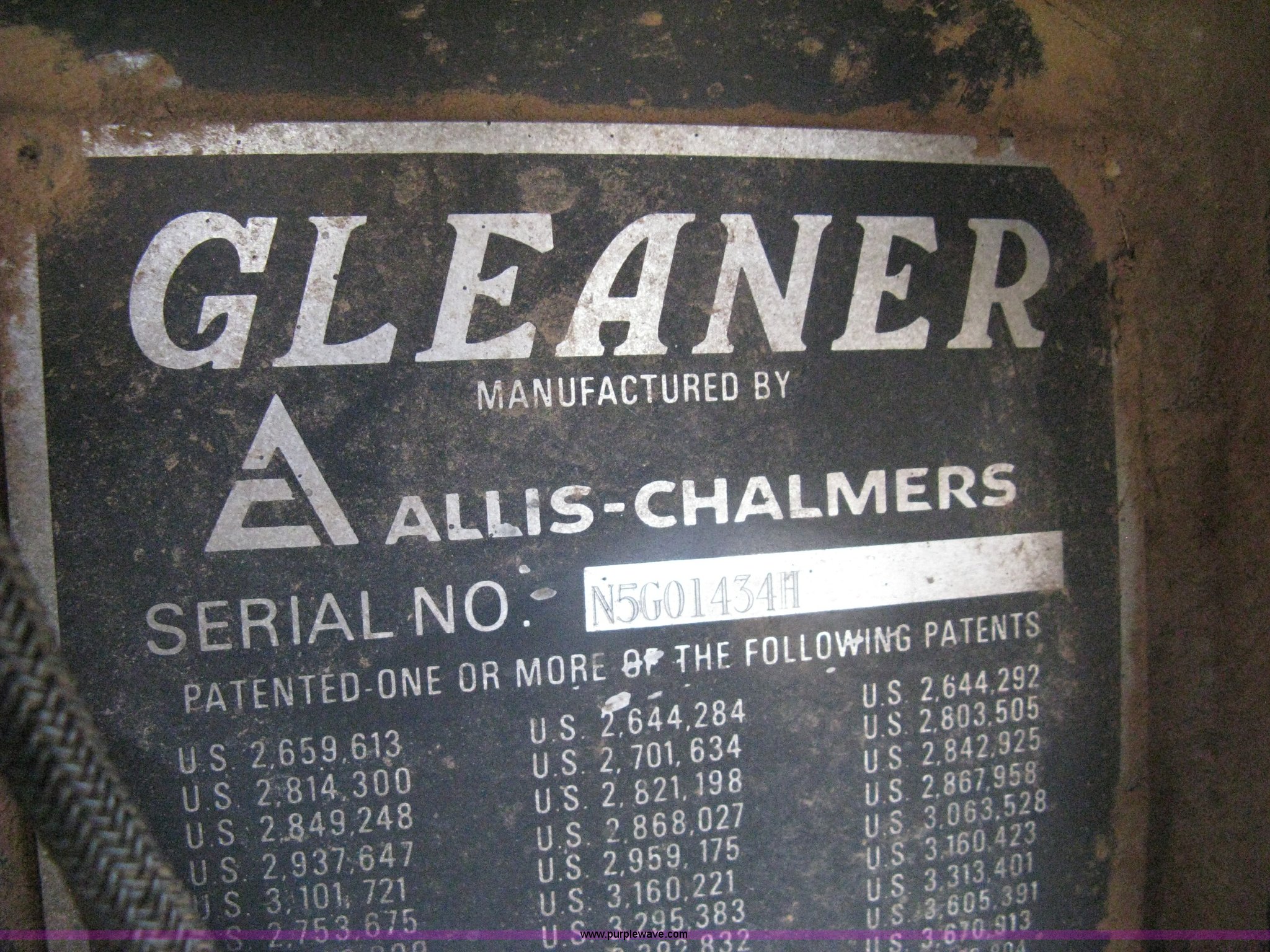 Purple Wave is selling a used Combine in Kansas. This item is a Gleaner N5 combine with the following: 2,313 engine hours on meter, 1,031 separator hours on meter, Six cylinder diesel engine, Hydrostatic transmission, Suspension seat, Work lights, 30.5L-32 drive tires, 16.9-24 rear tires, Broadcast straw spreader, Approx 200 bushel capacity, Serial N5G011434H