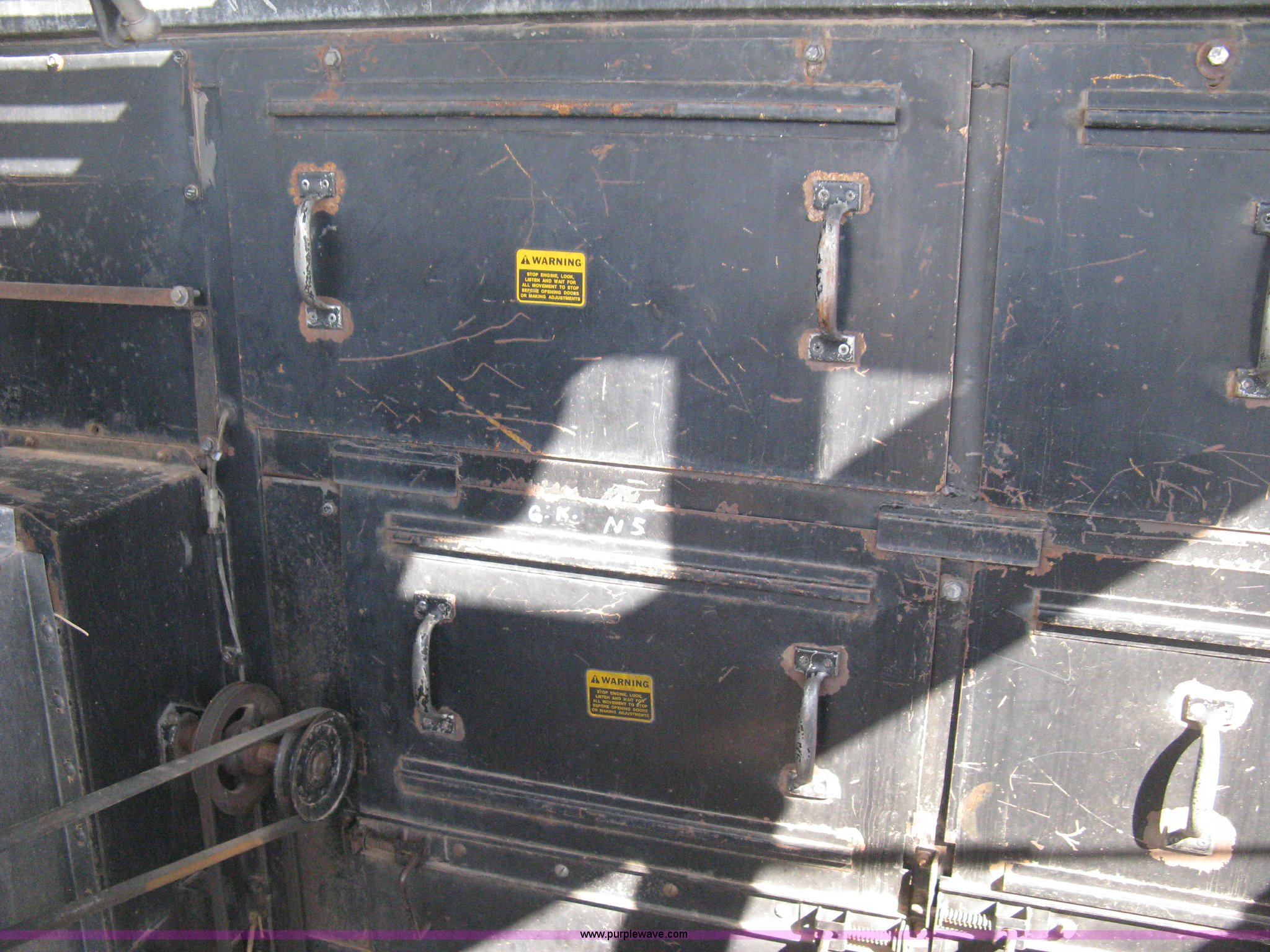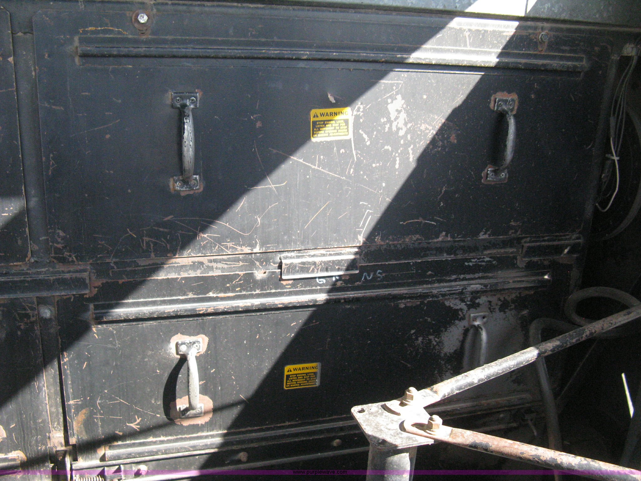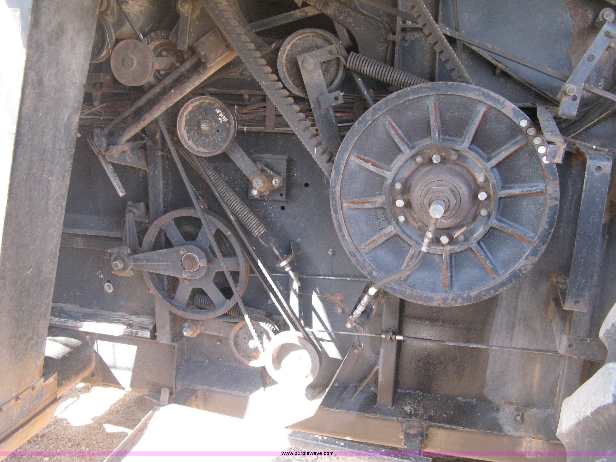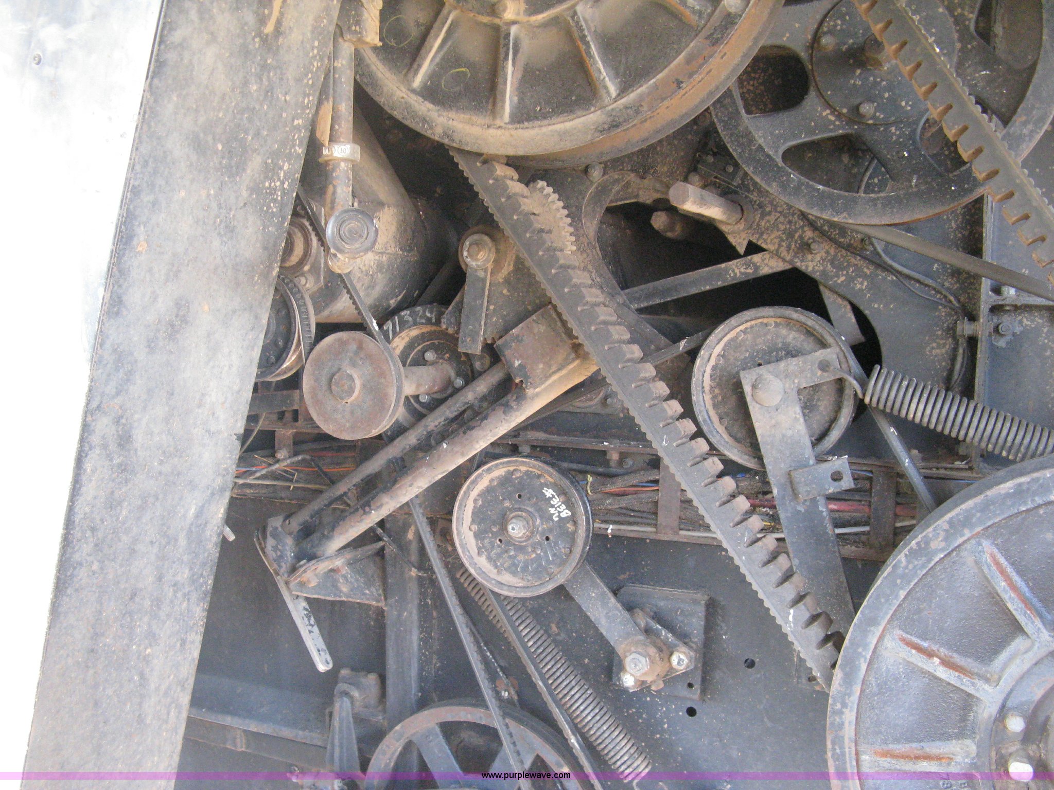 Purple Wave is selling a used Combine in Kansas. This item is a Gleaner N5 combine with the following: 2,313 engine hours on meter, 1,031 separator hours on meter, Six cylinder diesel engine, Hydrostatic transmission, Suspension seat, Work lights, 30.5L-32 drive tires, 16.9-24 rear tires, Broadcast straw spreader, Approx 200 bushel capacity, Serial N5G011434H