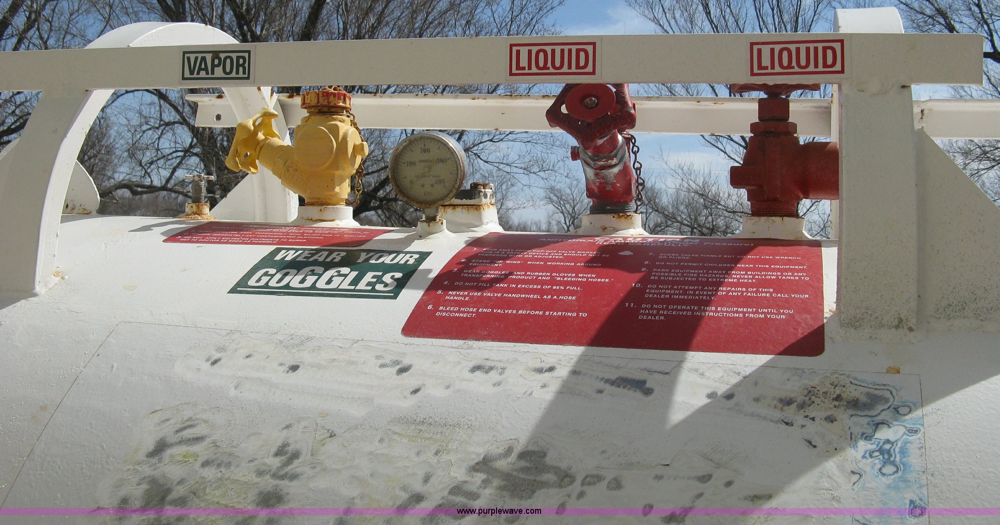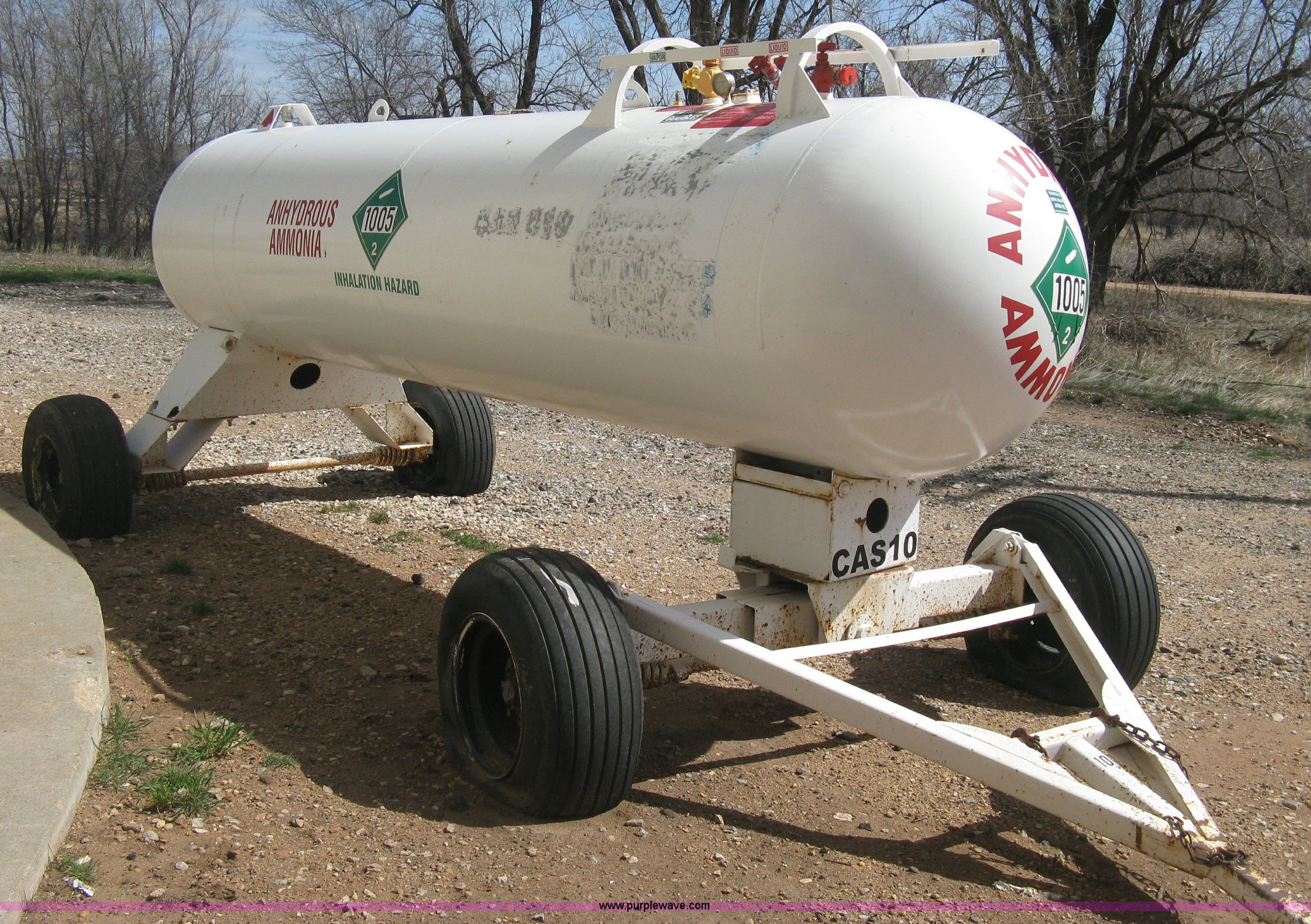 Purple Wave is selling a used Applicator Attach. in Kansas. This item is a Anhydrous ammonia tank on running gear with the following: 1,000 gallon capacity, Pin hitch tongue, Six lug wheels, 11L-15 tires, Four flat tires, Not for commercial use