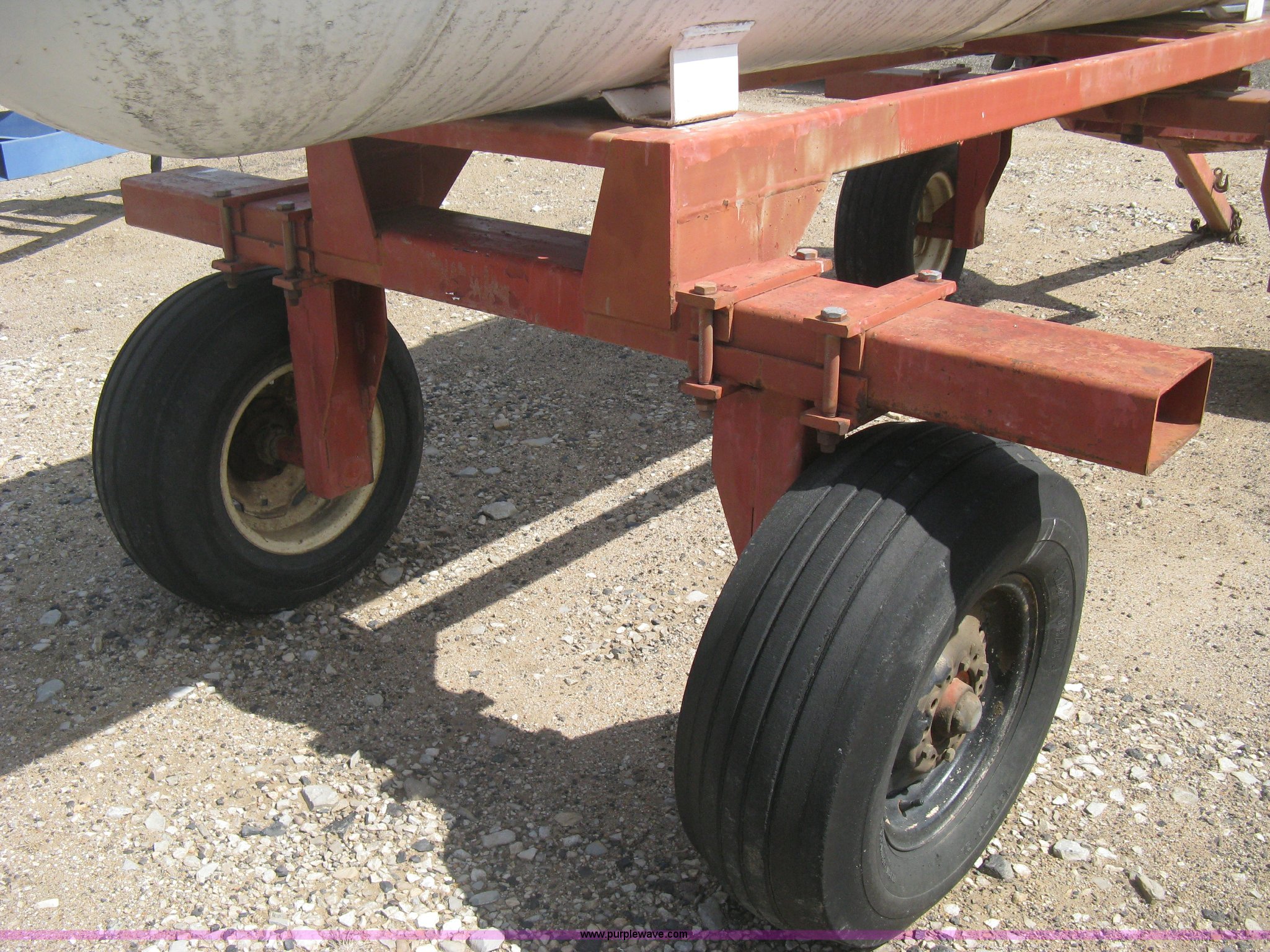 Purple Wave is selling a used Applicator Attach. in Kansas. This item is a Anhydrous ammonia tank with the following: 1,000 gallon capacity, AG system running gear, Model G107, Serial 1641, Pin hitch, 11L-15 tires, six lug, Missing lug nuts, Tank failed inspection