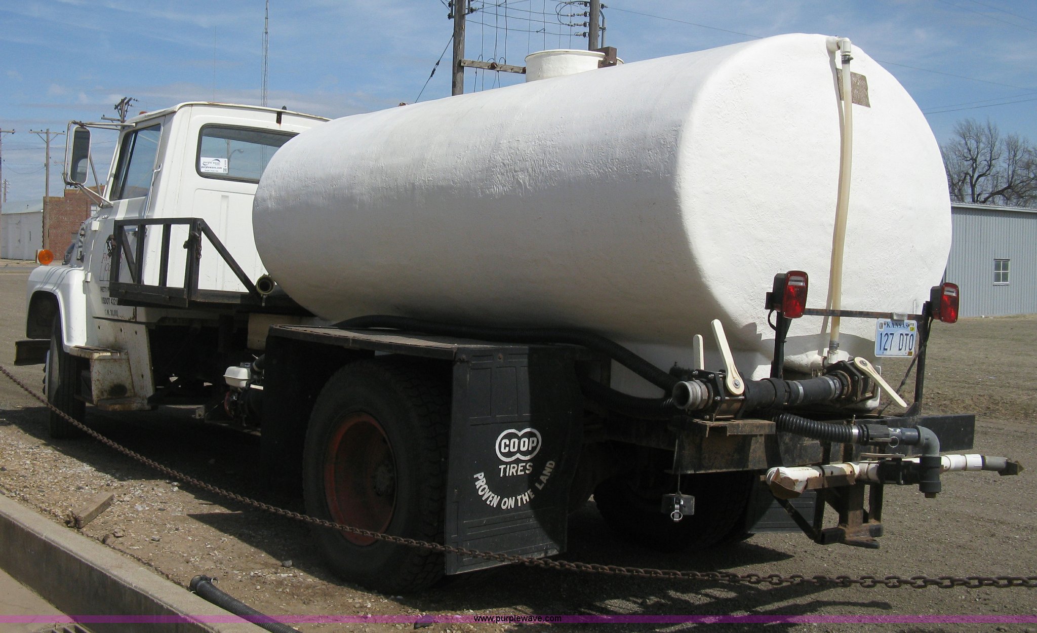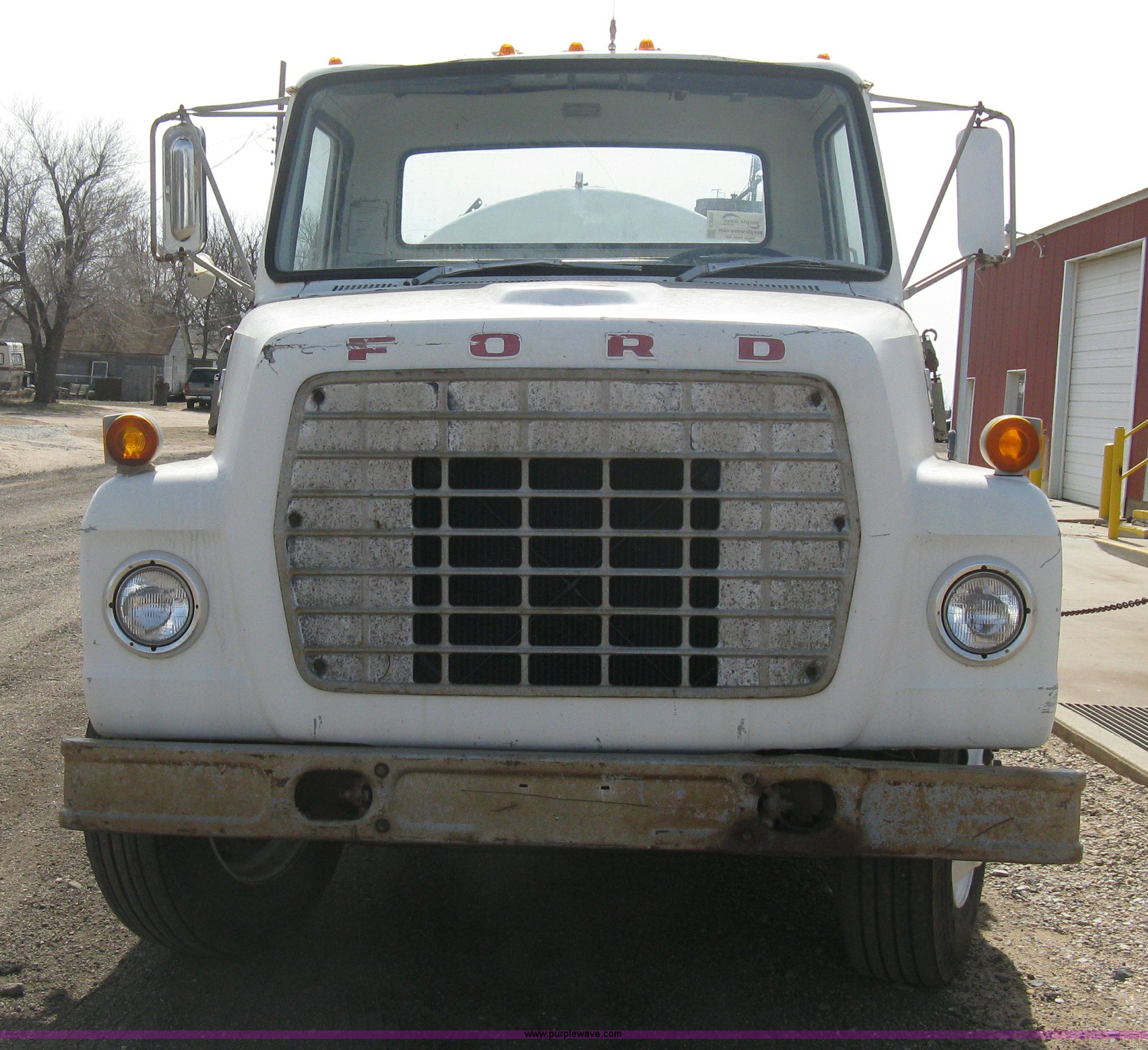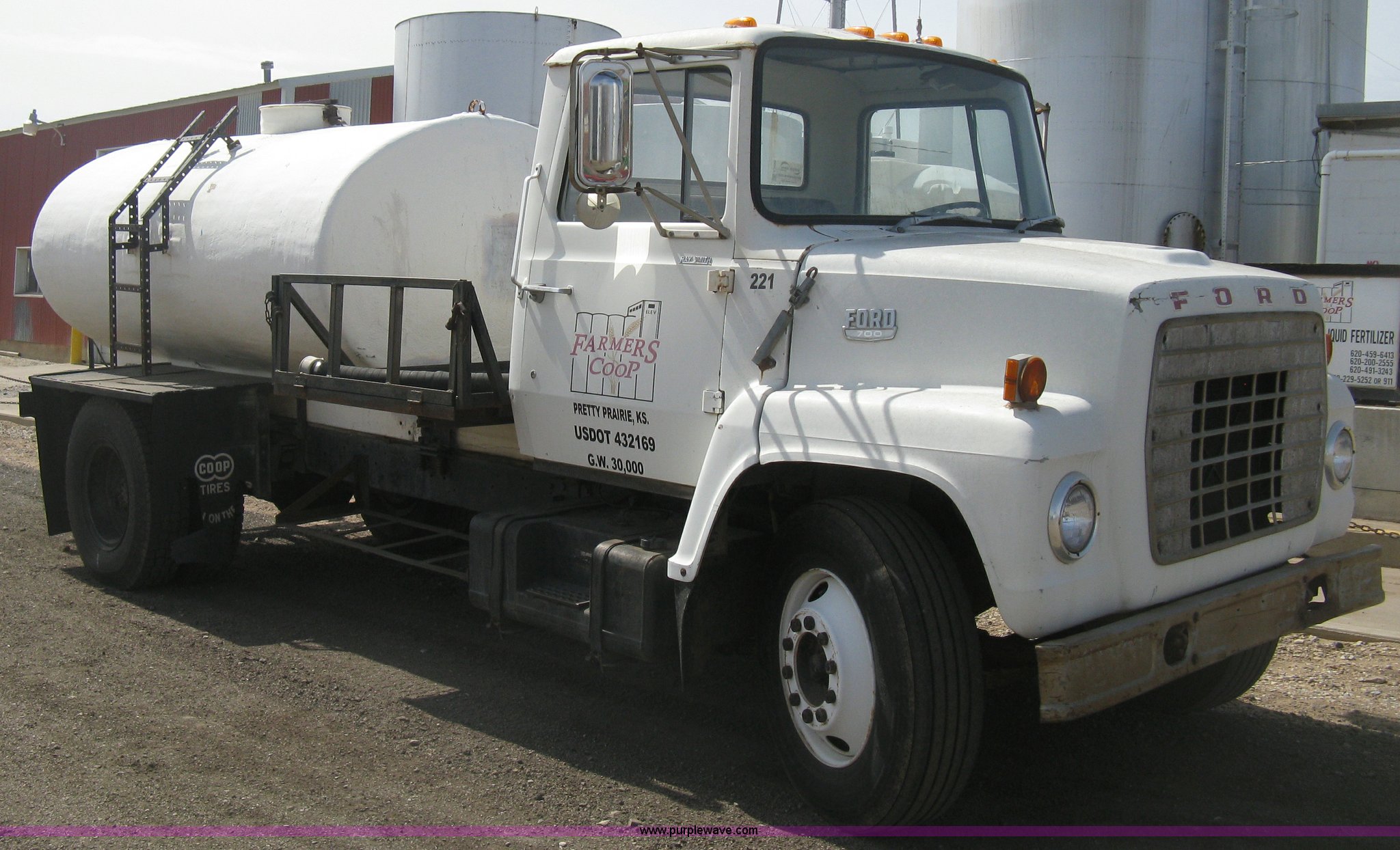 Purple Wave is selling a used Fertilizer or Feed Delivery Truck in Kansas. This item is a 1974 Ford 700 tender truck with the following: 85,152 miles on odometer, Not Actual Mileage, Gas engine, Five speed manual transmission, Two speed axle, Hi range inoperable, Heat, Manual windows and locks, Vinyl interior, Pin hitch, Fiberglass tender tank, Approx. 1,800 gallon capacity, Hose basket with drop down side gates, 184" wheelbase, 10.00R-20 tires, GVWR 27,000 lbs, Honda pump not included, 2" hose from pump and rear water fan bar not included, Unit# 221
