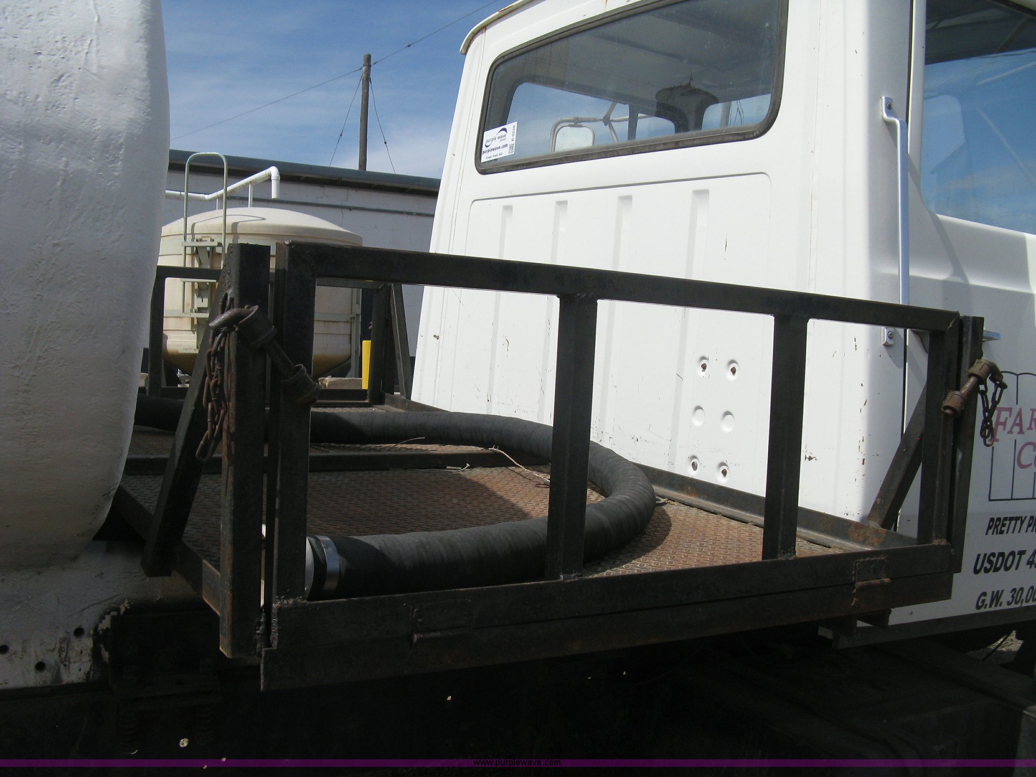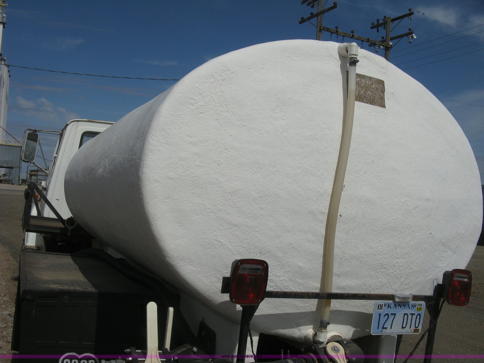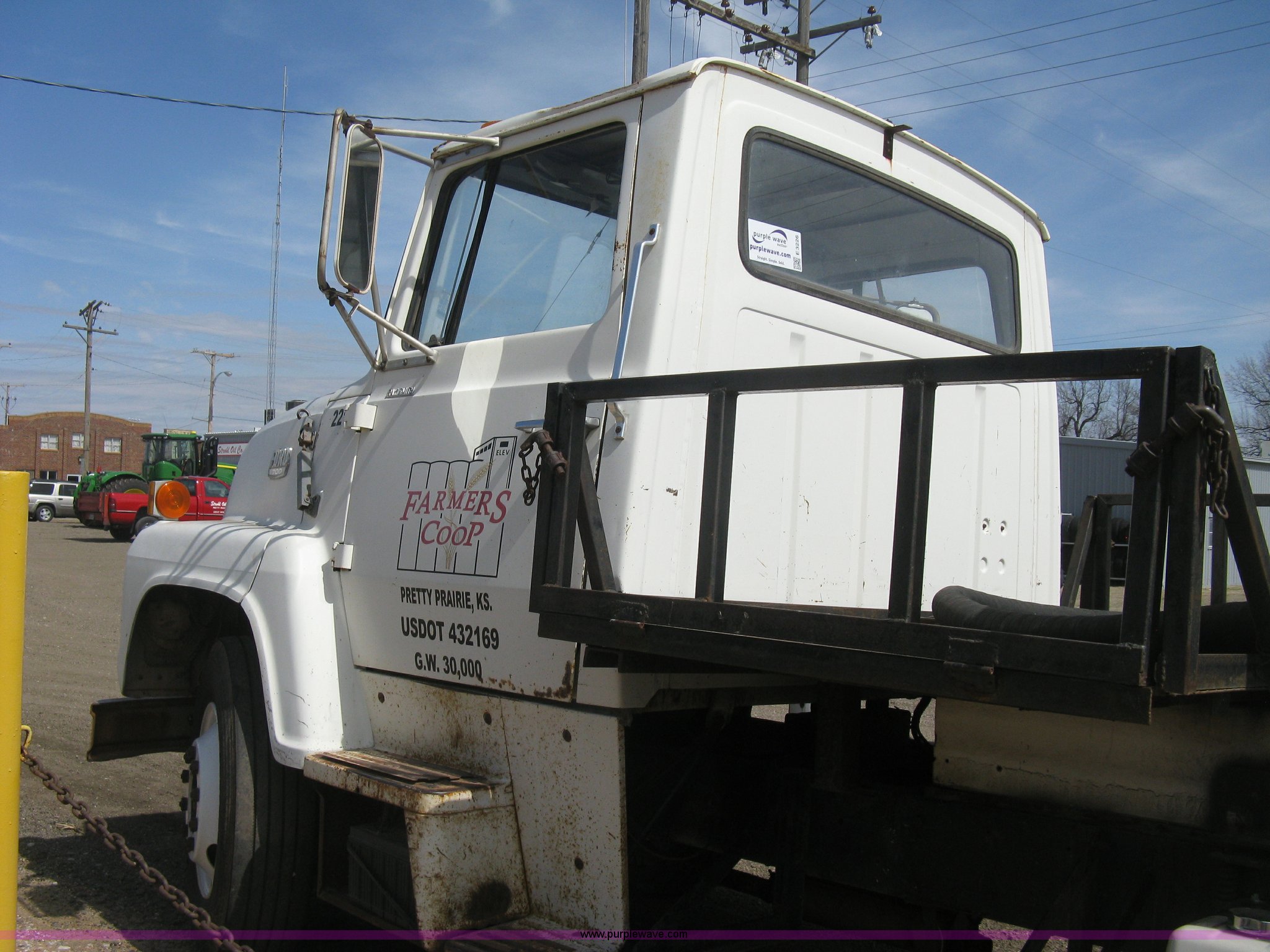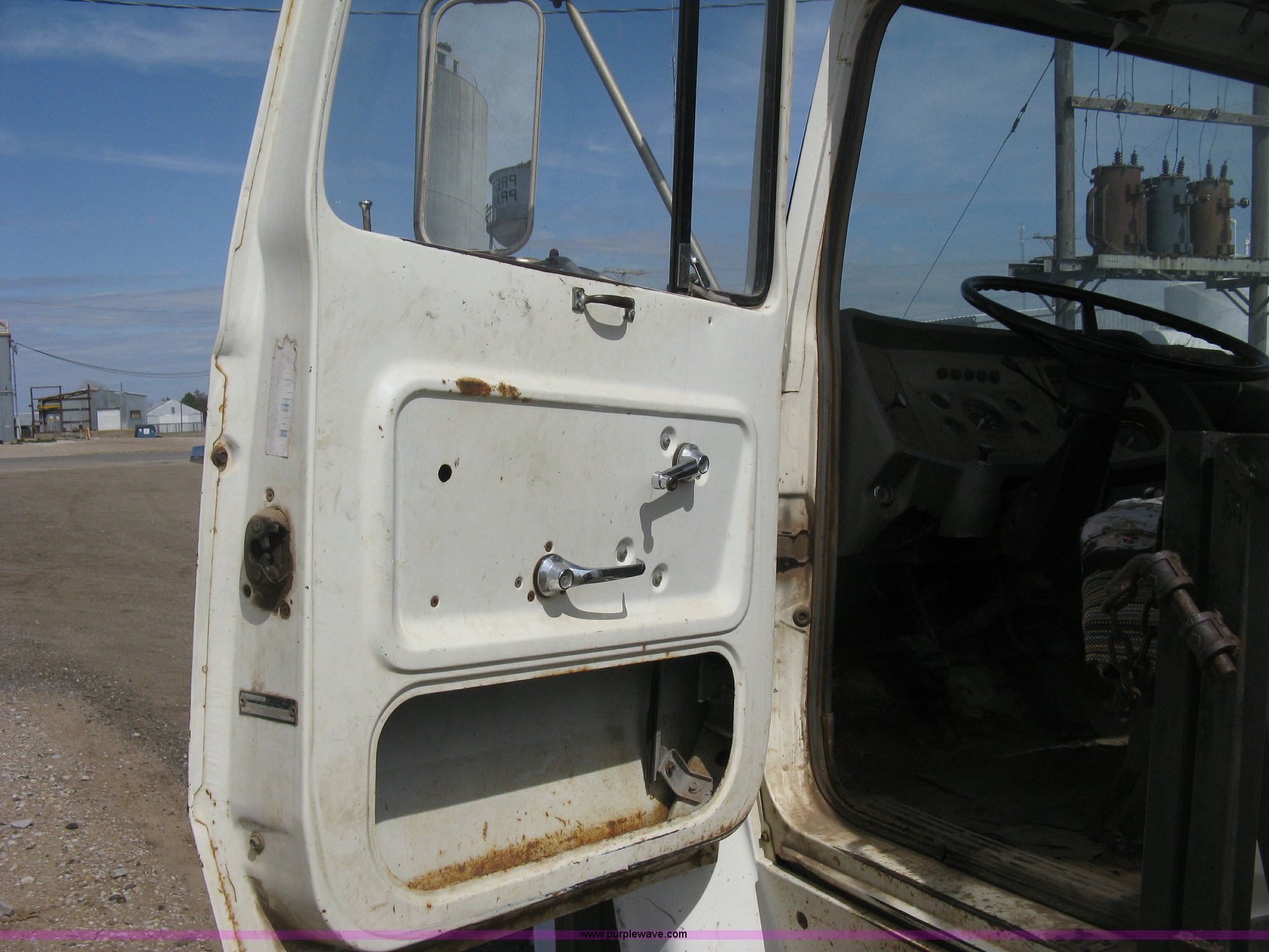 Purple Wave is selling a used Fertilizer or Feed Delivery Truck in Kansas. This item is a 1974 Ford 700 tender truck with the following: 85,152 miles on odometer, Not Actual Mileage, Gas engine, Five speed manual transmission, Two speed axle, Hi range inoperable, Heat, Manual windows and locks, Vinyl interior, Pin hitch, Fiberglass tender tank, Approx. 1,800 gallon capacity, Hose basket with drop down side gates, 184" wheelbase, 10.00R-20 tires, GVWR 27,000 lbs, Honda pump not included, 2" hose from pump and rear water fan bar not included, Unit# 221