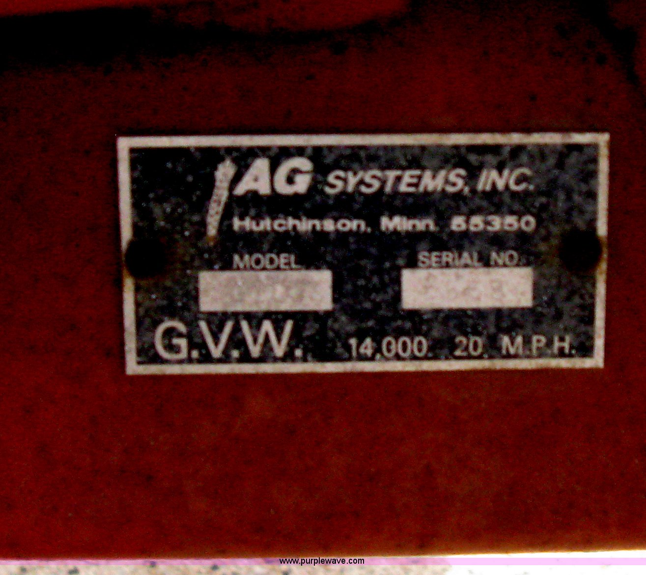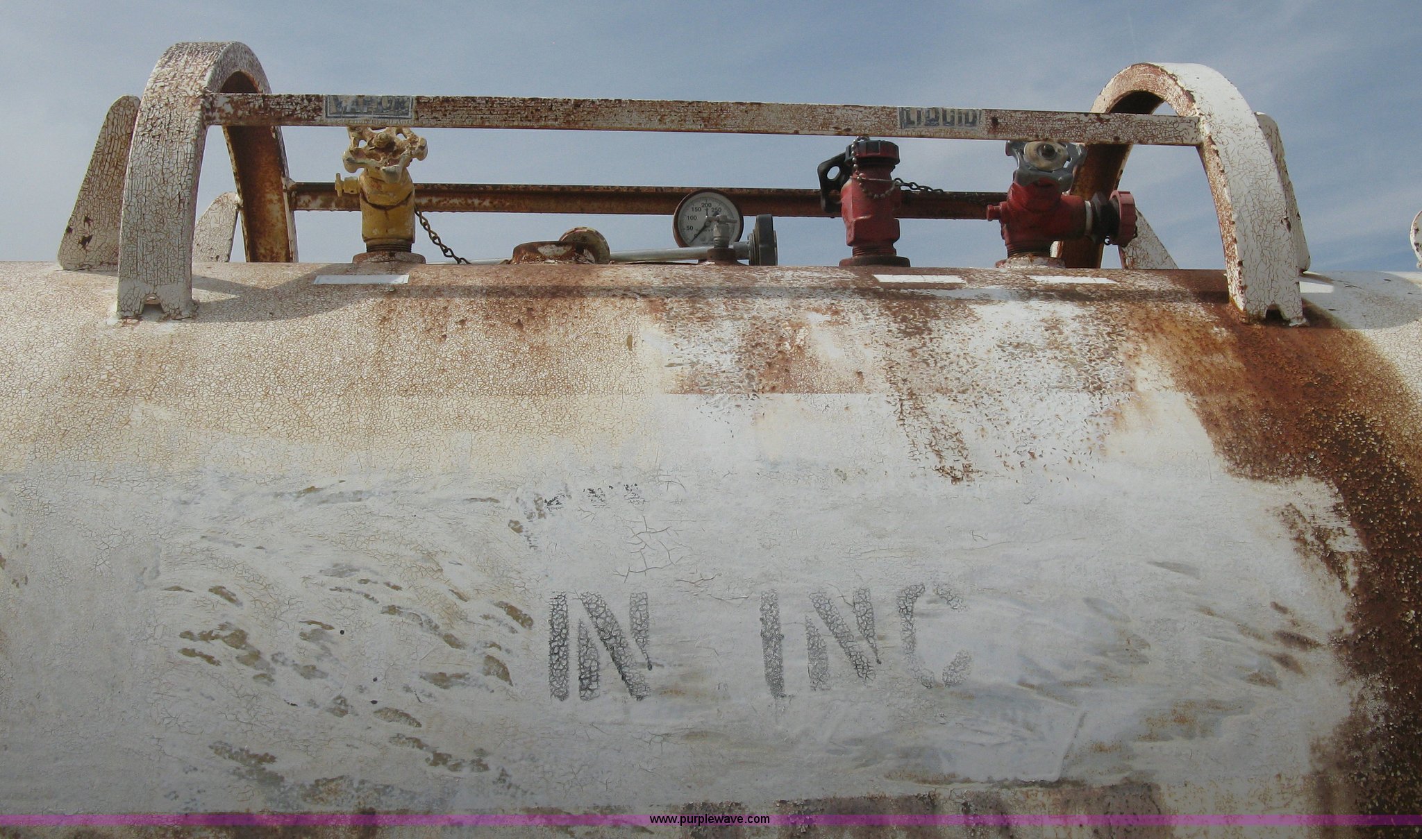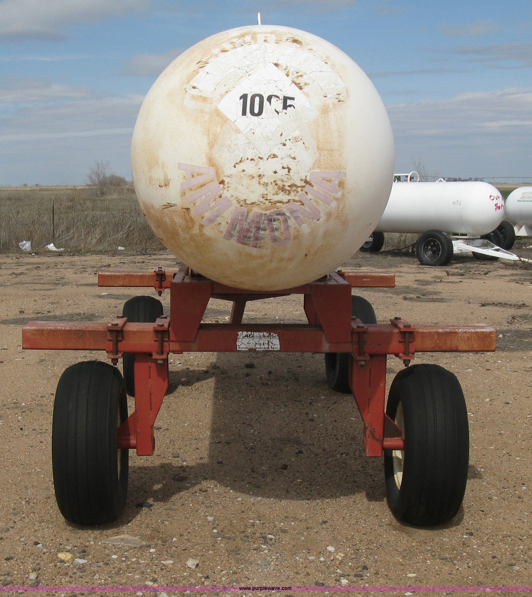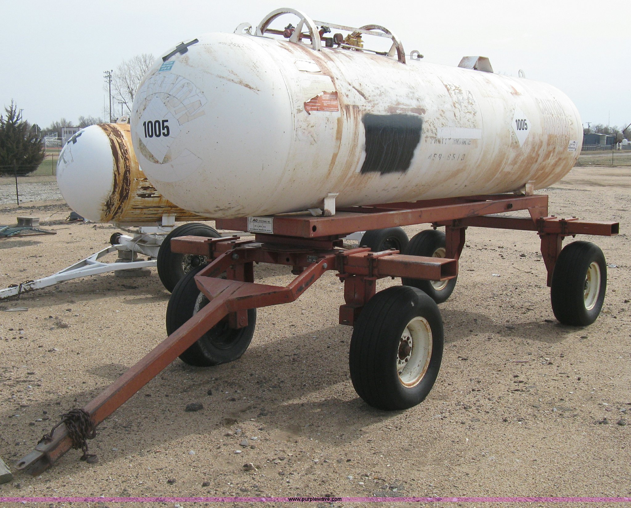 Purple Wave is selling a used Applicator Attach. in Kansas. This item is a Anhydrous ammonia tank with the following: 1,000 gallon capacity, Ag Systems running gear, Model G107, Serial 1668, Pin hitch, 11L-15 tires, six lug, Tank failed inspection