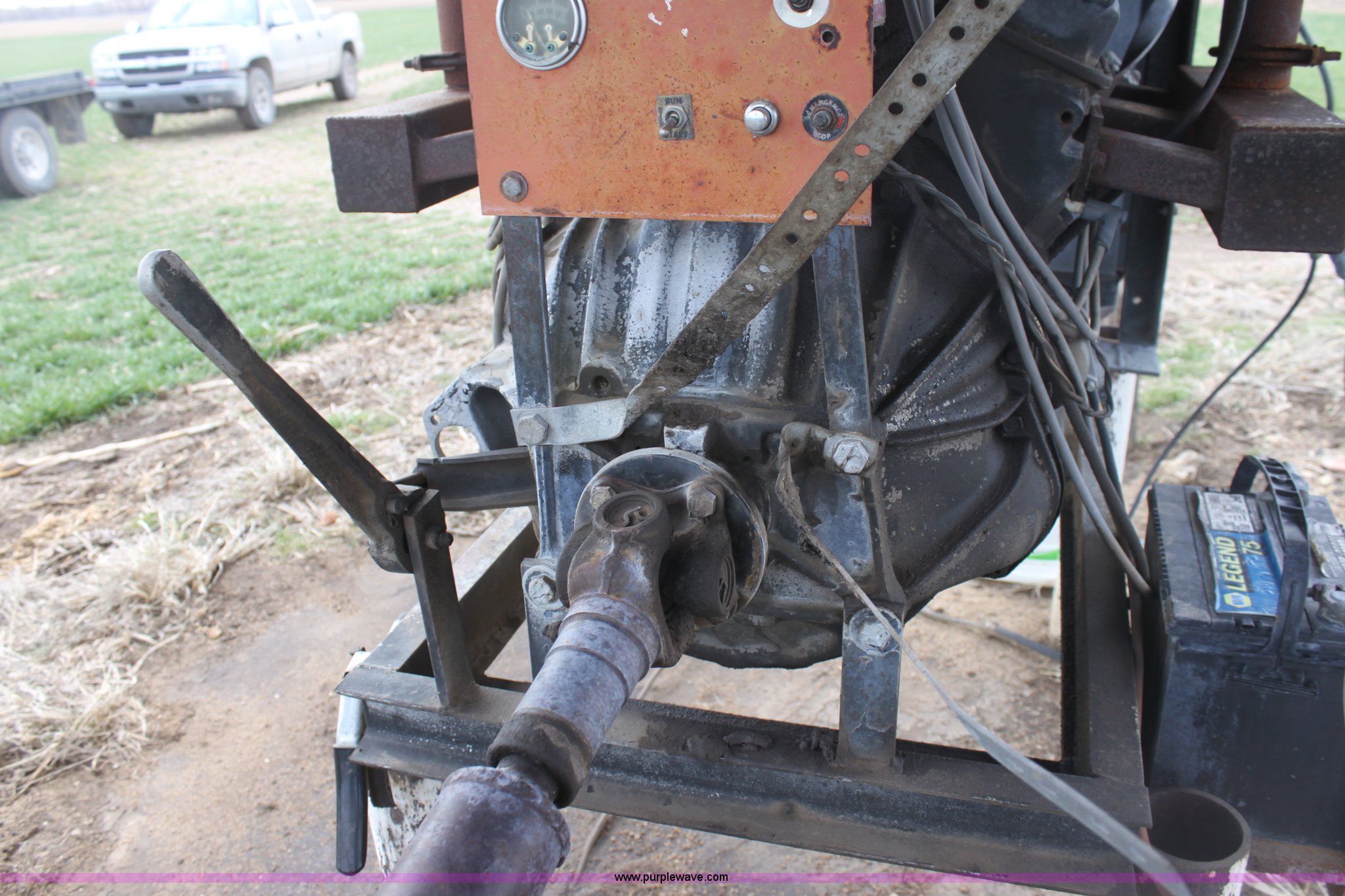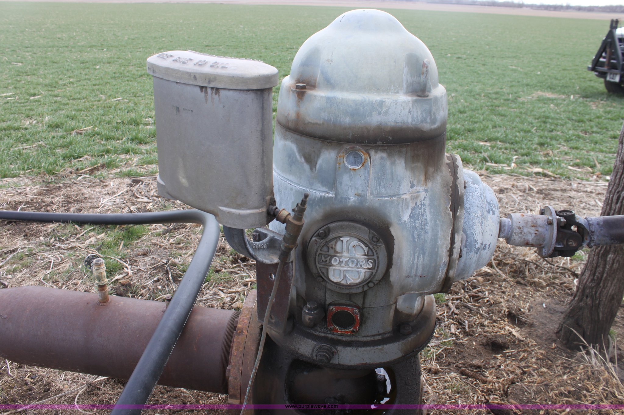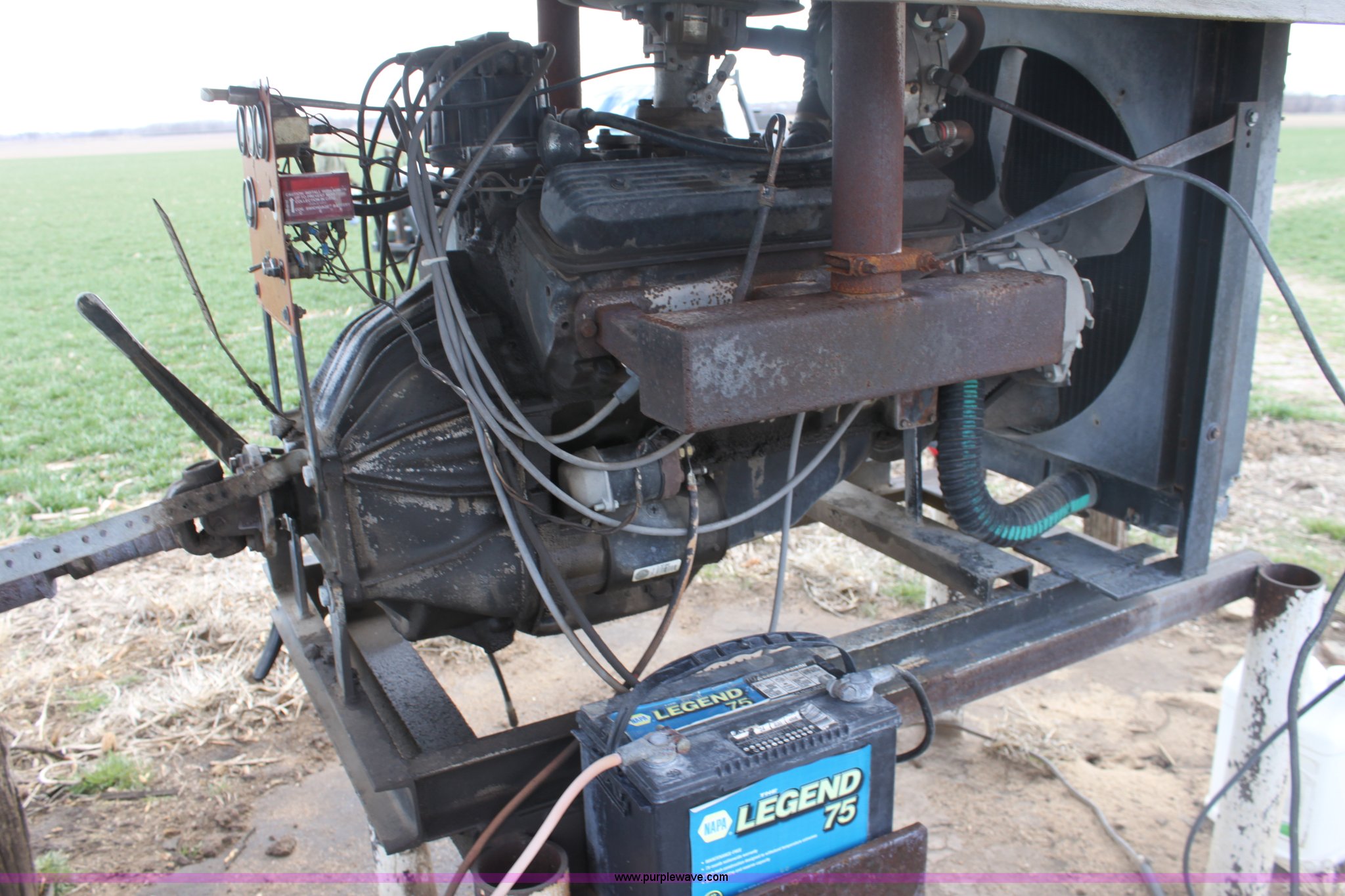 Irrigation motor and well head. Chevrolet 350 V8 engine 50 HP, Runs on LP, Holloshaft gear drive, 2,112 drive RPM, 1,760 pump RPM, Ratio 5:6. Shipping quotes available. Warren Wilson Hay Inc.. Abilene, KS 67410