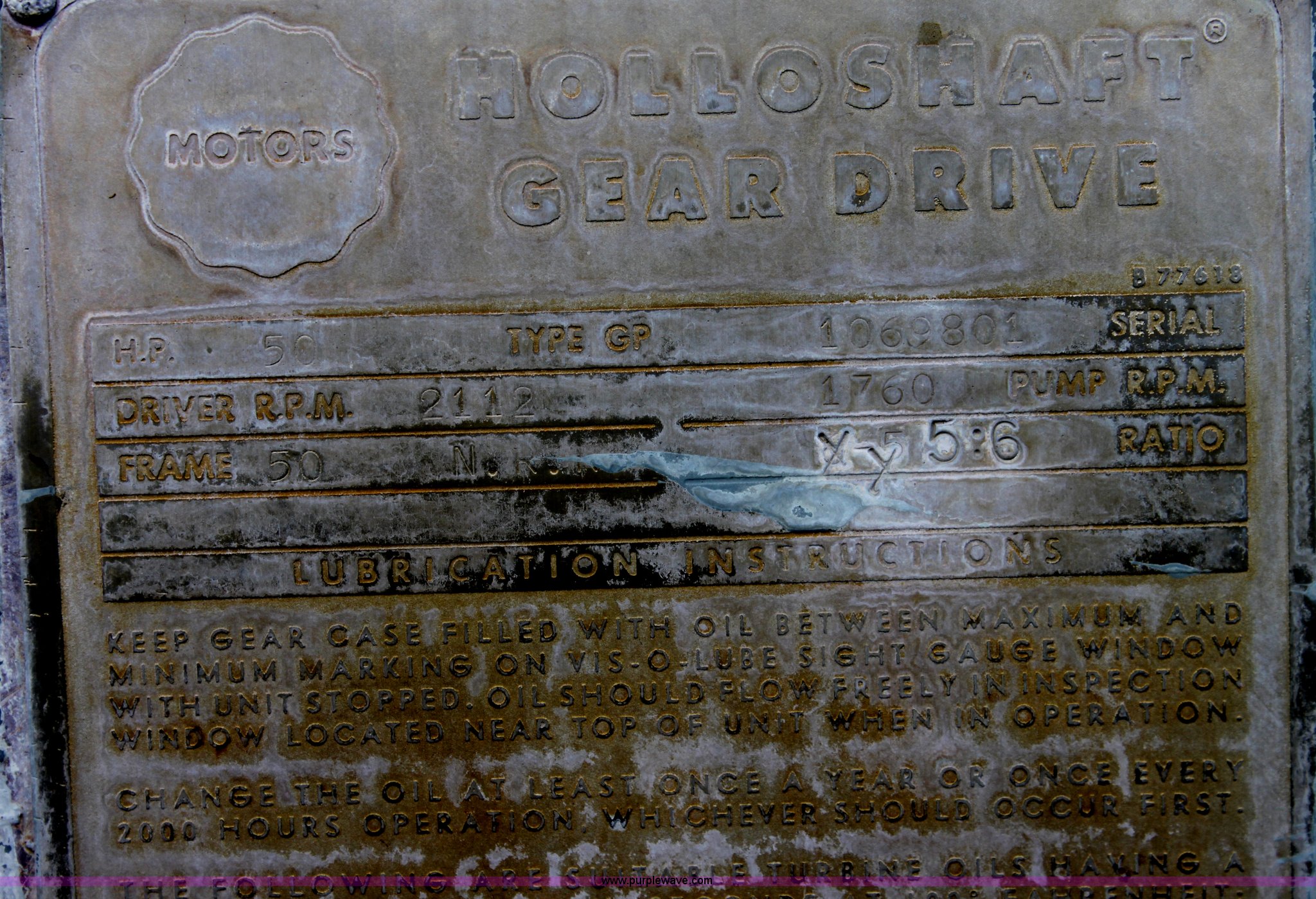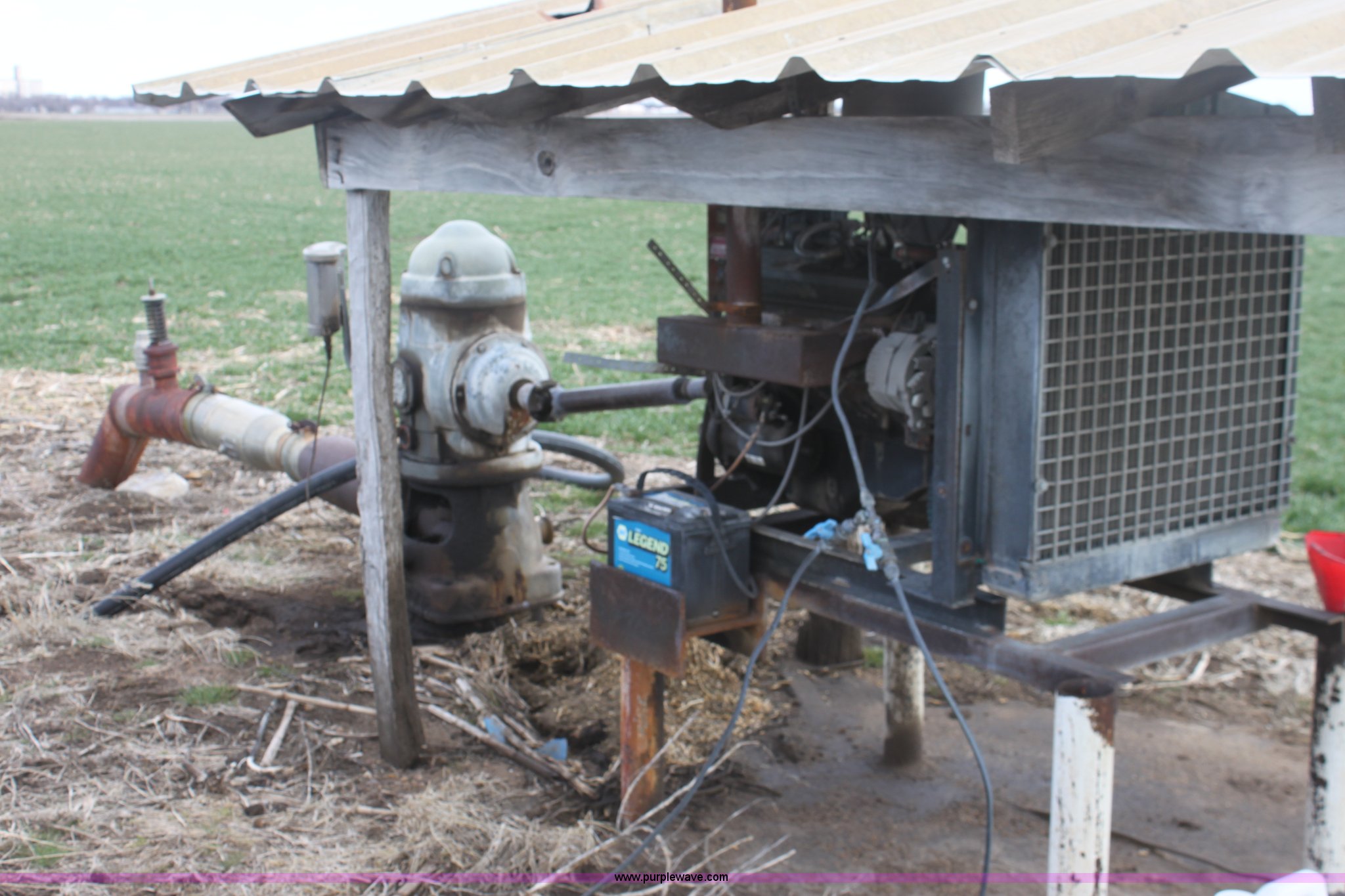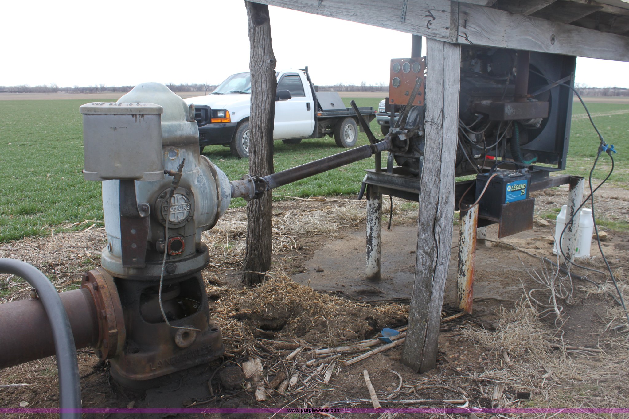 Irrigation motor and well head. Chevrolet 350 V8 engine 50 HP, Runs on LP, Holloshaft gear drive, 2,112 drive RPM, 1,760 pump RPM, Ratio 5:6. Shipping quotes available. Warren Wilson Hay Inc.. Abilene, KS 67410