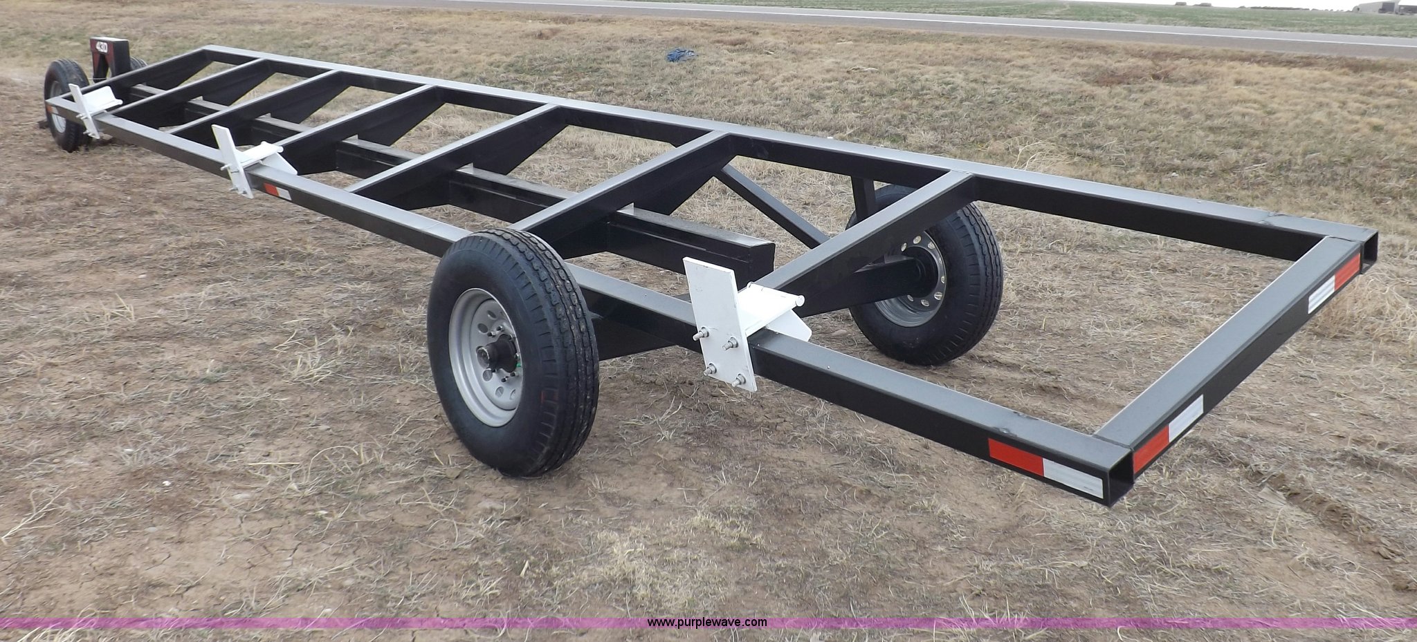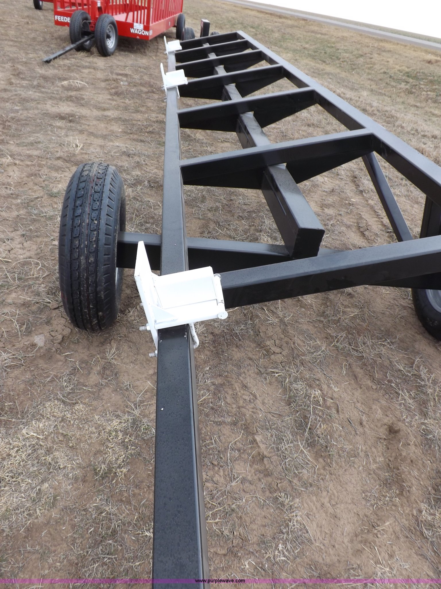 Purple Wave is selling a used Ag Equip. or Header Trailer in Kansas. This item is a 430 header transport trailer with the following: 30'L x 4'6"W x 36"H, 4" and 5" square tubing, 2" x 5" rectangular tubing construction, Flip over carrier brackets, 6'4"L tongue, 3/4 hitch pin coupler, 235/80D16 10 ply tires, Unused