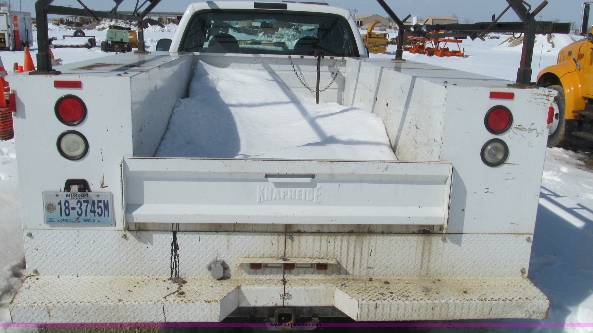 Purple Wave is selling a used Service Truck in Missouri. This item is a 2004 Ford F450 XL Super Duty utility truck with the following: 170,340 miles on odometer, 6.0L V8 OHV 32V turbo diesel engine, Automatic transmission, AC and heat, Tilt, Cruise, AM/FM, Manual windows and locks, Vinyl interior, Brake controller, Running boards, Front tow hooks, Knapheide utility bed, Model 6108D54J, Storage rack, Serial 068377-2004S, Receiver hitch, Trailer wiring, 225/70R19.5 tires, GVWR 11,000 lbs, Small tear in front seat on drivers side