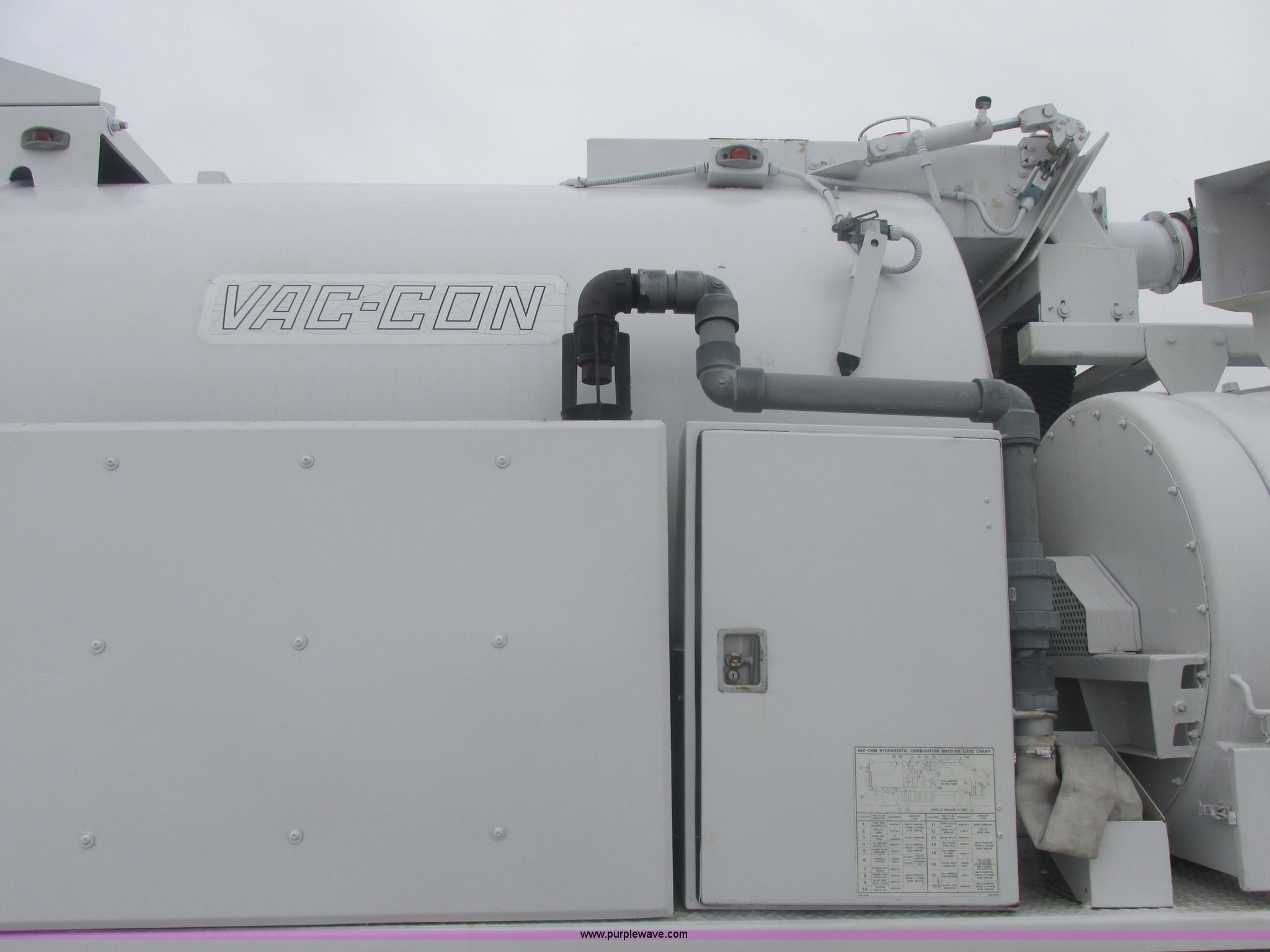 Purple Wave is selling a used Vacuum Truck in Illinois. This item is a 1999 International 2554 vacuum truck with the following: 16,194 miles on odometer, 3,874 hours on meter, 3,054 hours on vacuum, 1,826 hours on auxiliary engine, International DT530 8.7L L6 diesel engine, Automatic transmission, Heat, Air suspension seat, Vac Con bed, Model V390LHA, Serial 08981927, Auxiliary pump engine for jetter, 8" diameter suction pipe, Non potable water tanks, Sludge tank with hydraulic host, Front mount hydraulic hose reel for jetter, Front swing and outrigger, Remote, Boom mounted work lights Rear tube rack top and bottom, Single rear exhaust stack, PTO, (2) auxiliary toolboxes, Rear cab mount tool box, Strobe light, Spring suspension, 234" wheel base, 385/65R22.5 front tires, 11R22.5 rear tires, Hood corner cracked