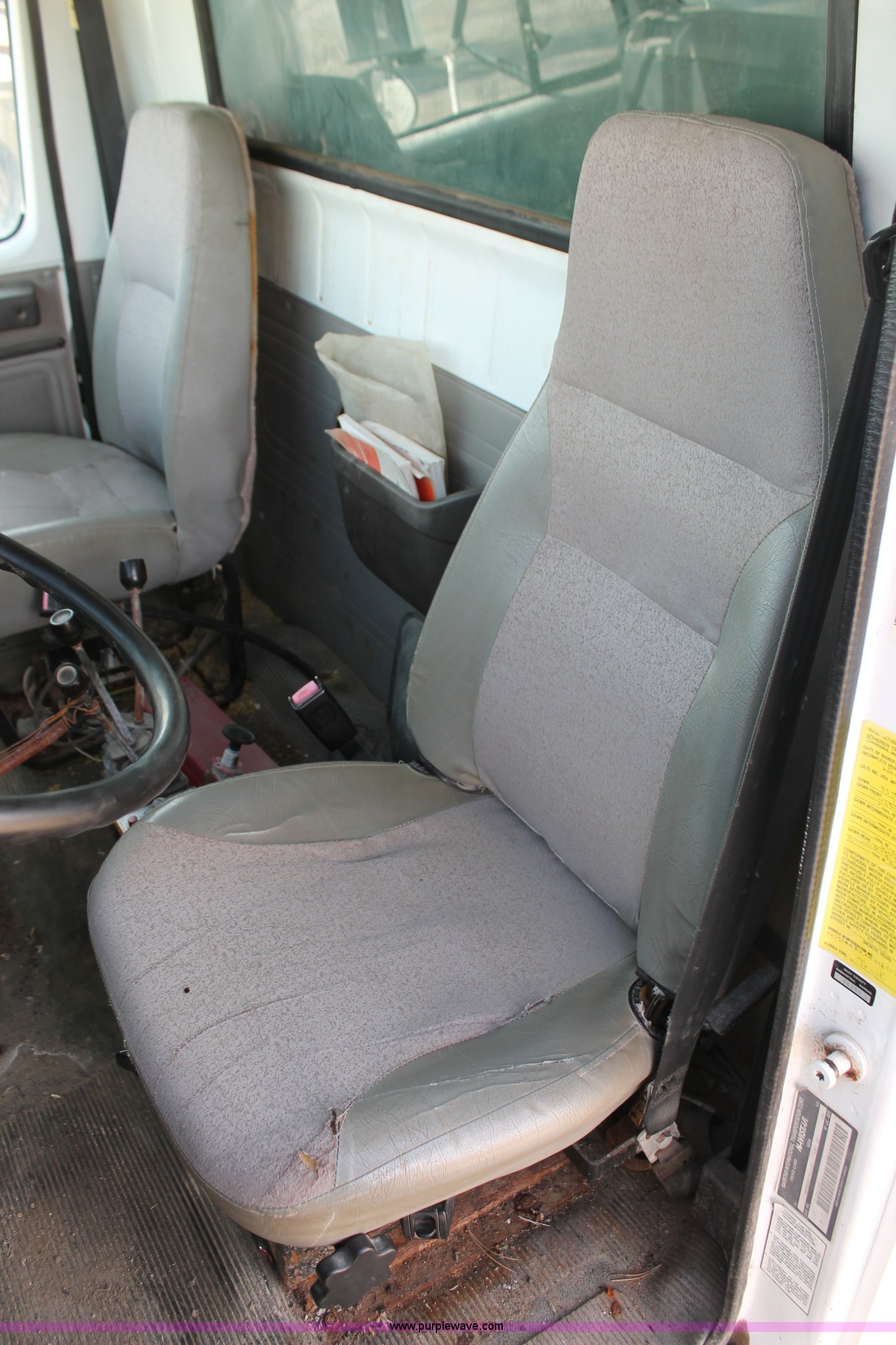 Purple Wave is selling a used Construction Dump Truck in Kansas. This item is a 1997 International 4800 dump truck with the following: 88,570 miles on odometer, 4,760 hours on meter, International DT466 7.6L L6 diesel engine, 210 HP, Automatic transmission, Four wheel drive, Heat, Tilt, AM/FM, Air suspension seat, Heated mirrors, Pintle hitch, Dual rams, Dual 50 gallon fuel tanks, 11' snow plow, Henderson stainless steel spreader, Model WSHX9X54, 9'L, PTO, Spring suspension, Air brakes, 11R22.5 tires, GVWR 35,000 lbs, FAWR 12,000 lbs, RAWR 23,000 lbs