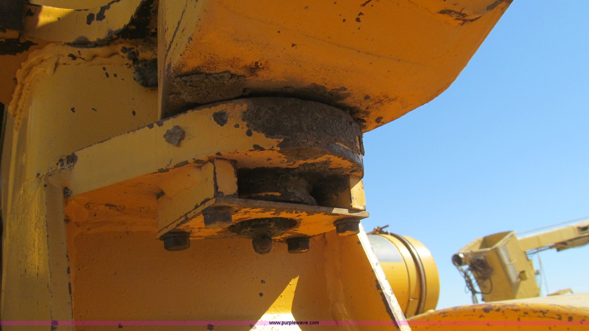 Purple Wave is selling a used Elevating Scraper in Texas. This item is a 1973 John Deere 860A paddle scraper with the following: Detroit Diesel six cylinder diesel engine, 215 HP, Five speed powershift transmission, Differential lock, Power steering, 15 cu. yd. bowl, HD reversing elevator, Hydraulic load ejection, Bridgestone 26.5R25 tires, 47,779 lbs. base operating weight, Cracked windshield, Gear box on paddle needs repair