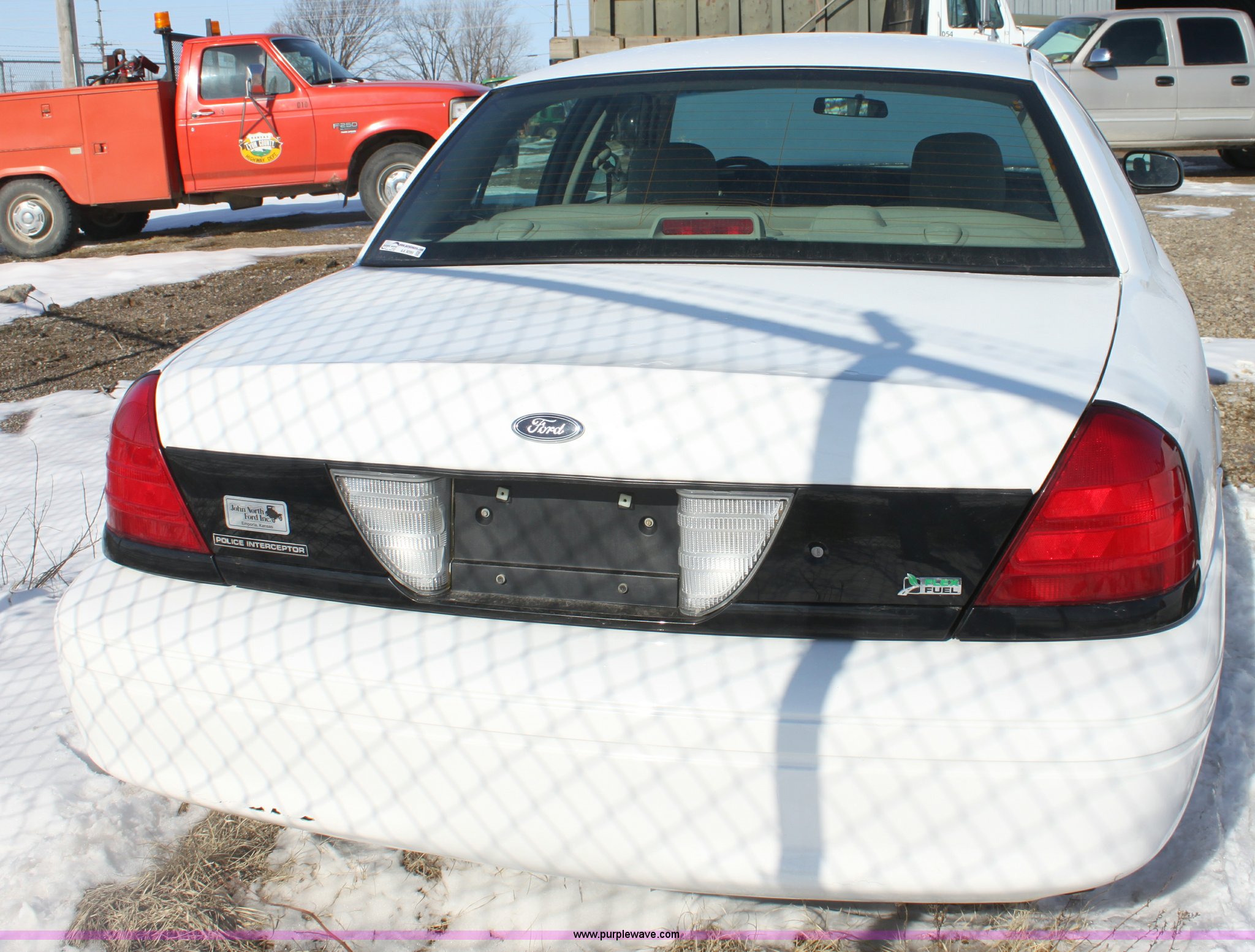 2010 Ford Crown Victoria Police Interceptor. 90,972 miles on odometer, 4.6L V8 SOHC 16V FFV flex fuel gas engine, Automatic transmission, AC and heat, Tilt, Cruise, AM/FM/CD, Power windows, locks, mirrors, and seats, Vinyl interior, Power adjust pedals, 235/55R17 tires, Interior/exterior cosmetic damage. 2FABP7BV9AX119261. Shipping quotes available. Lyon County Sheriffs Office. Emporia, KS 66801