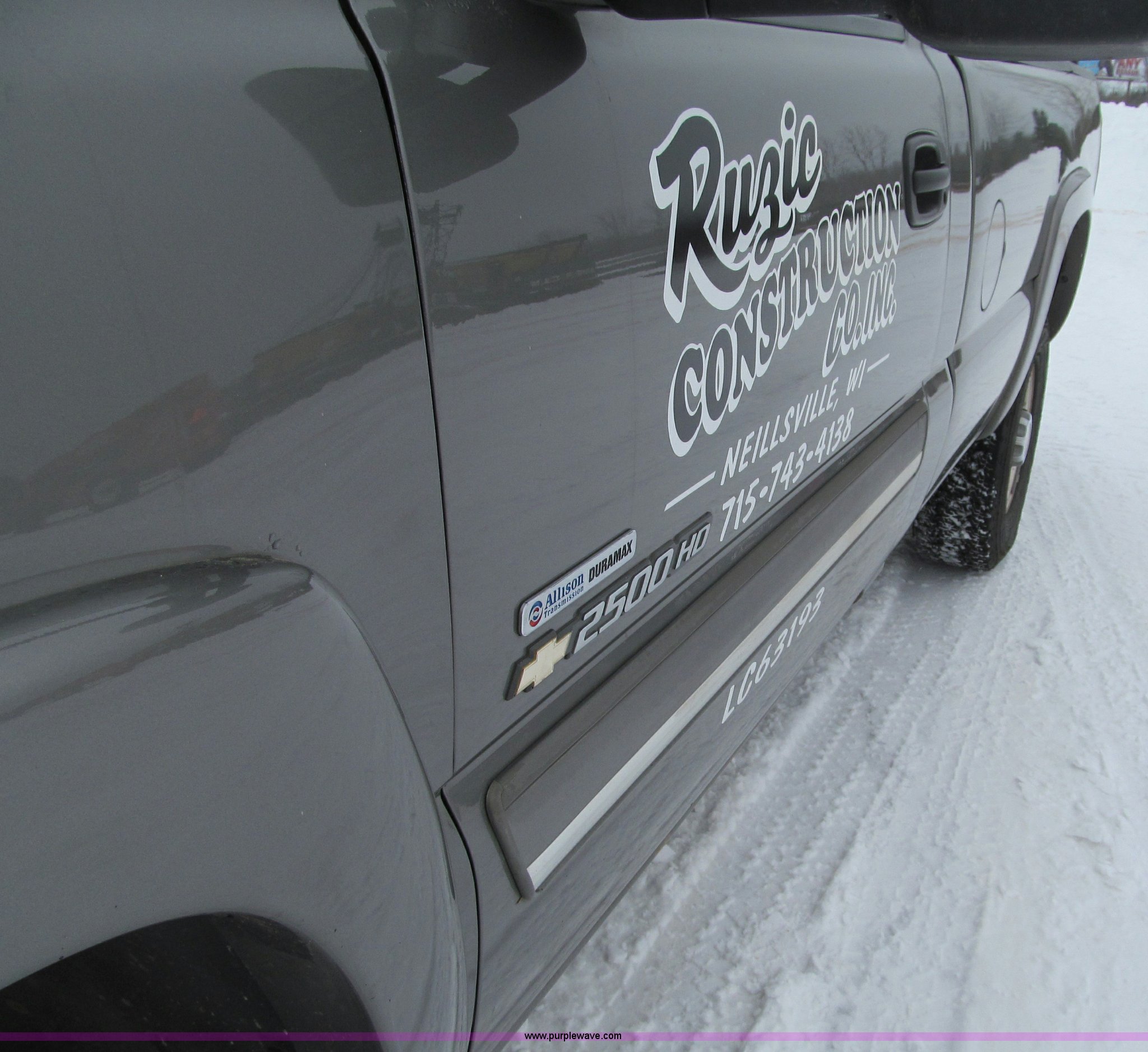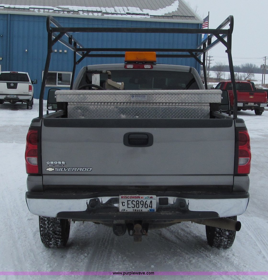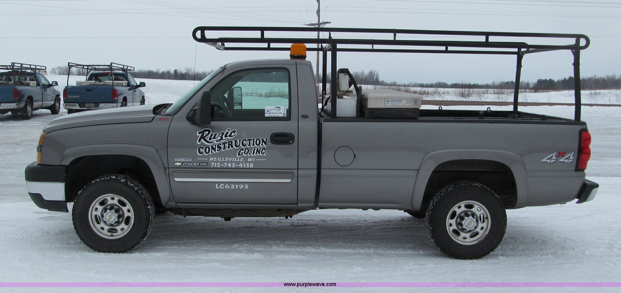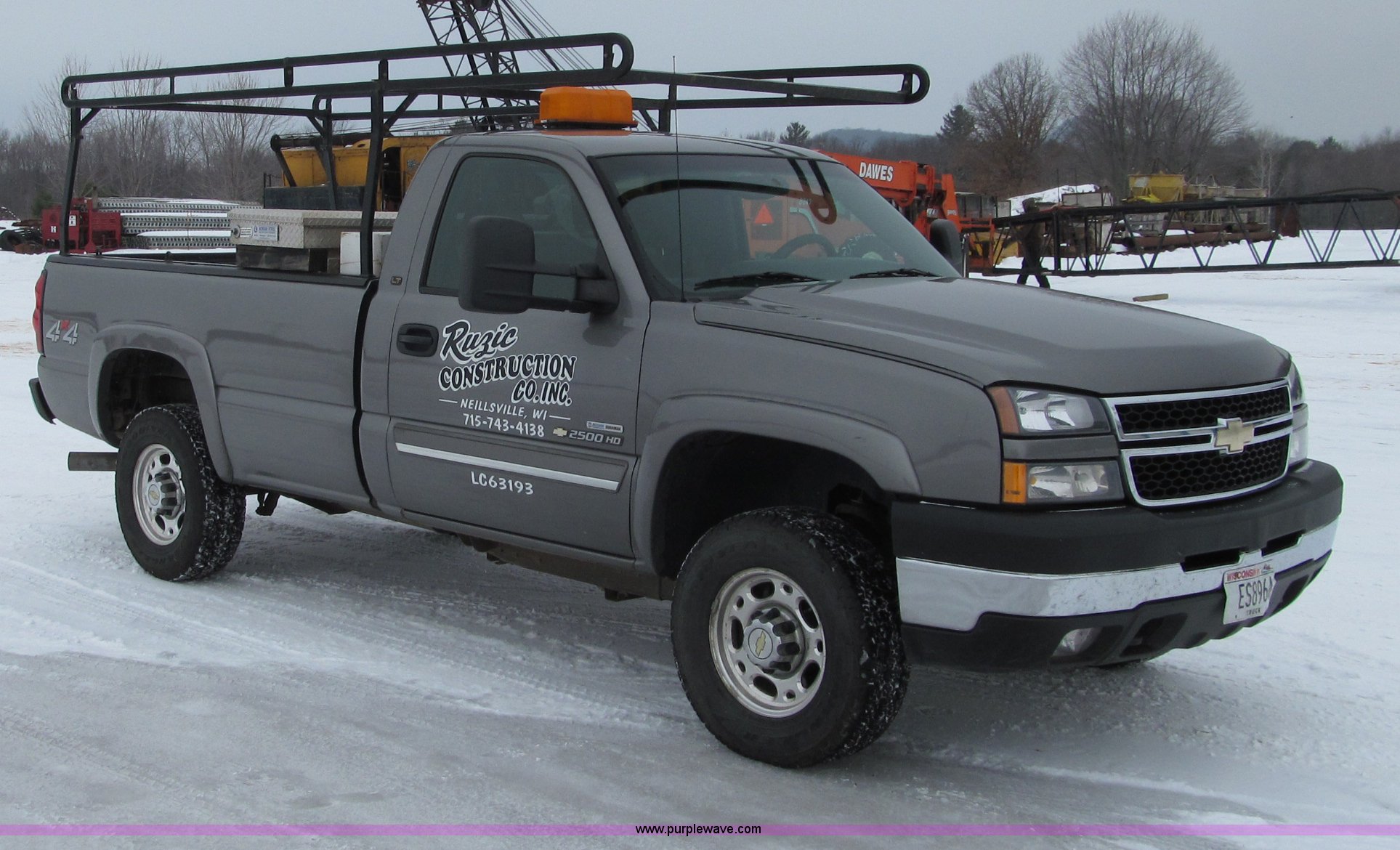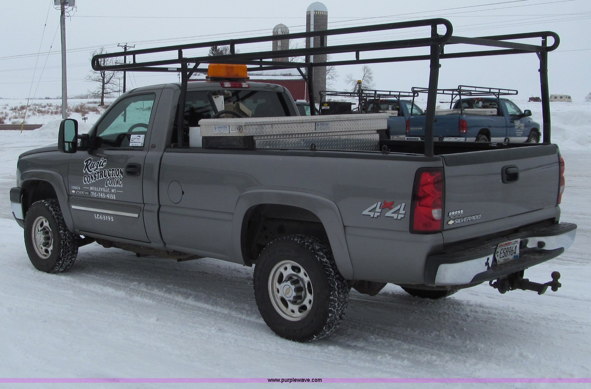 Purple Wave is selling a used 3/4 or 1 Ton Pickup or Van in Wisconsin. This item is a 2007 Chevrolet Silverado 2500HD pickup truck with the following: 111,454 miles on odometer, 6.6L V8 OHV 32V turbo diesel engine, Automatic transmission, AC and heat, Tilt, Cruise, AM/FM/CD, Power windows, locks, mirrors, and seats, Cloth interior, Trailer brake controller, Ladder rack, Tool box, 75 gallon fuel tank with electric pump, Flashing warning light, Receiver hitch, Trailer wiring, 245/75R16 tires