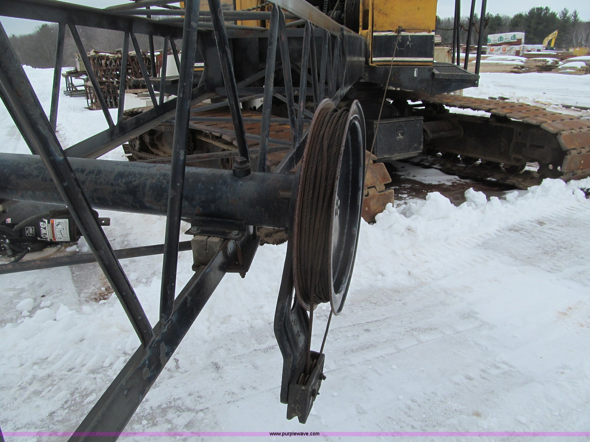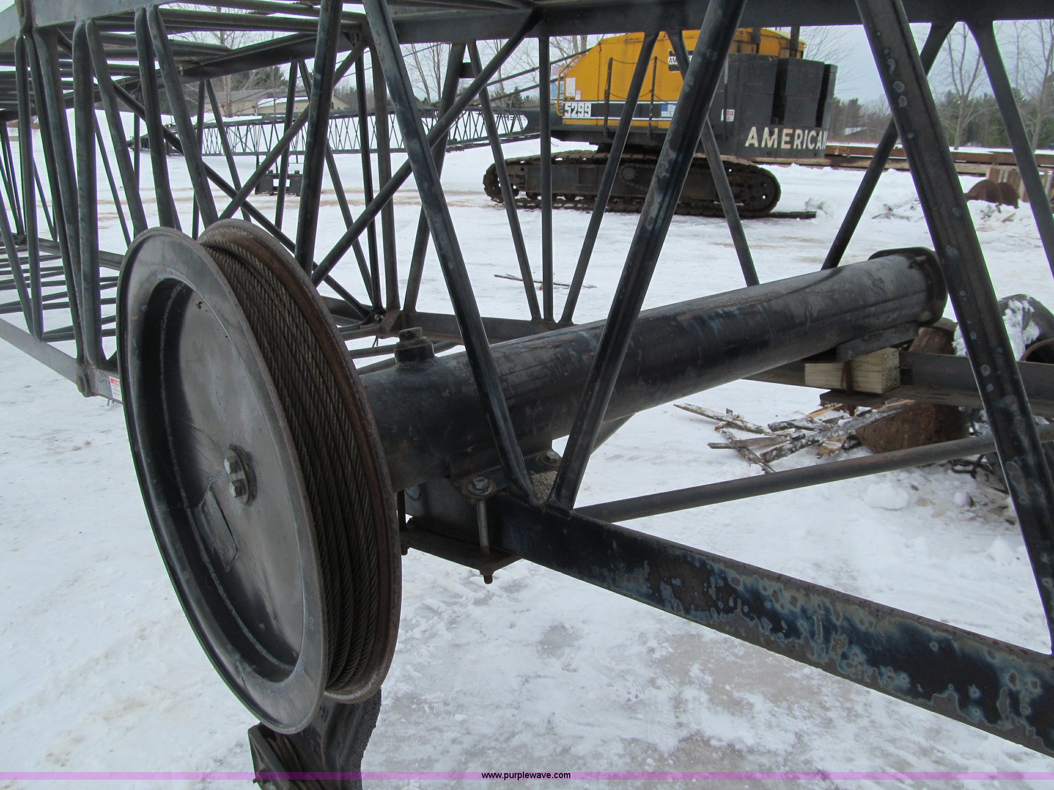 Purple Wave is selling a used Crawler Crane in Wisconsin. This item is a 1966 American 5299 crawler crane with the following: 1,042 hours on meter, Actual hours unknown, Detroit 671 diesel engine, Installed spring 2010, Heat, 50 ton capacity, 100' lattice boom, 3/4" cable, Tagline, Fair lead, Third drum, Extendable undercarriage, 36' tracks, Serial GS10932