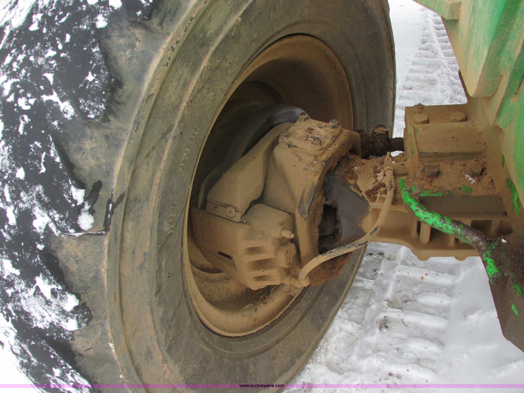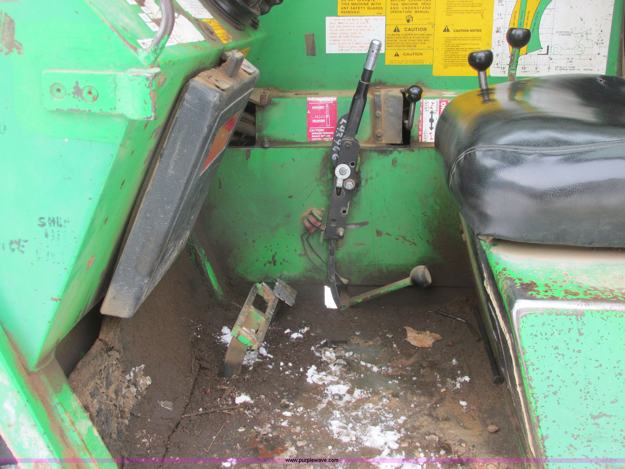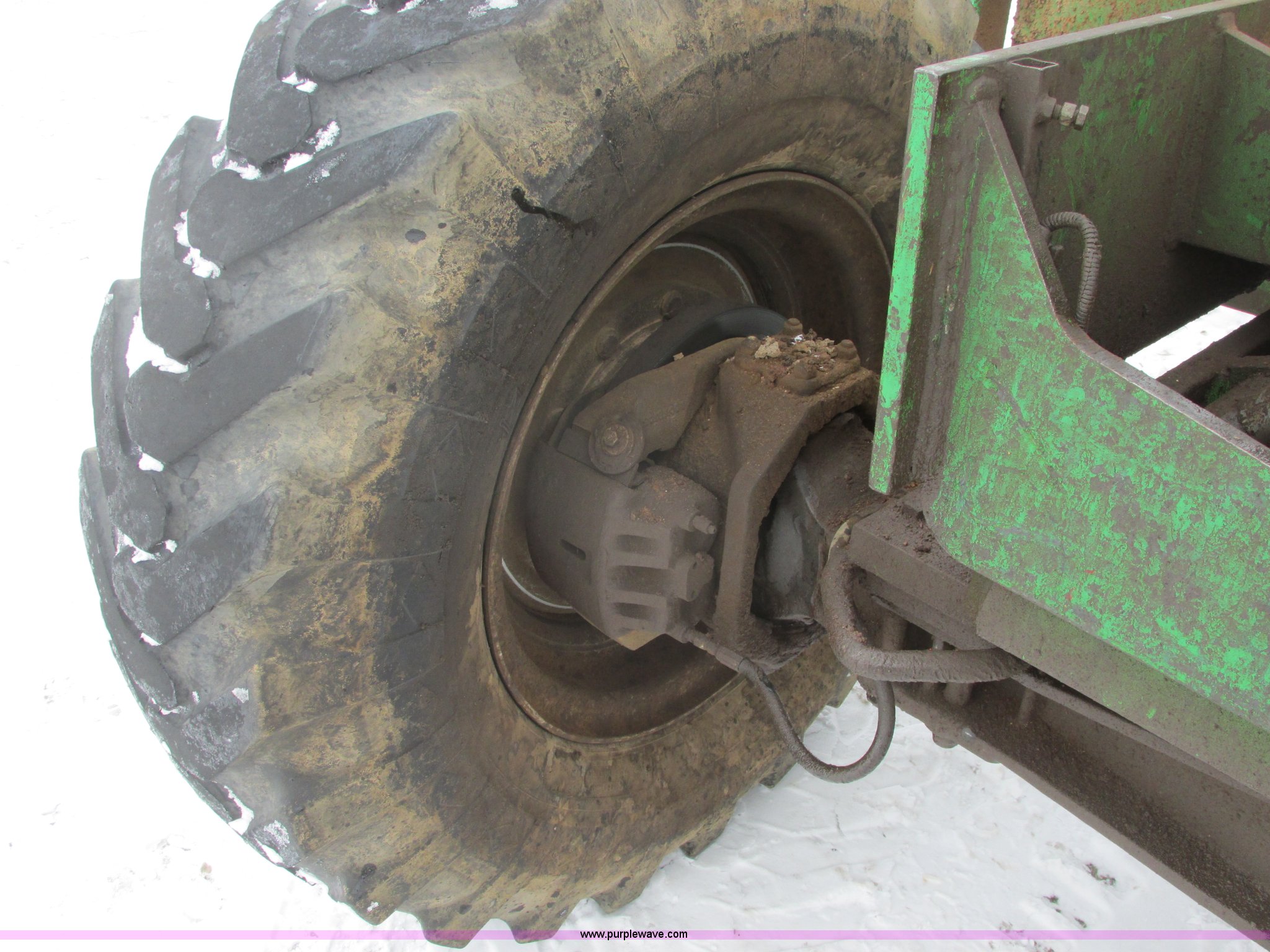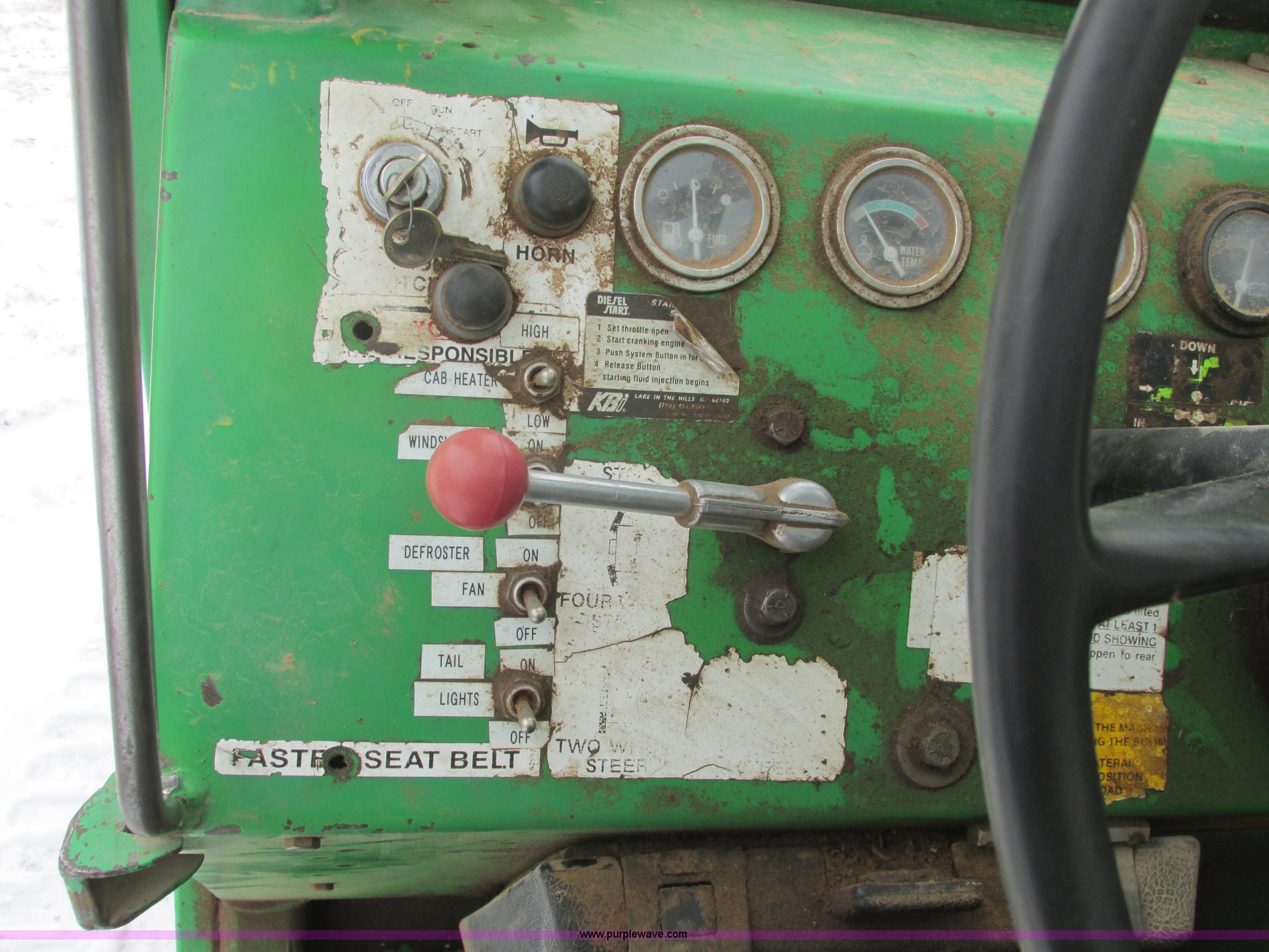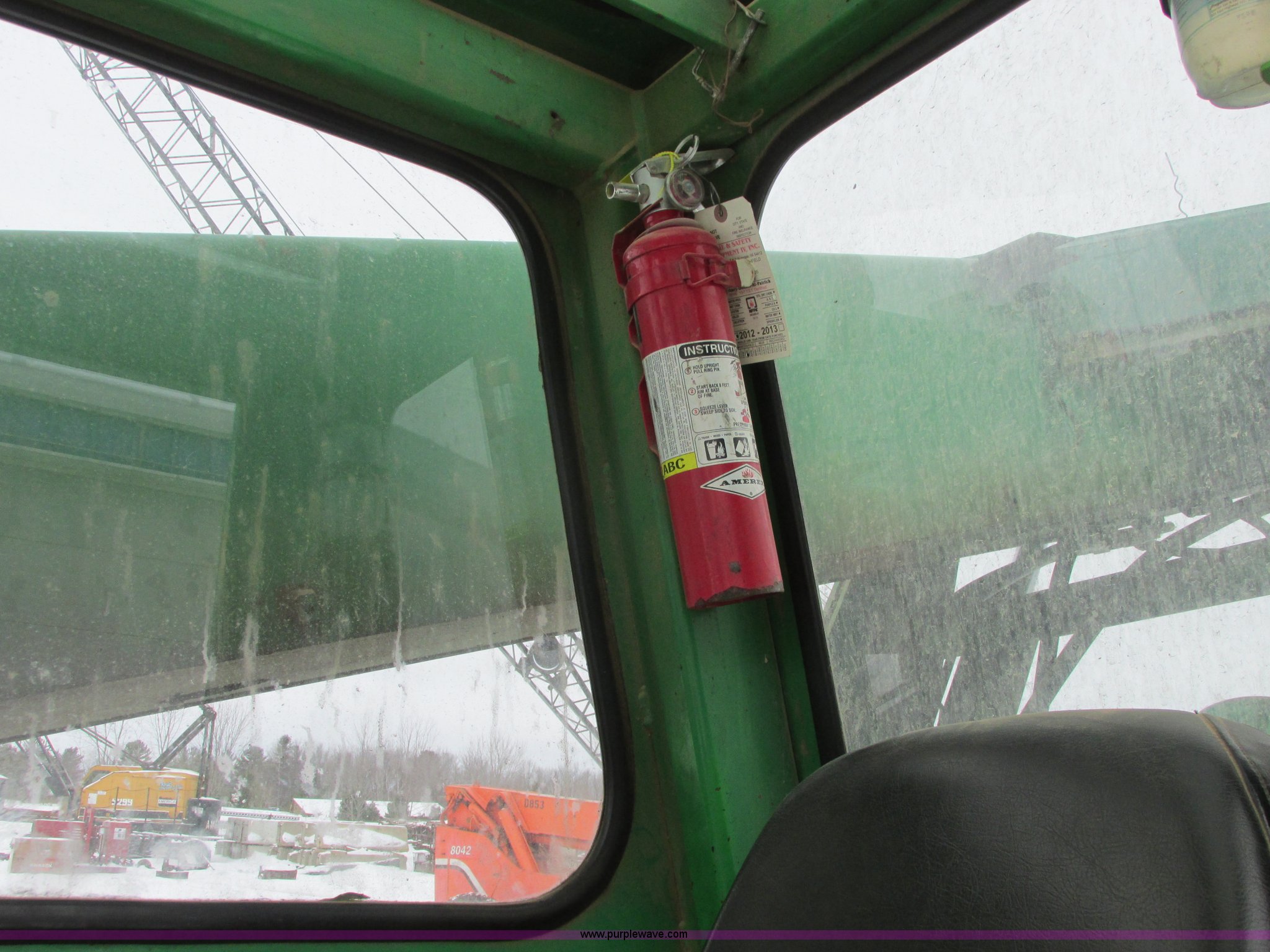 Purple Wave is selling a used Telehandler in Wisconsin. This item is a Dynalift D4P60 telehandler with the following: 2,363 hours on meter, John Deere four cylinder diesel engine, Powershift transmission, 3F-3R, Four wheel drive, Crab steer, Circle steer, Enclosed cab, 6,000 lb lift capacity, 36'L reach, (2) boom sections, 48"L forks, Hydraulic leveling, 48"W carriage, 13.00-24 fluid filled tires, 21,300 lbs. base operating weight, Hydraulic pump replaced two years ago, Main extension cylinder has a bond in it that causes it to leak, Door glass broken, Heat inoperable, Lights inoperable, Serial JD091190