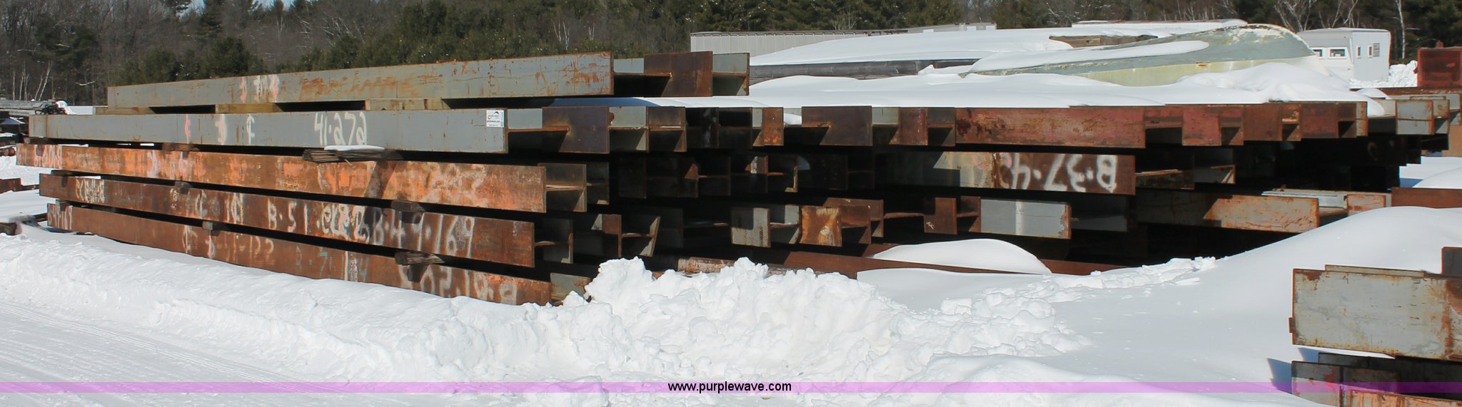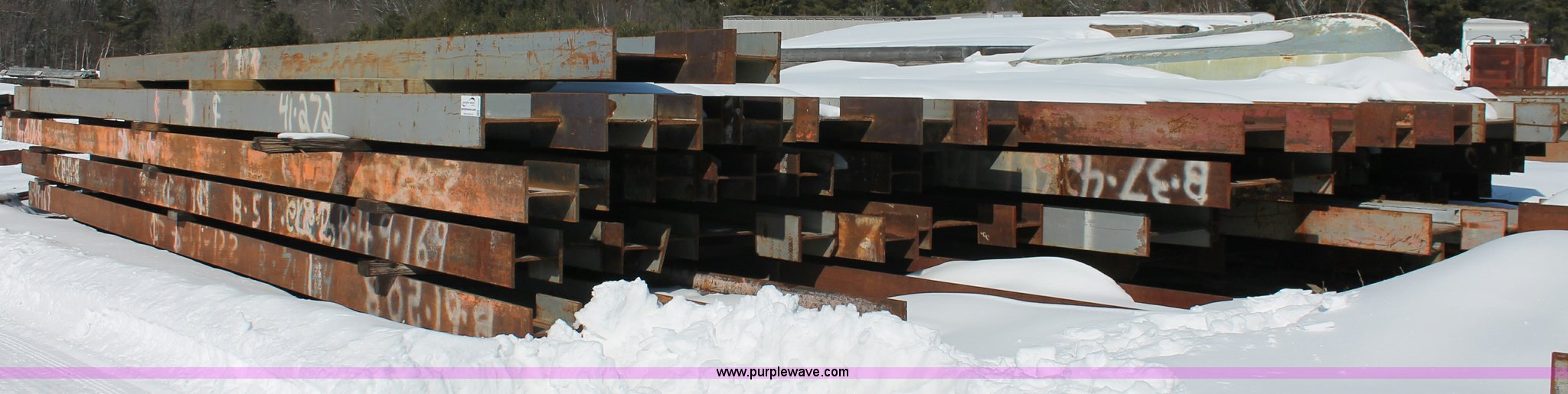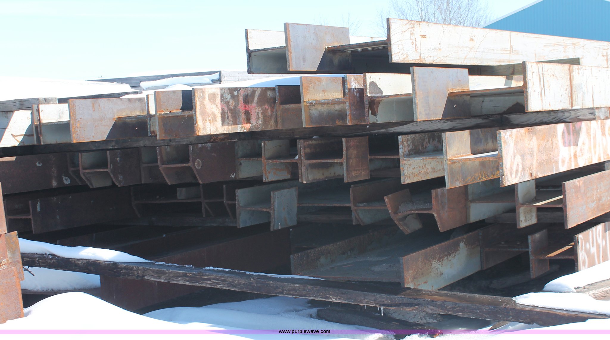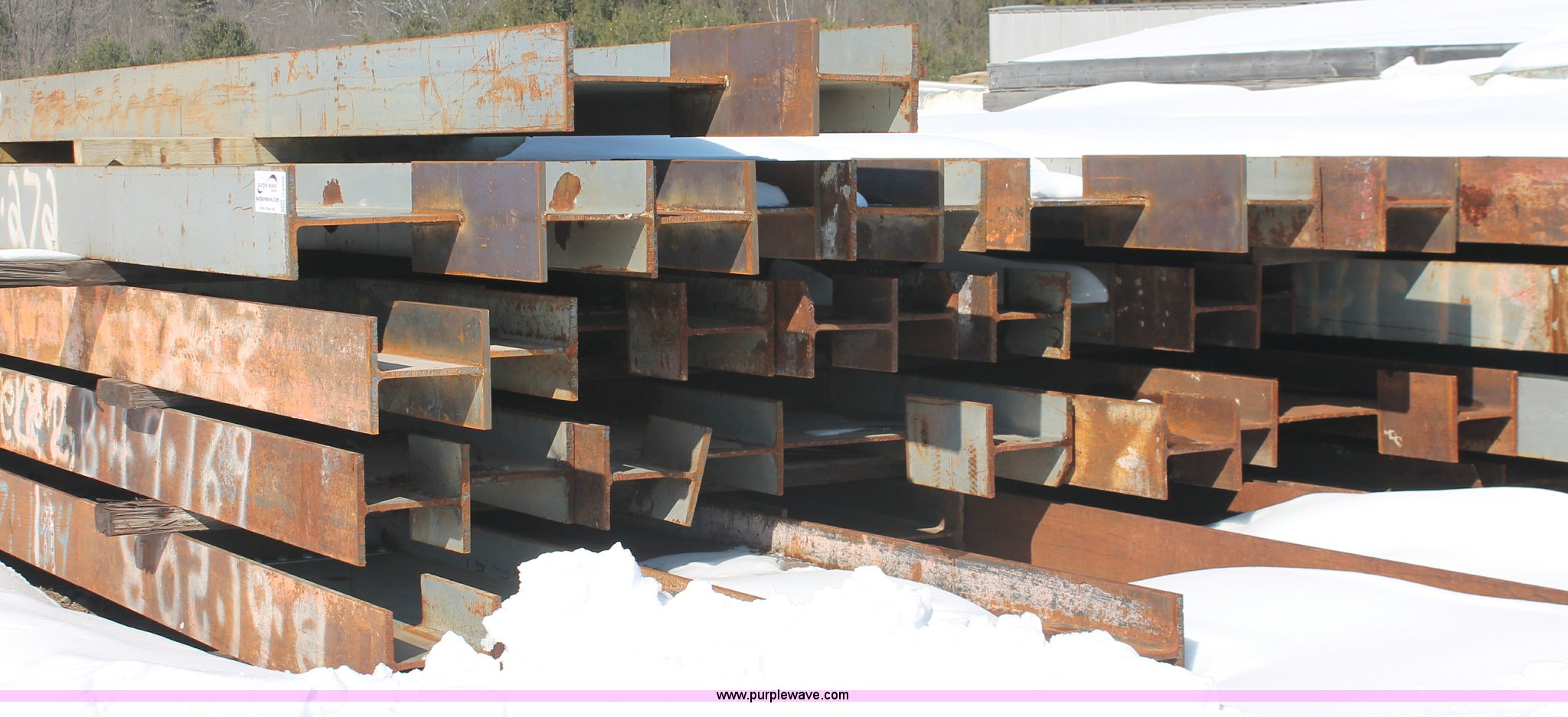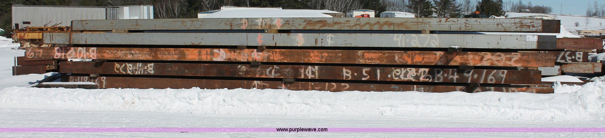 Purple Wave is selling a used Building Materials in Wisconsin. This item is a Assorted WF beams with the following: (2) 51'L x 30" WF beams, (28) 47'L x 30" WF beams, (9) 39'L x 30" WF beams, (14) 35'L x 30" WF beams