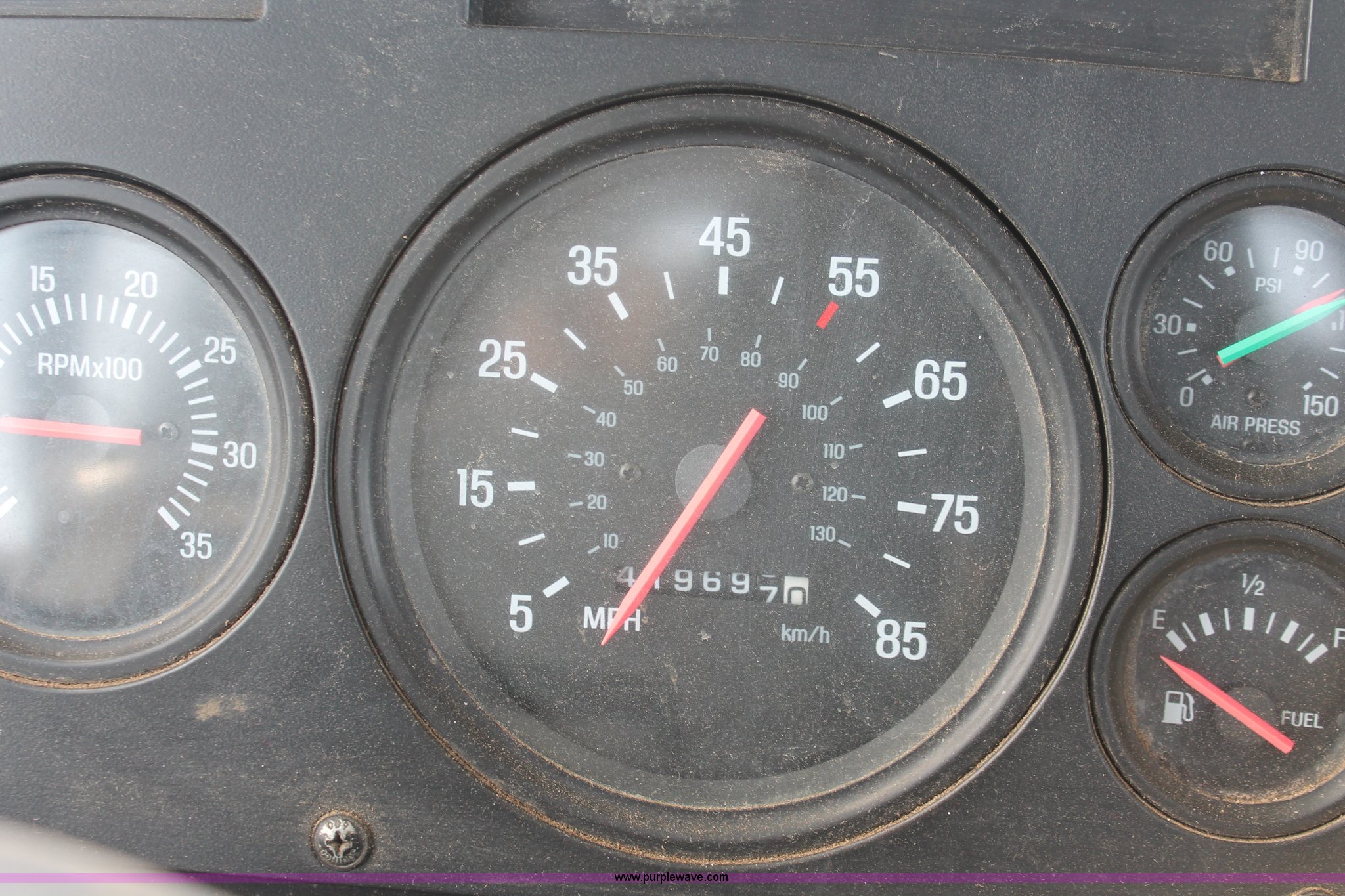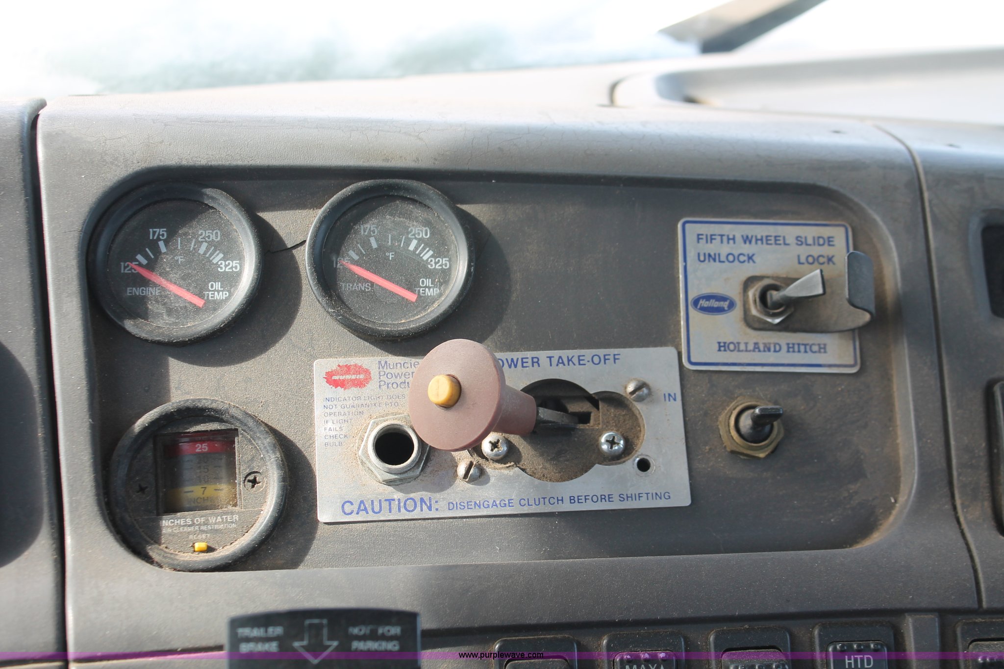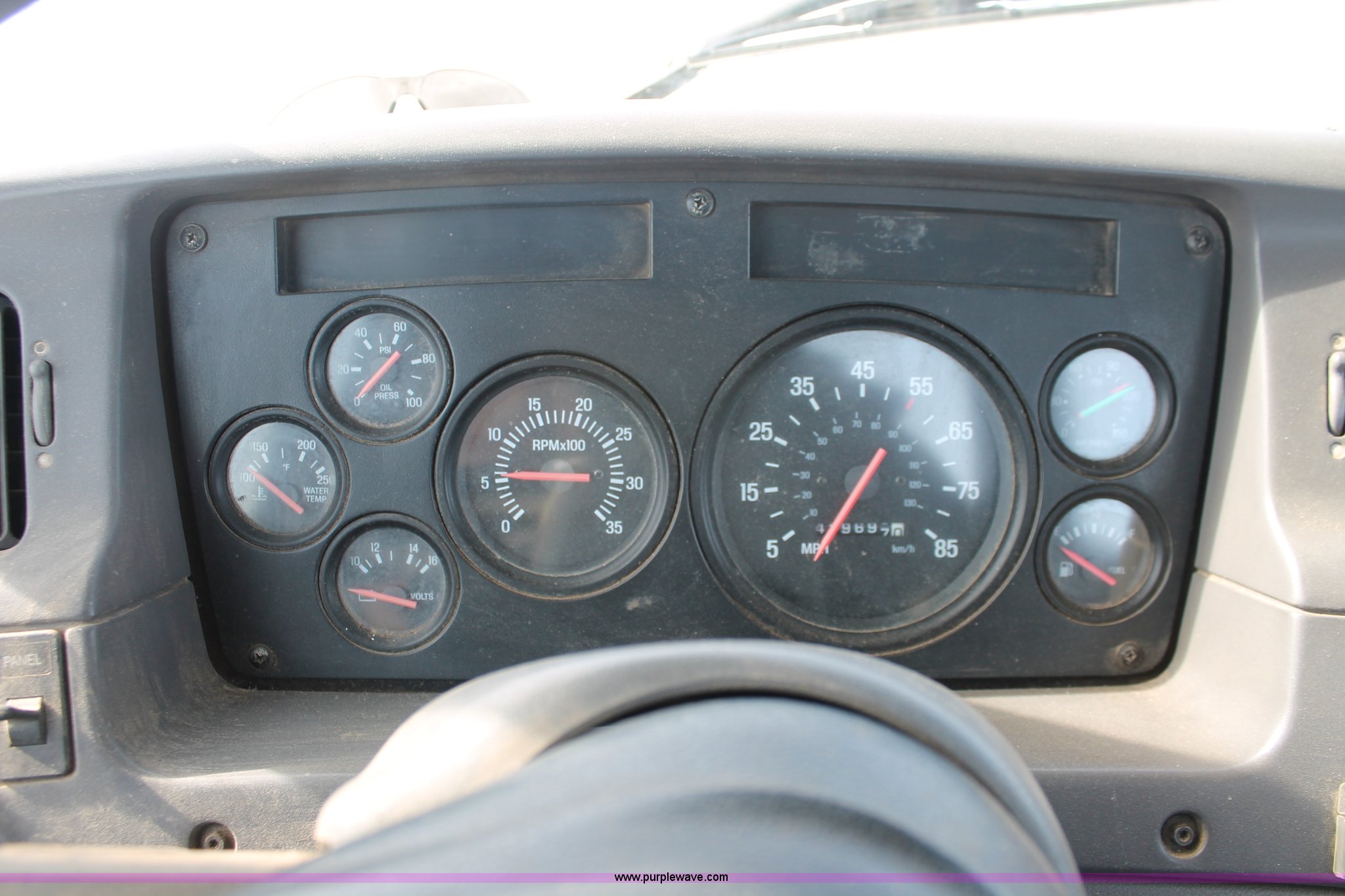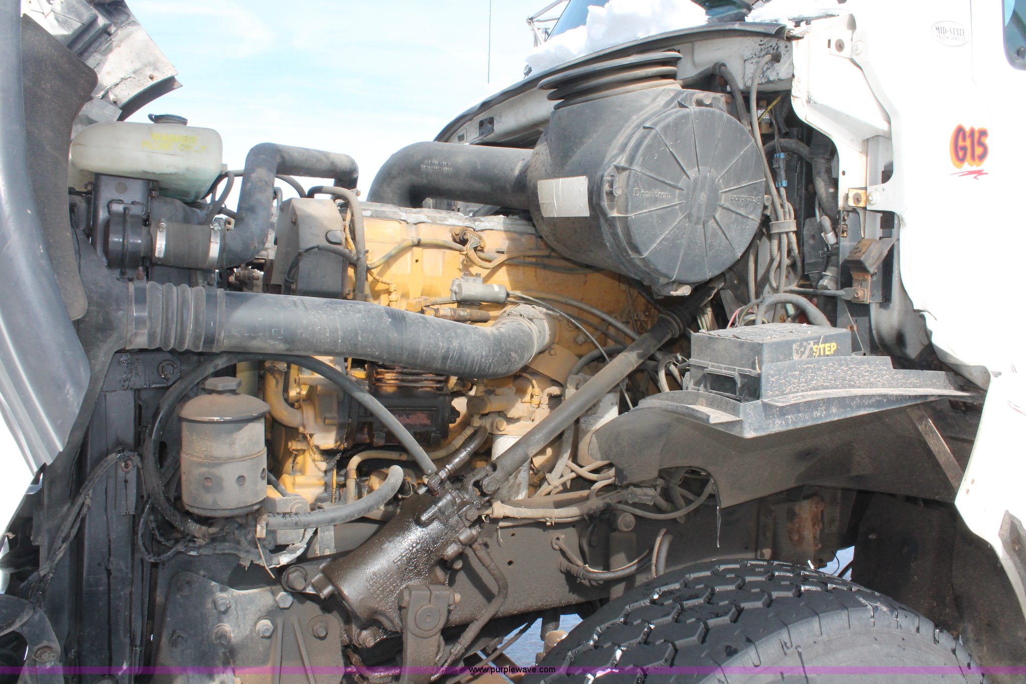 Purple Wave is selling a used Truck Tractor in Wisconsin. This item is a 2000 Sterling LT9522 semi truck with the following: 419,697 actual miles, Caterpillar 3406E 14.6L L6 diesel engine, 425 HP, Eaton Fuller 13 speed manual transmission, AC and heat, Tilt, Cruise, AM/FM/cassette, Passenger daylight door, Air suspension seat, Power windows, Heated mirrors, Visor, Chrome bumper, Block heater, Air slide fifth wheel, Dual fuel tanks, 100 and 50 gallon capacities, Single rear exhaust stack, Front tow hooks, Amber beacon, Rear work light, Packer toolbox, Air suspension, Air brakes, Jake brake, 180" wheelbase, Front wheel covers, Nut wheel covers, Axle lock, Fifth wheel lock, 385/65R22.5 front tires, 11R22.5 rear tires, GVWR 60,000 lbs, FAWR 18,000 lbs, IAWR 23,000 lbs, RAWR 23,000 lbs