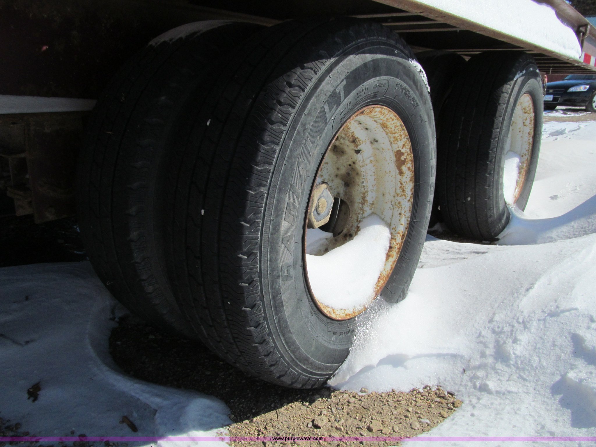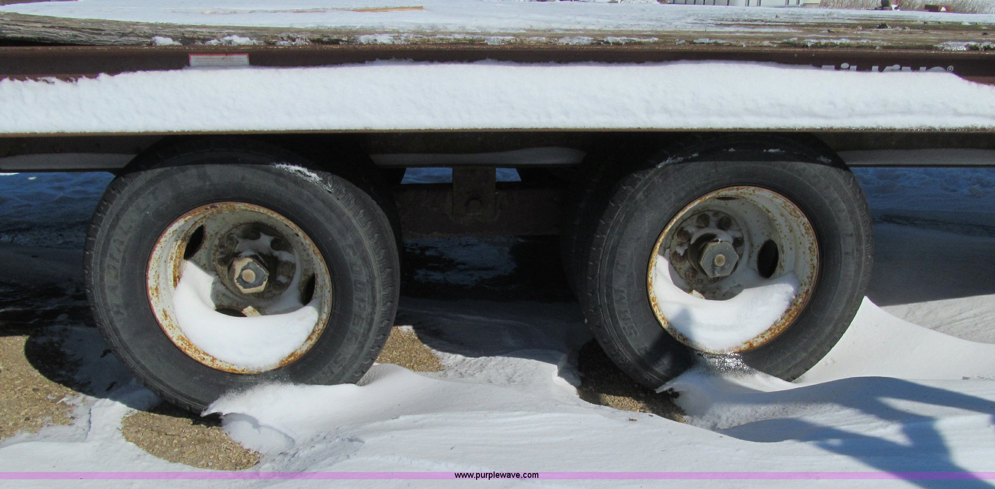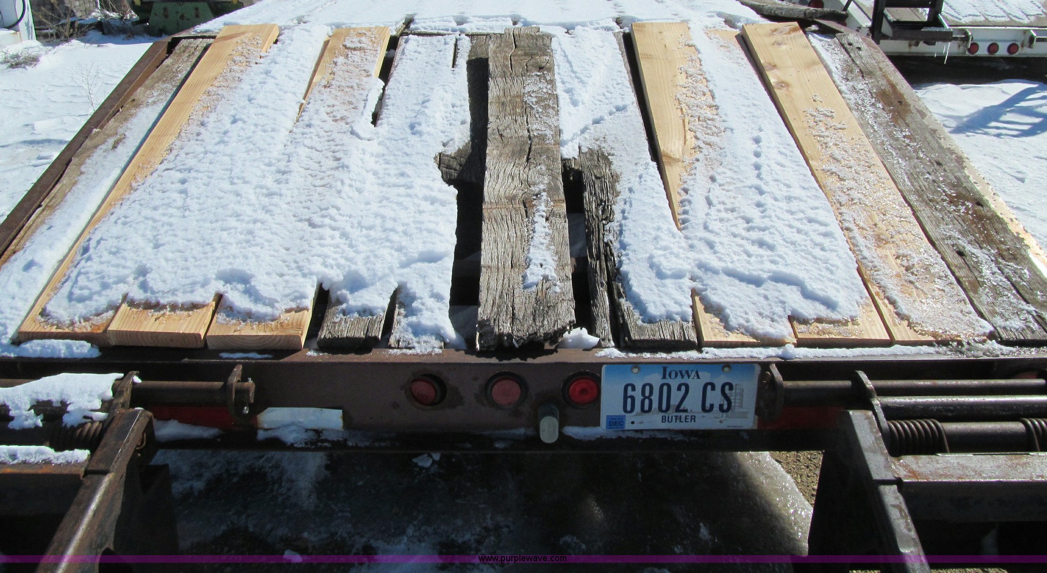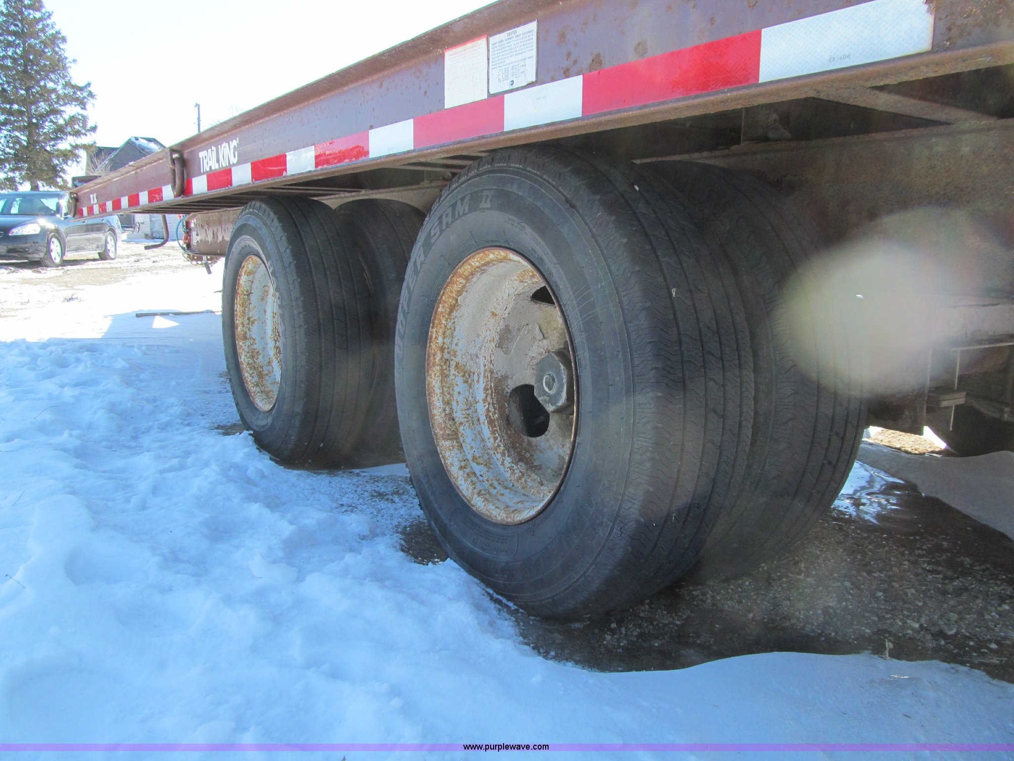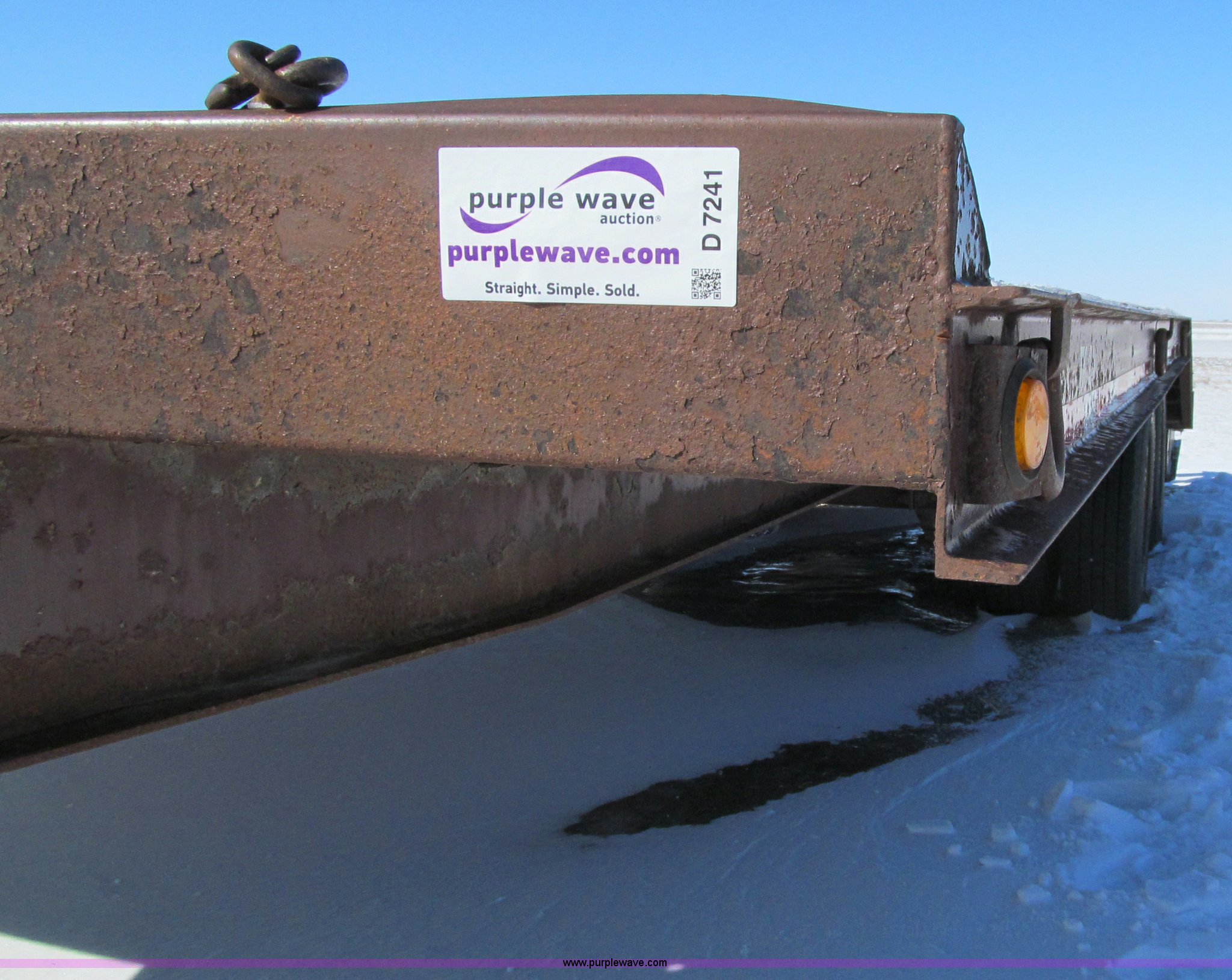 Purple Wave is selling a used Equip. Trailer in Iowa. This item is a 1997 Trail King TK24-2400 equipment trailer with the following: 19' x 8' level deck, 5' x 8' beaver tail, Flip over loading ramps, Pintle eye, Safety chains, Tongue jack, Dexter rubber bushed suspension, 9.50R16.5LT tires, GVWR 30,300 lbs, GAWR 11,160 lbs, Chains and binder not included