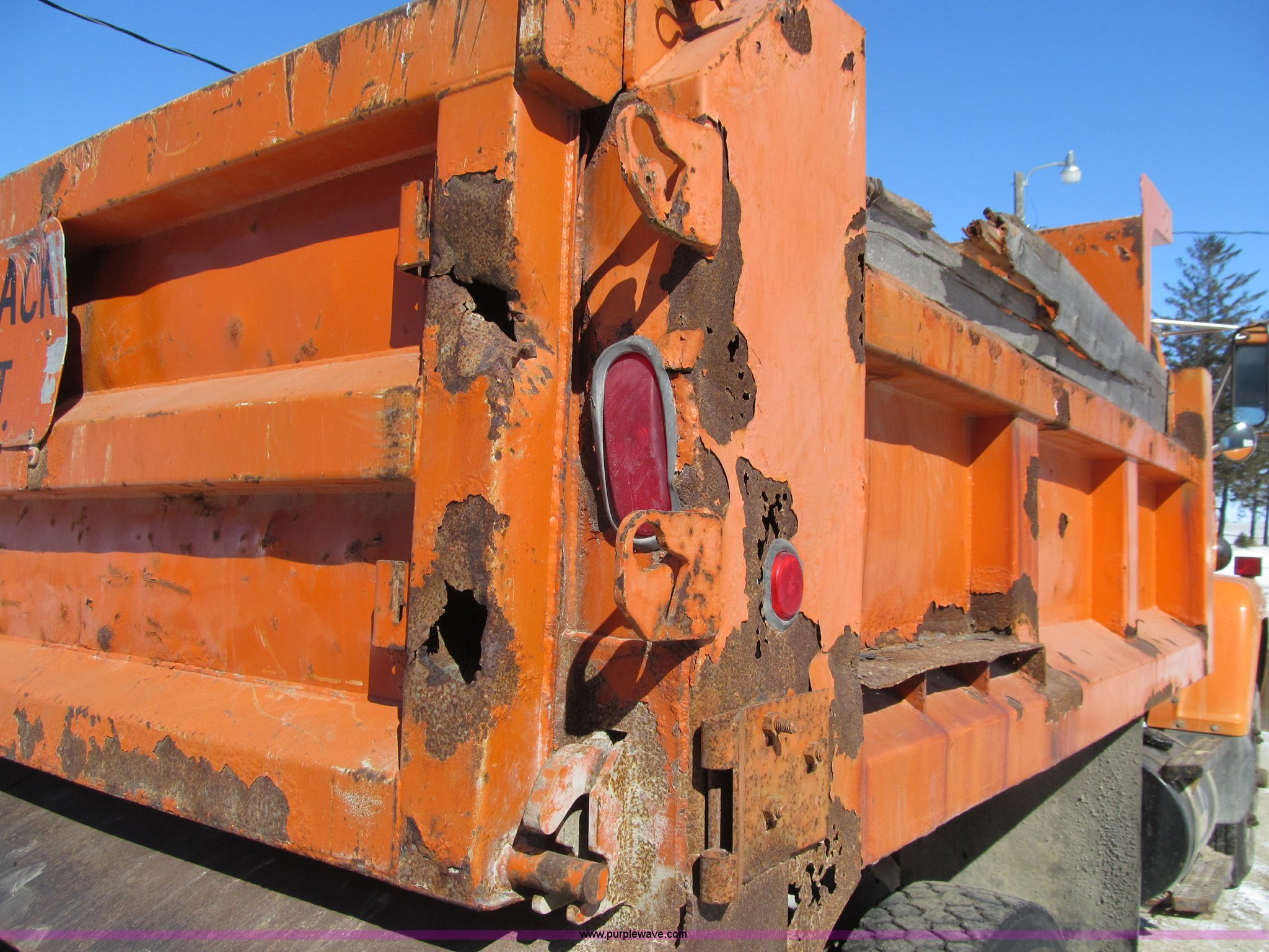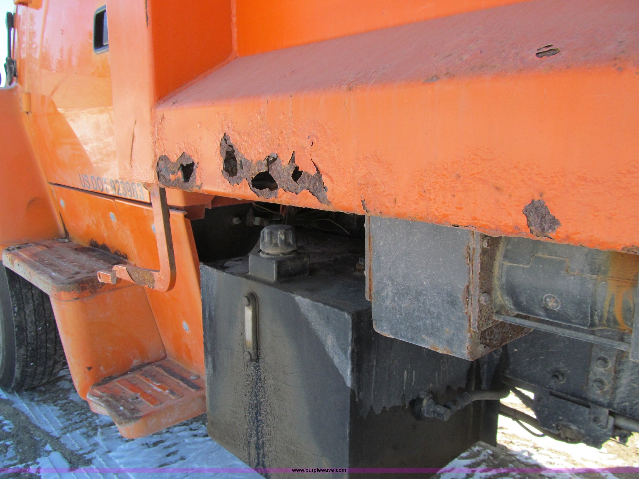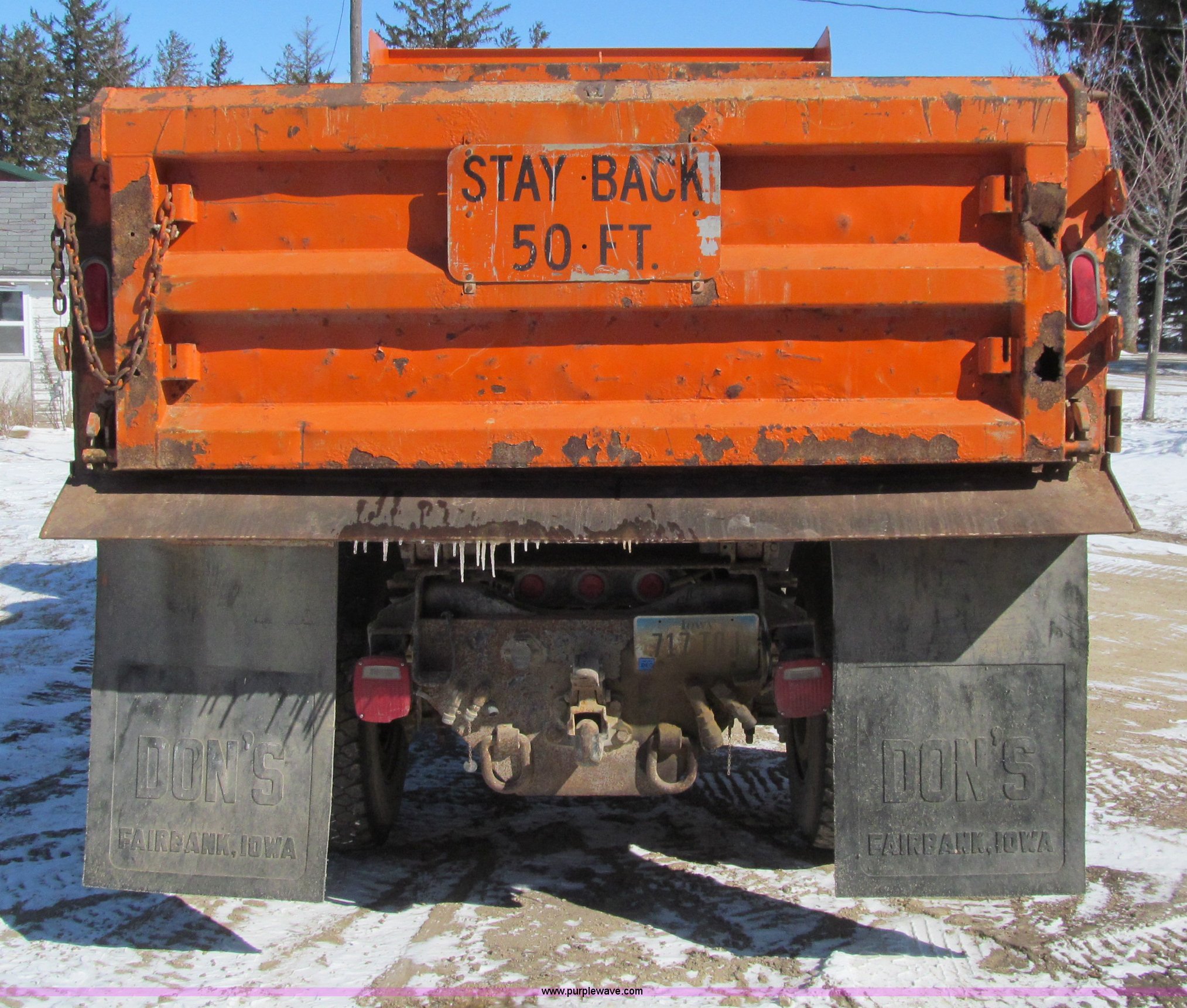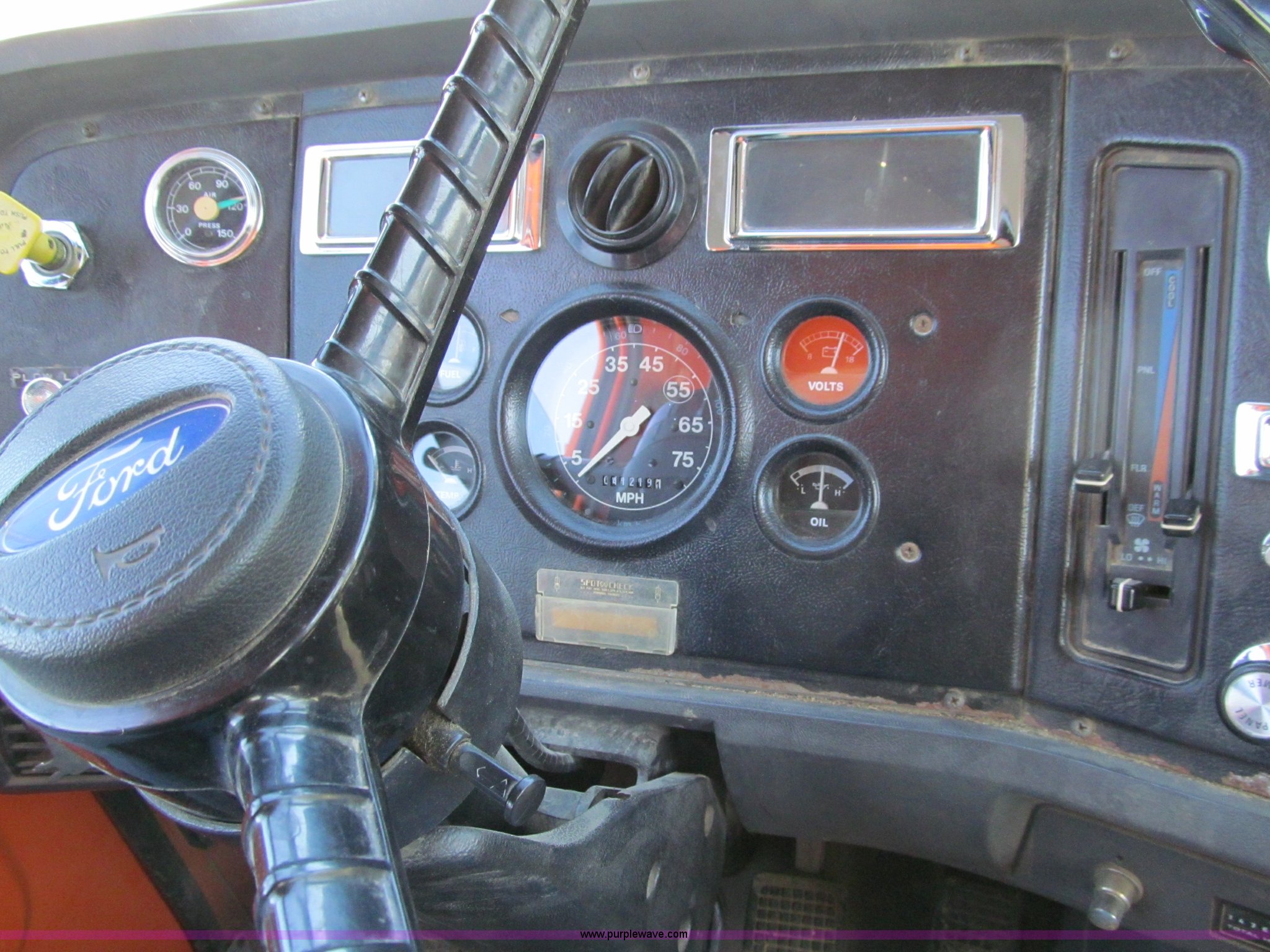 Purple Wave is selling a used Construction Dump Truck in Iowa. This item is a 1997 Ford N7000 dump truck with the following: 41,219 miles on odometer, 3,436 hours on meter, Cummins 5.9L L6 diesel engine, Five speed manual transmission, Hi-Lo axle, Heat, AM/FM, Air suspension seat, In-cab hydraulic controls for attachments, 10' box, Single ram, Wavy floor, Rust/corrosion, Chrome bumper, Block heater, Trailer wiring, Pintle hitch, Front mount PTO, Spring suspension, Air brakes, Air and hydraulic lines to rear of frame, 152" wheelbase, 10R22.5 tires, GVWR 28,500 lbs, Cab contents not included